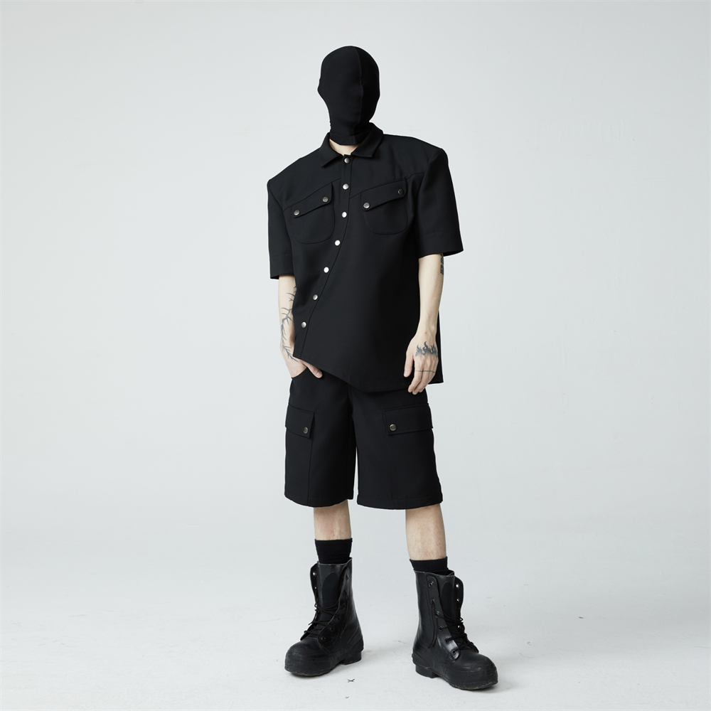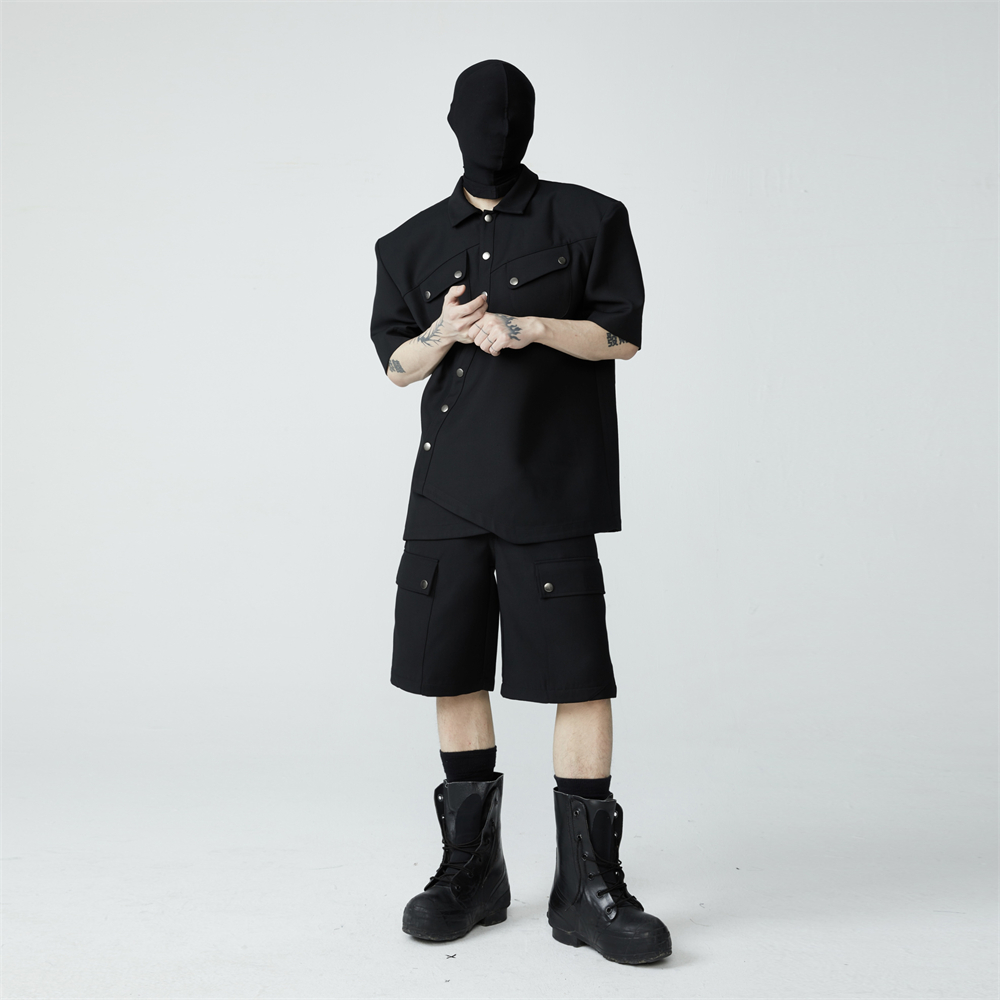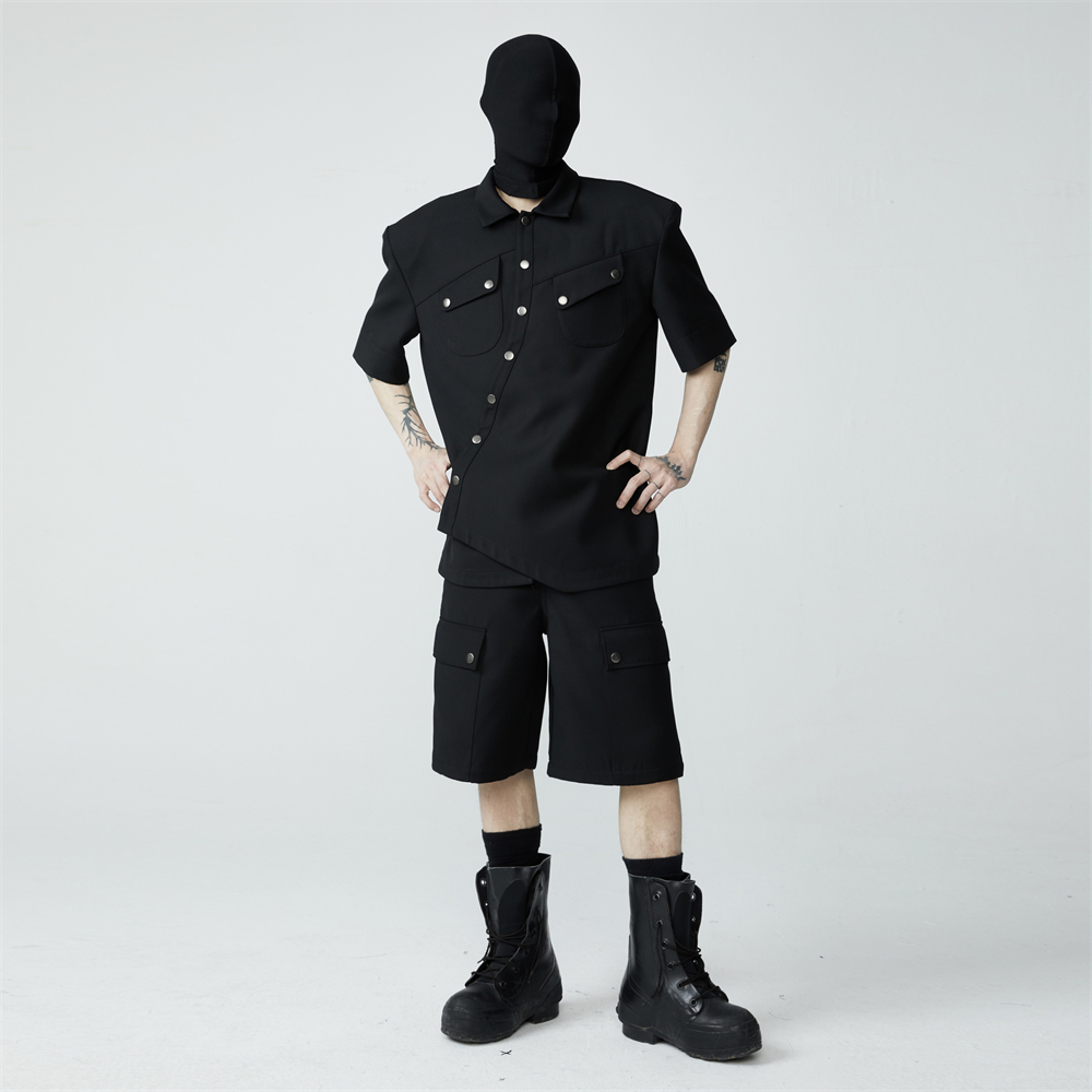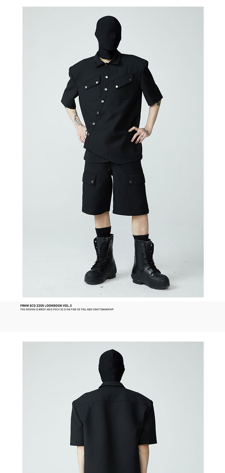 FRKM SCD 23SS 夏季百搭可拆卸墊肩高級感重磅不對稱男女通勤短袖