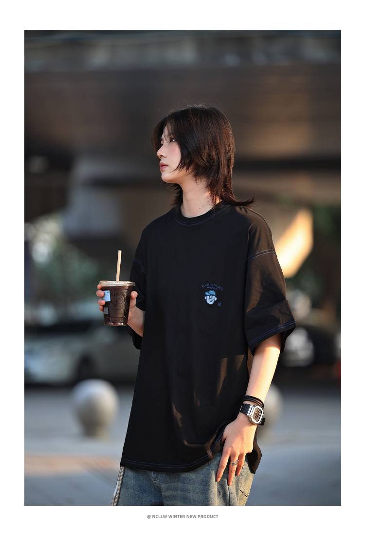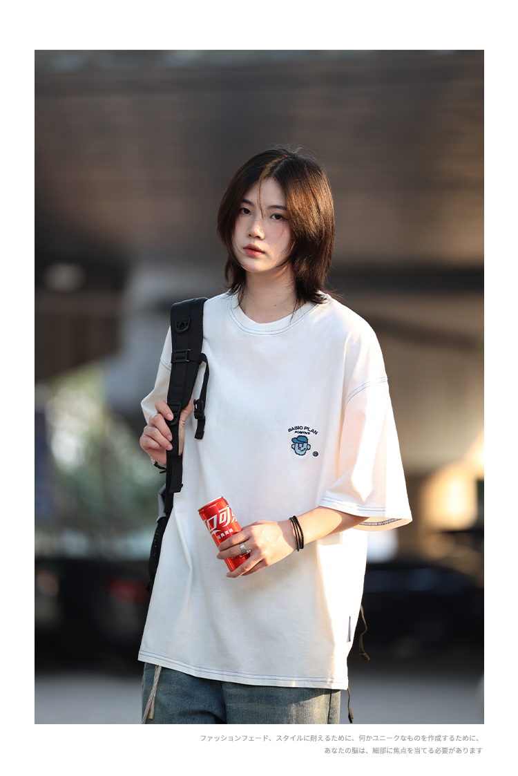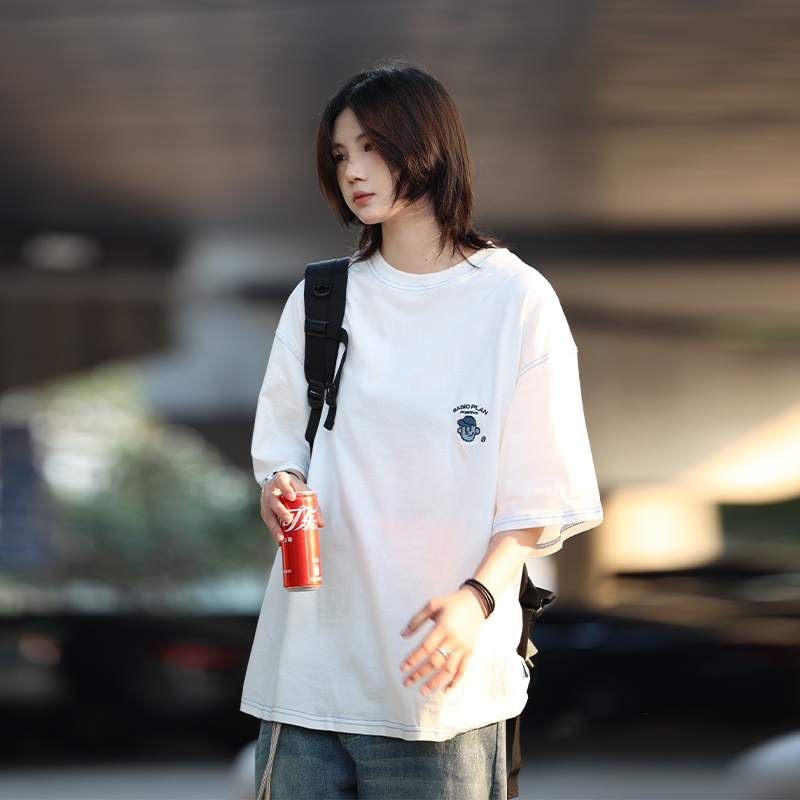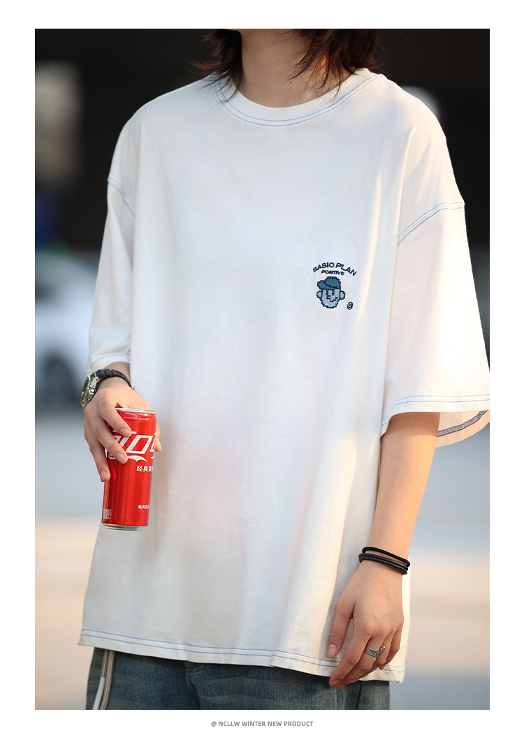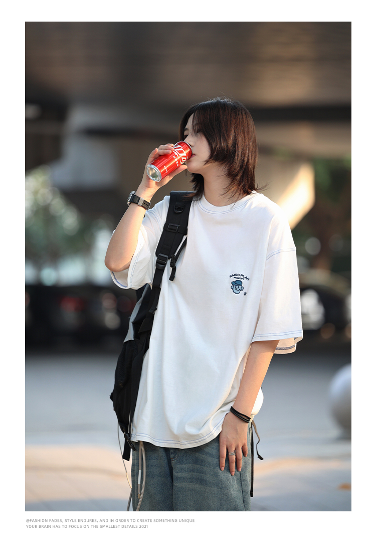 你初戀老王 日系簡約短袖t恤男潮流寬鬆半袖原宿風休閒百搭打底衫