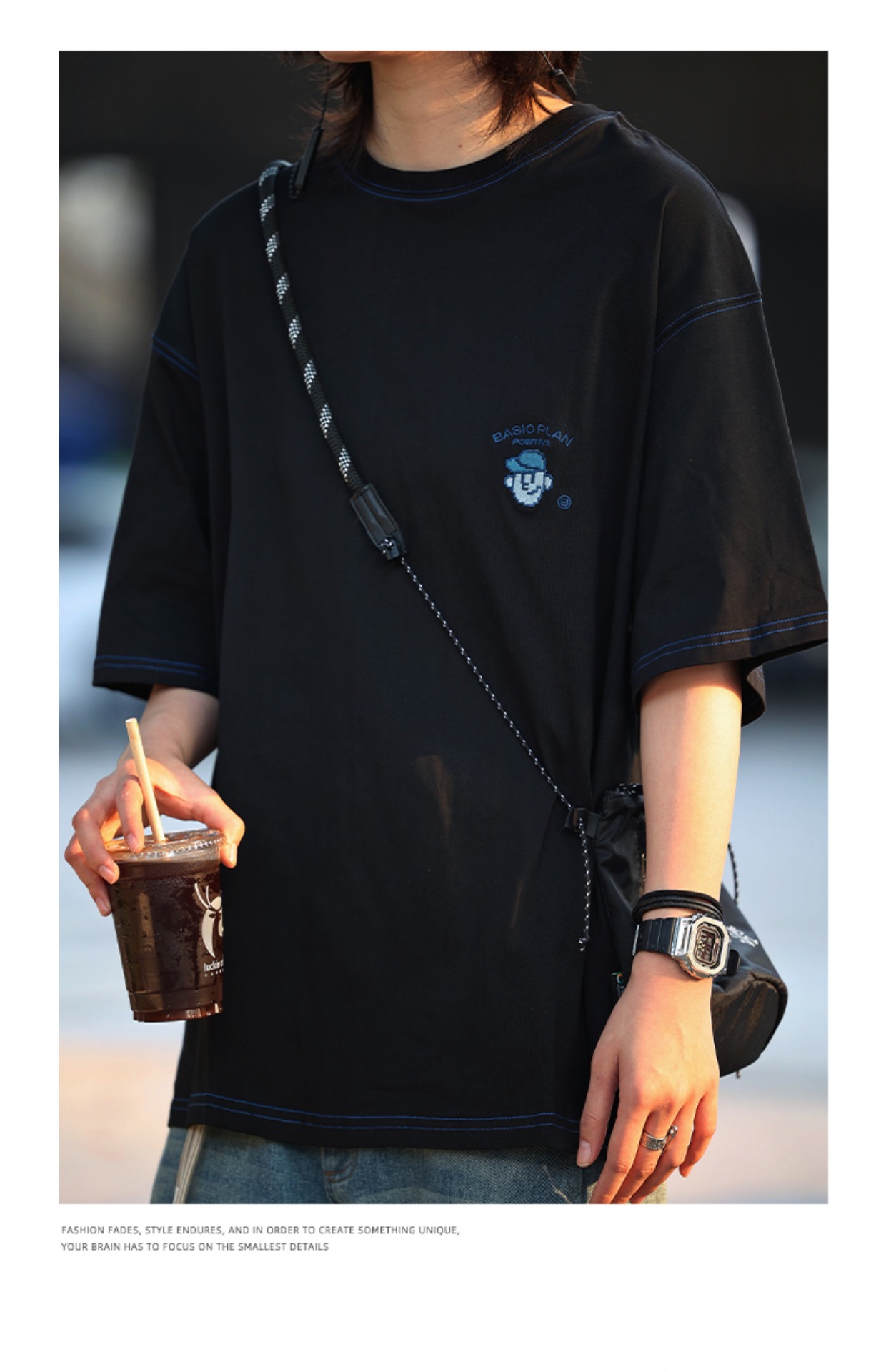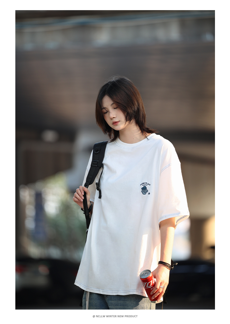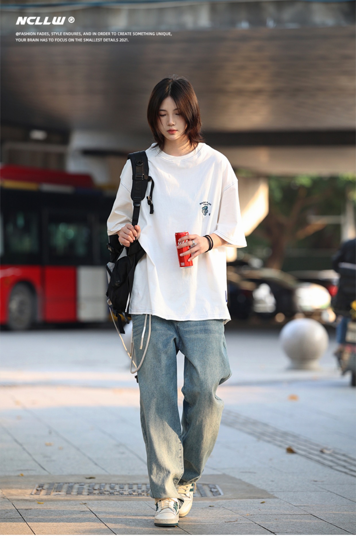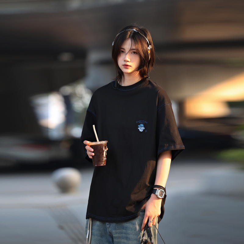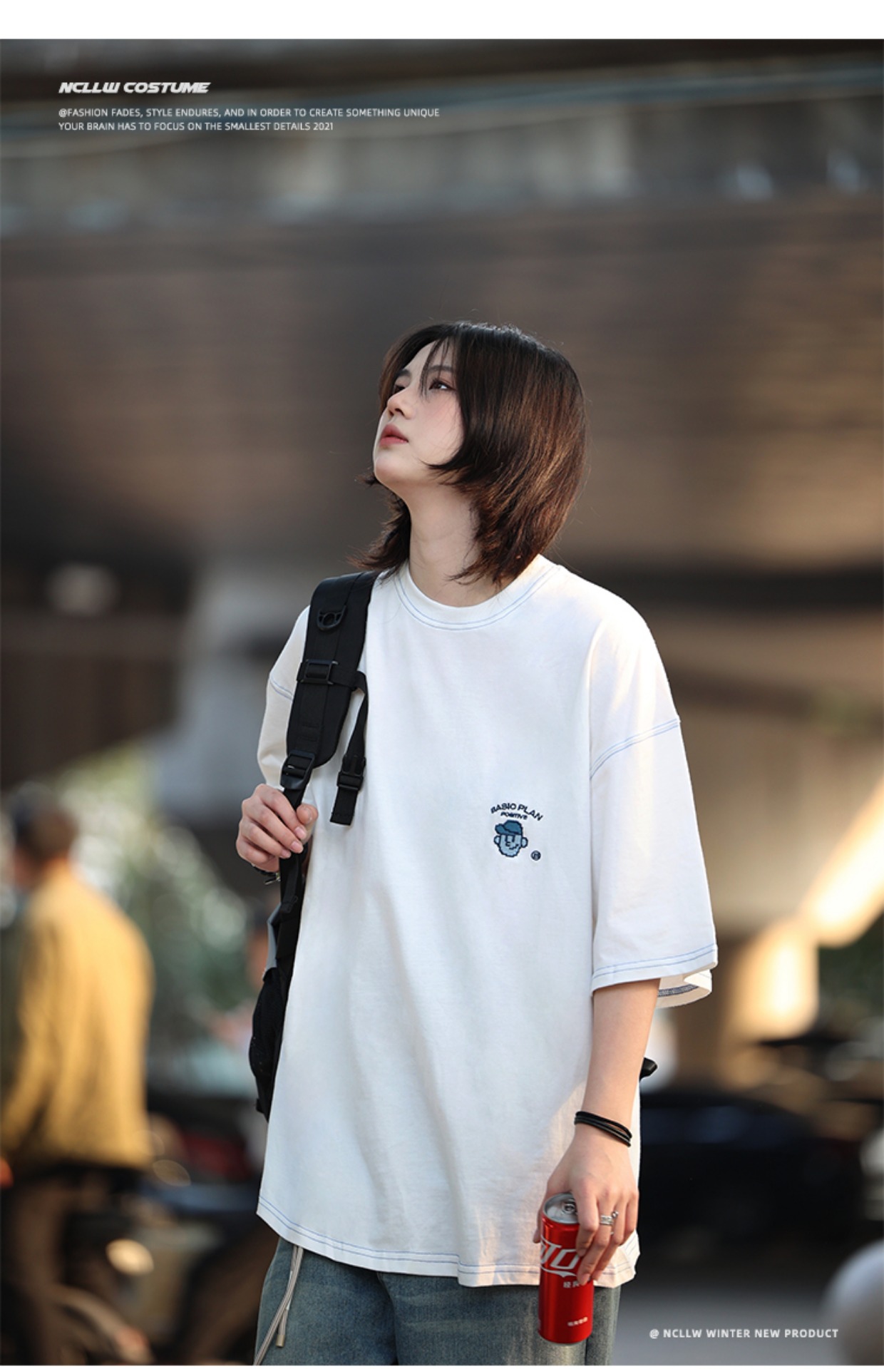 你初戀老王 日系簡約短袖t恤男潮流寬鬆半袖原宿風休閒百搭打底衫