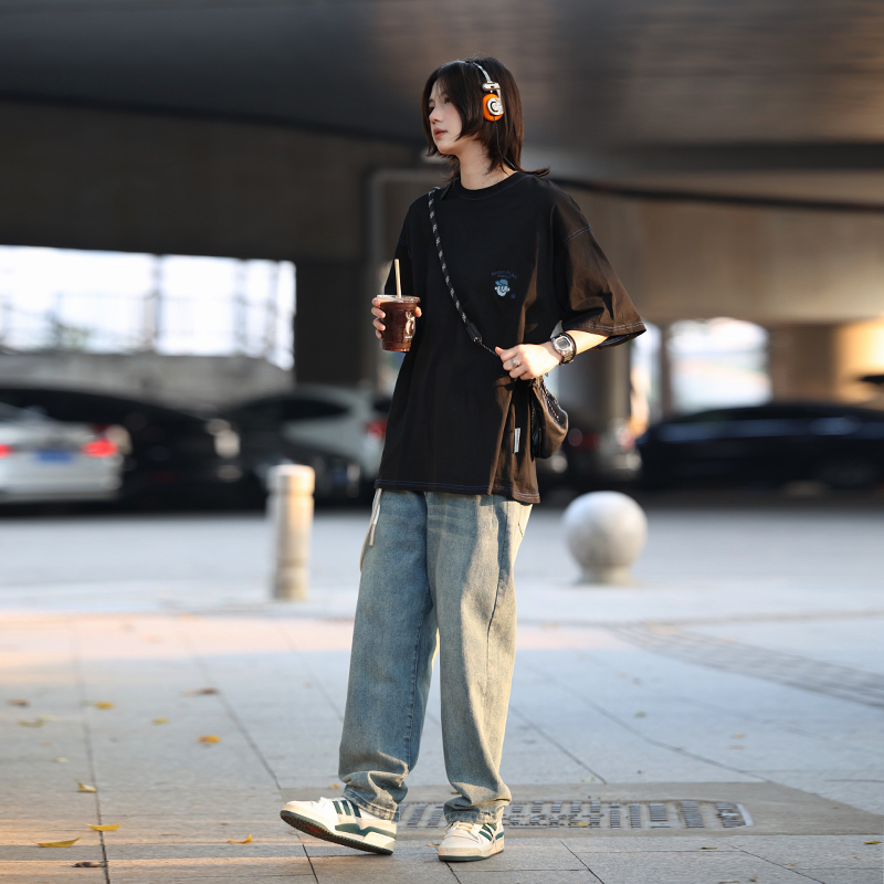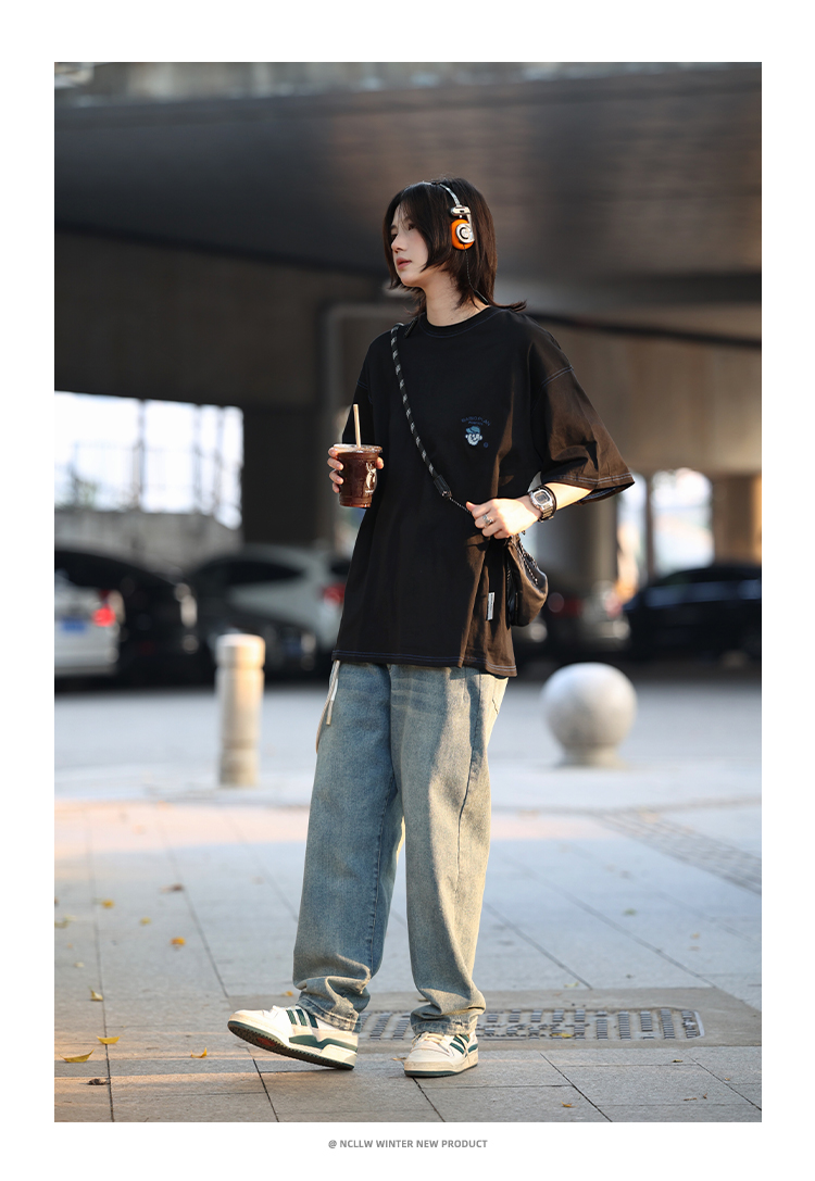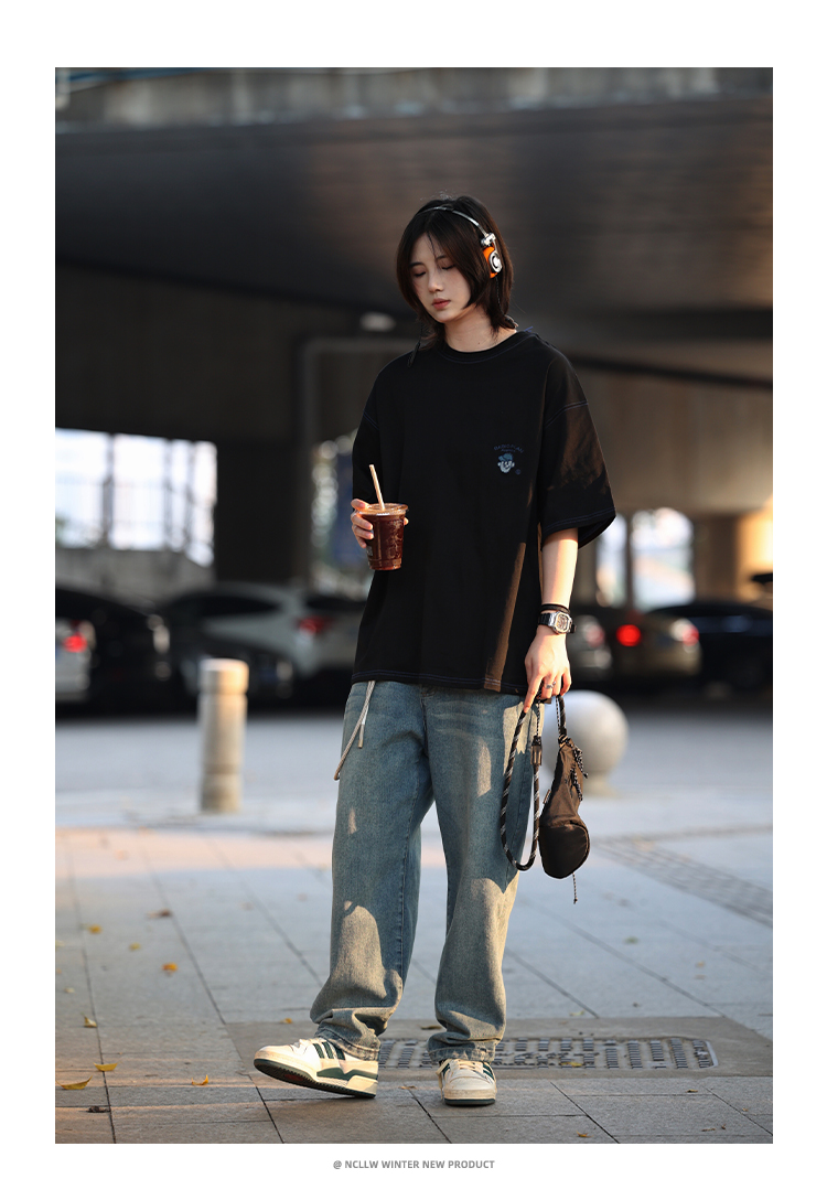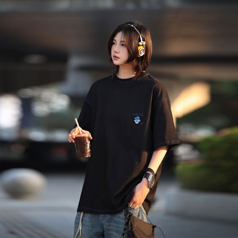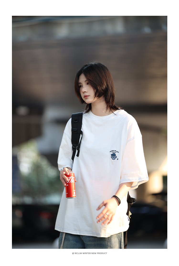 你初戀老王 日系簡約短袖t恤男潮流寬鬆半袖原宿風休閒百搭打底衫