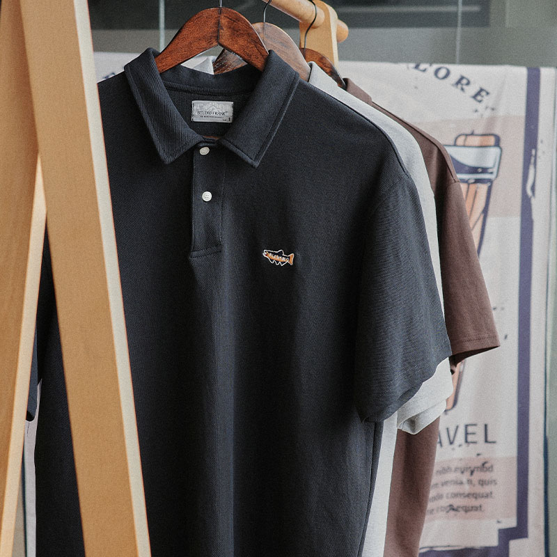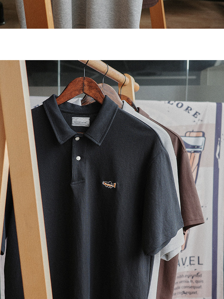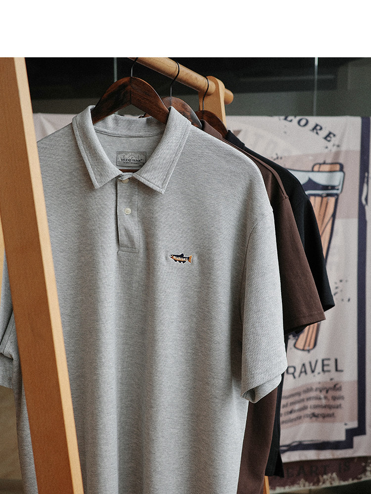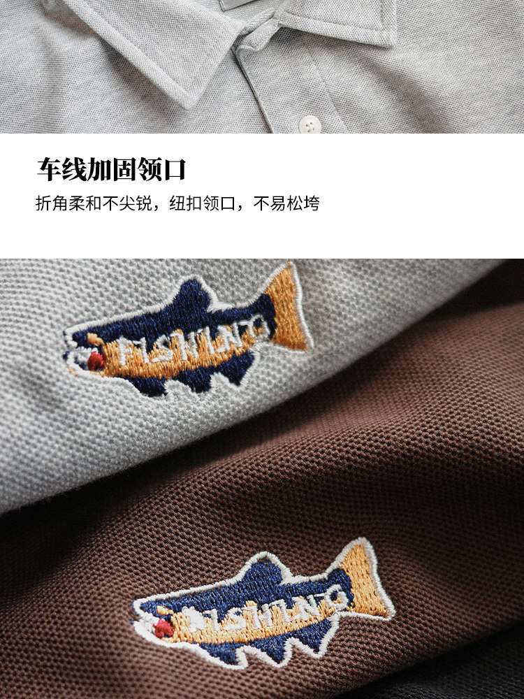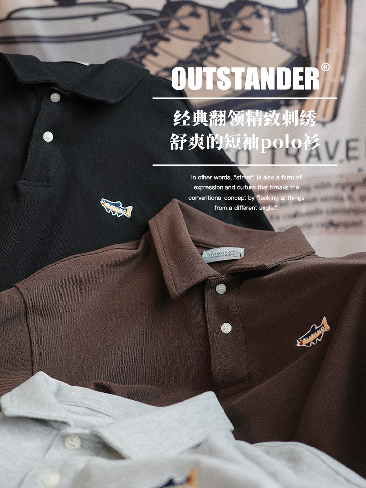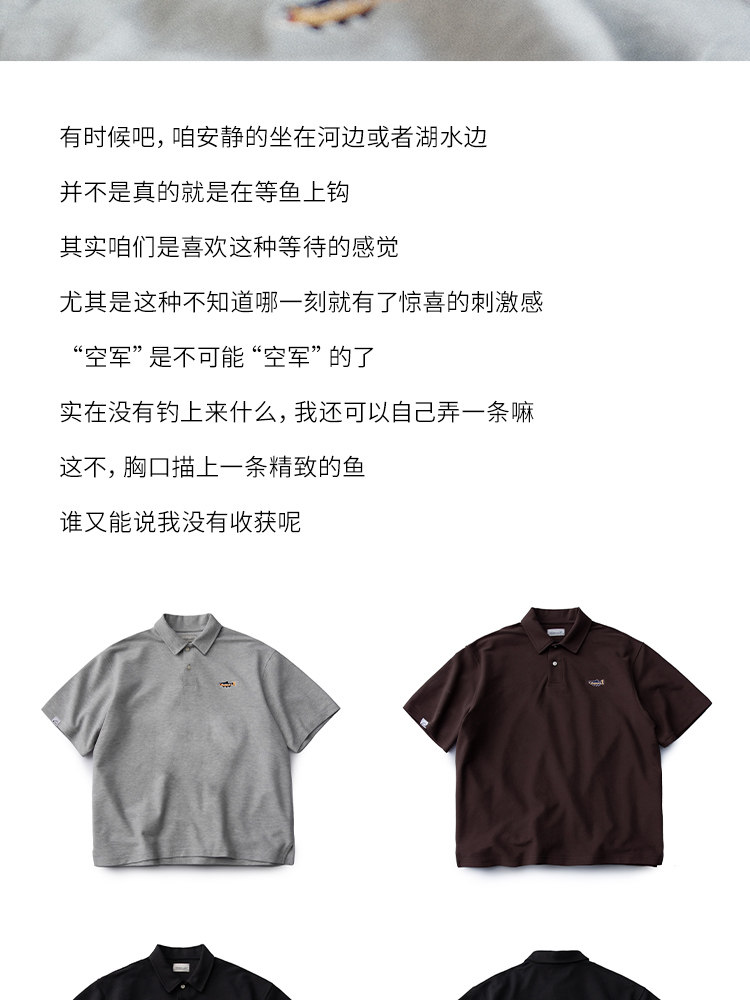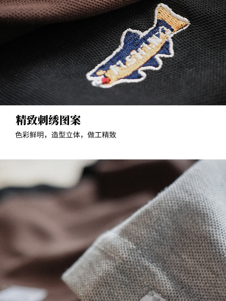 「魚佬」夏季日系刺繡短袖polo衫潮男休閒寬鬆翻領半袖拉夫·勞倫馬球衫上衣