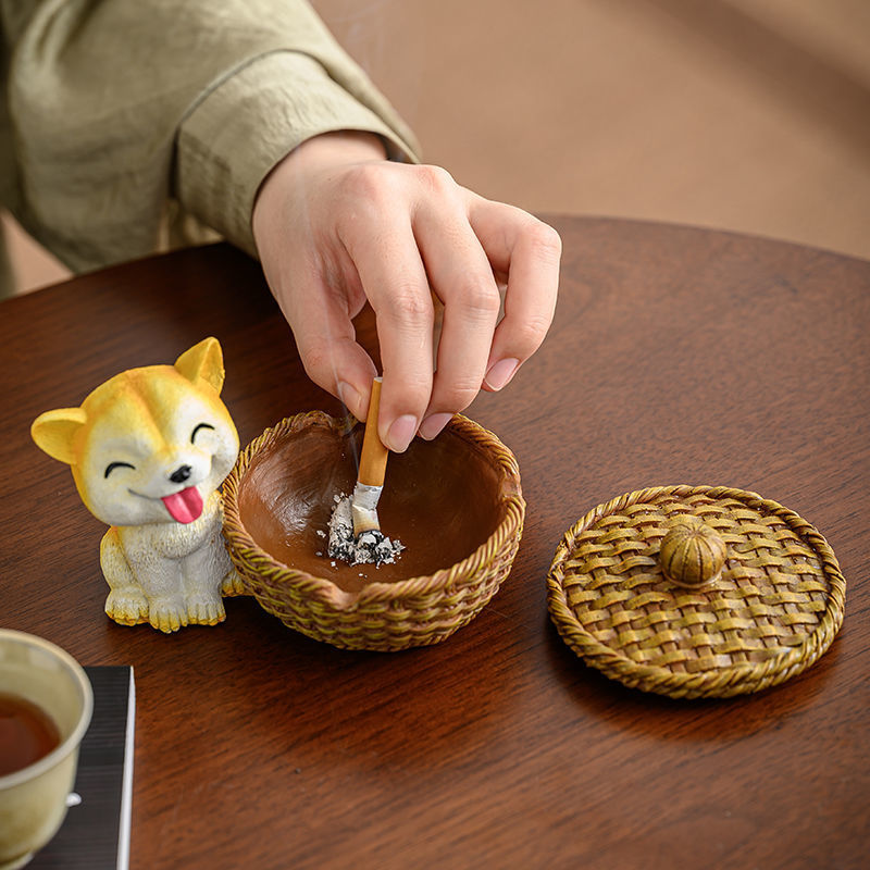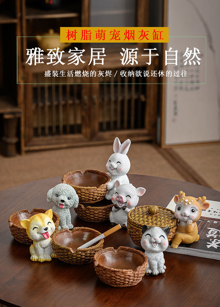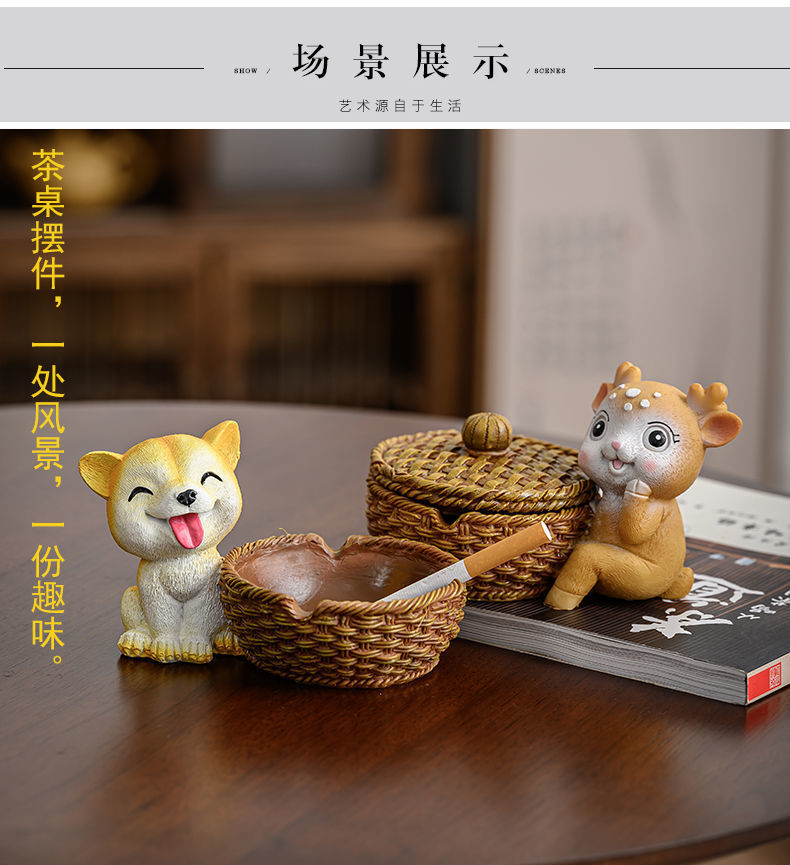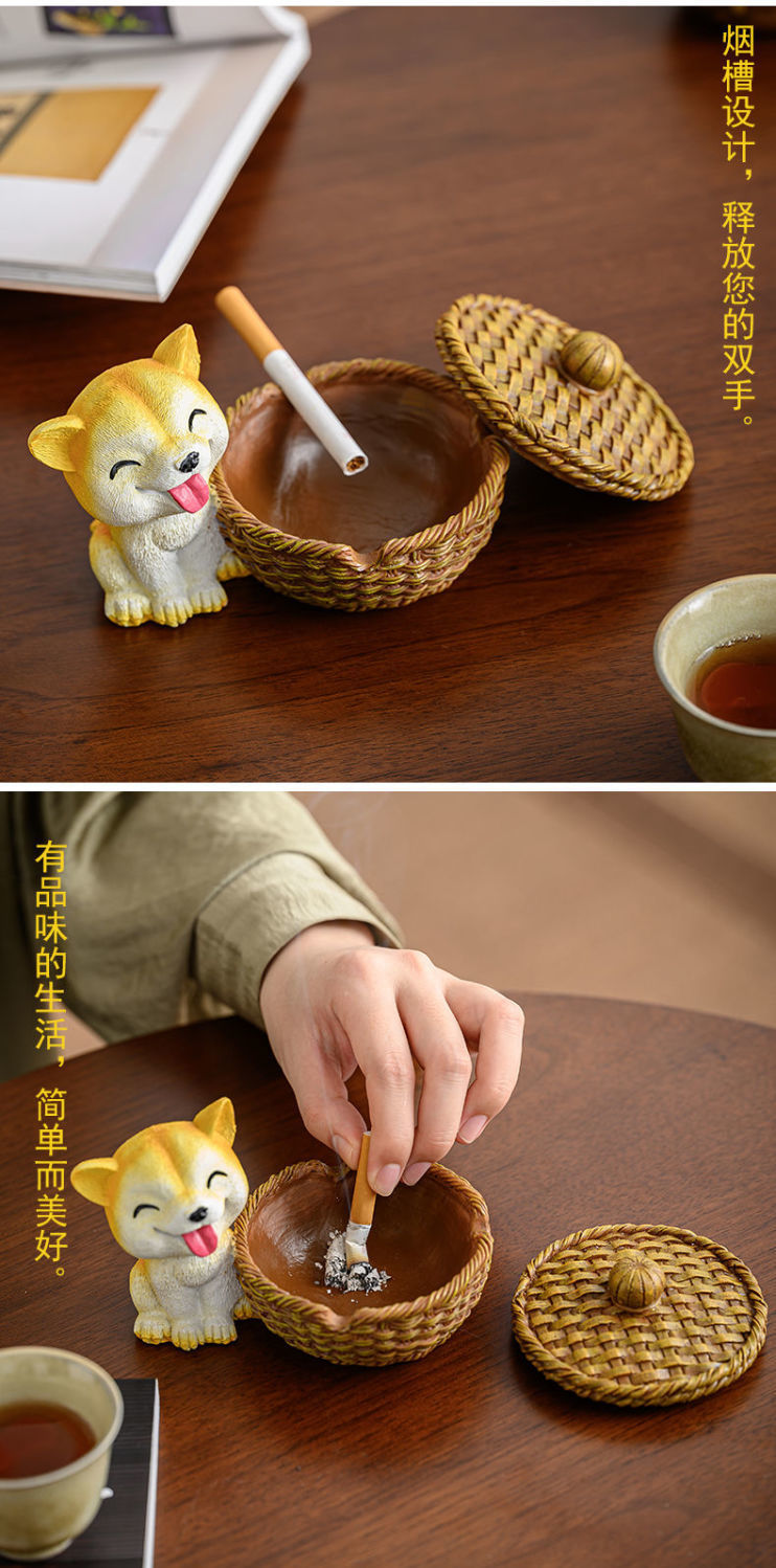 北欧ins风烟灰缸个性潮流办公桌家用客厅时尚创意带盖装饰摆件