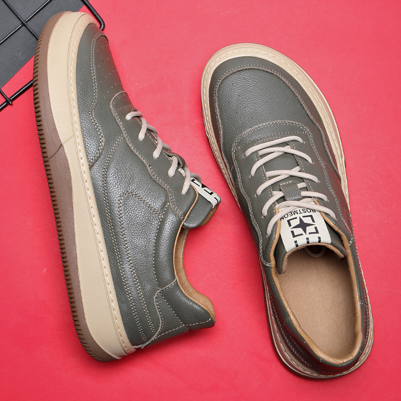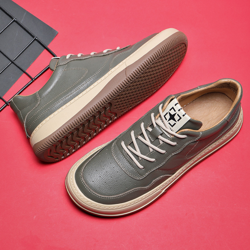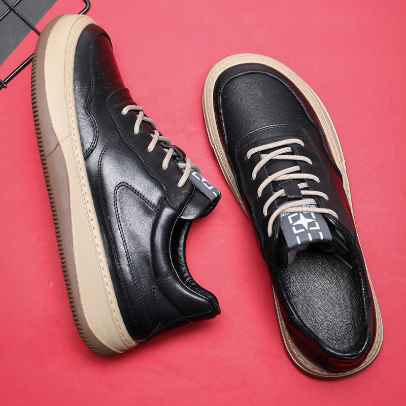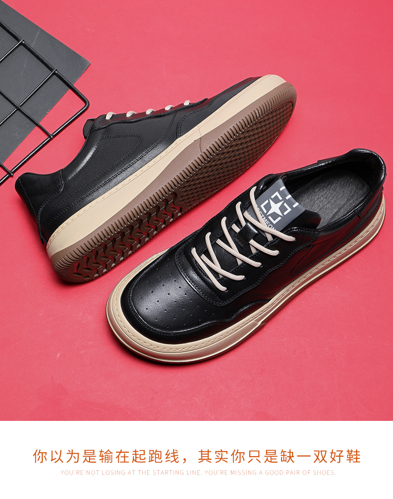 歐洲站男鞋真皮小醜鞋男潮牌秋季皮鞋休閒百搭歪頭醜萌鞋低幫滑板鞋