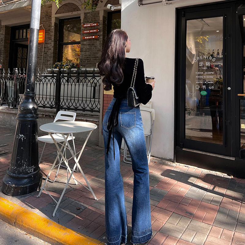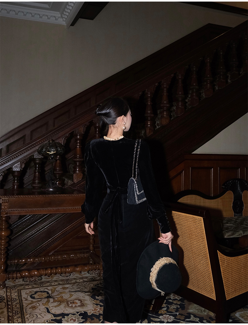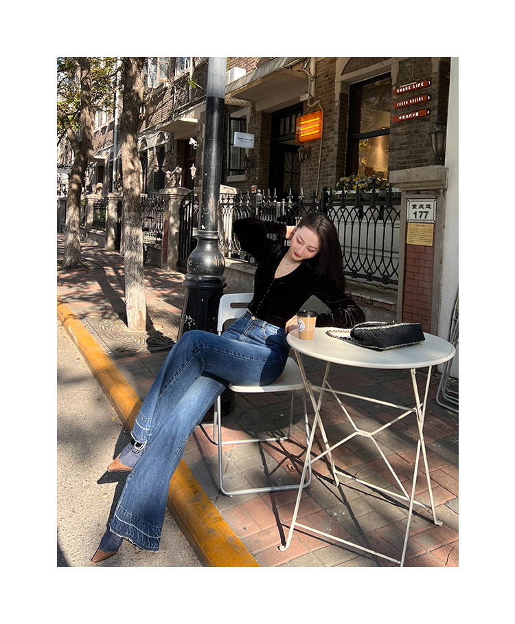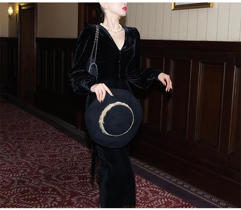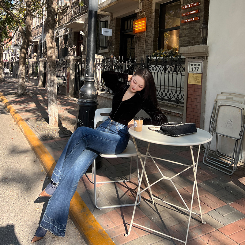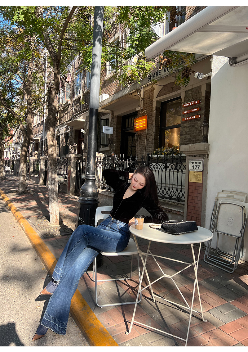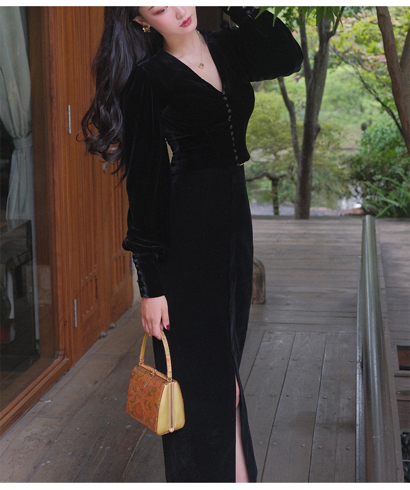 小麗XIAOLI黑曜石絲絨泡泡長袖V領襯衫秋內搭法式設計感顯瘦上衣