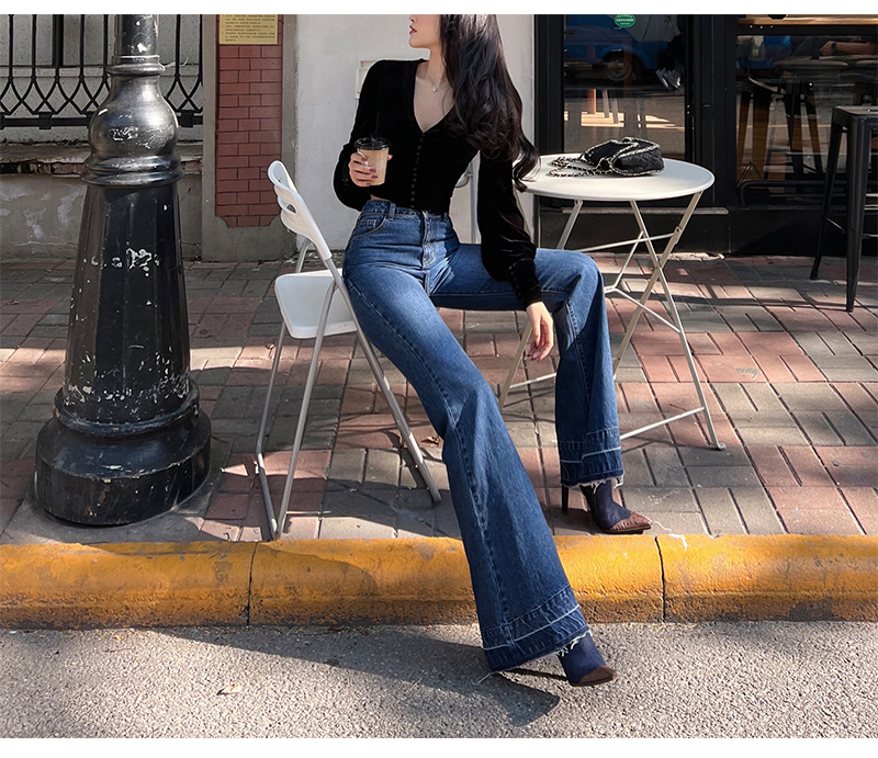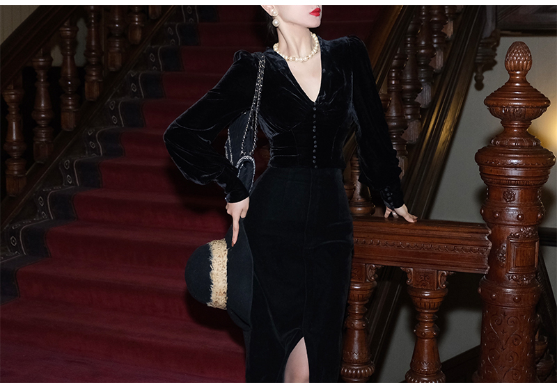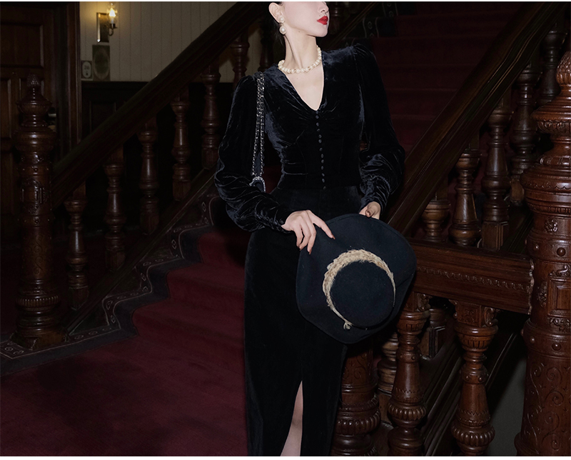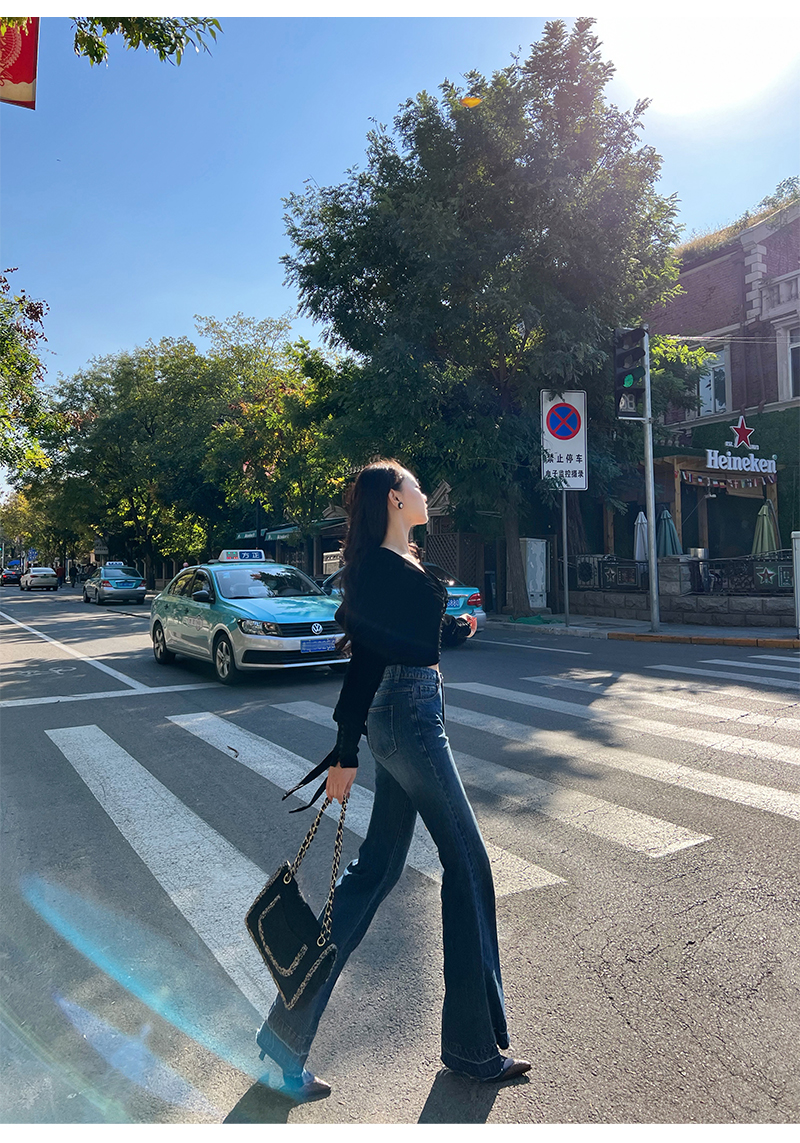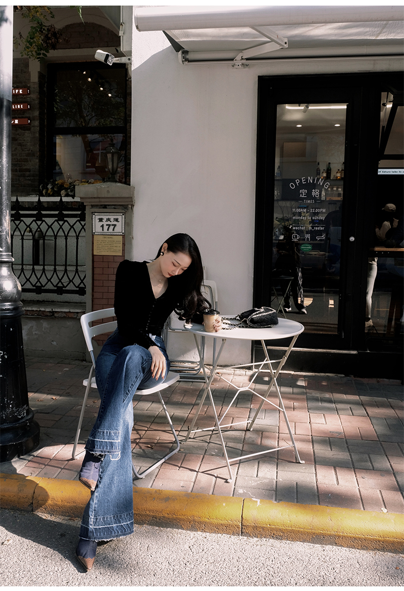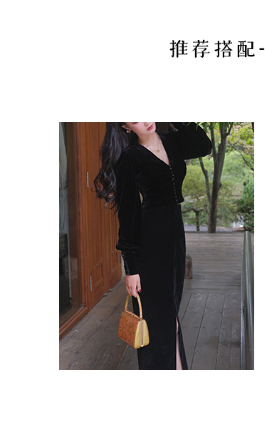 配上V领的设计,露出锁骨修饰出脖颈线条之美