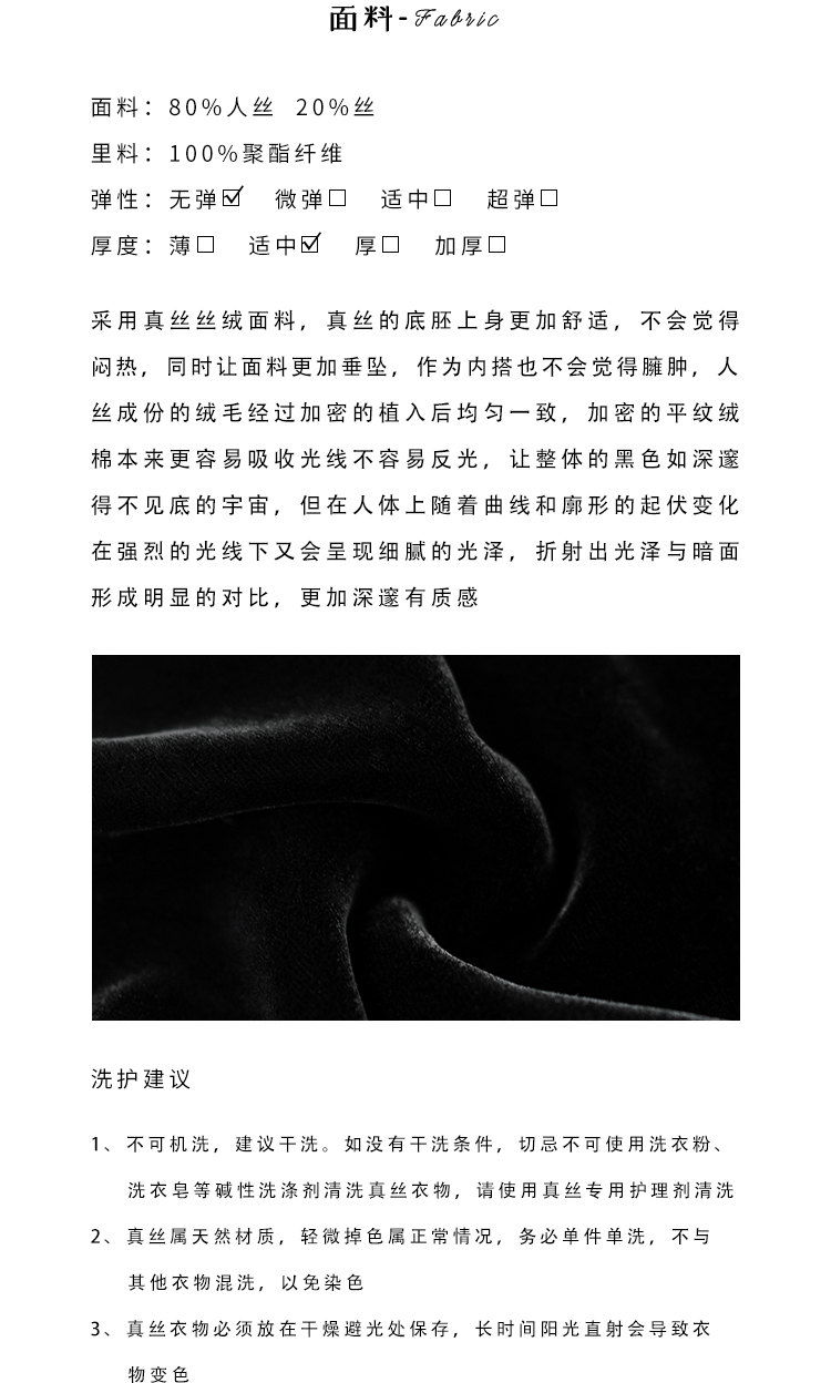 整件有做内衬,内衬材质是缎面雪纺,柔软舒适