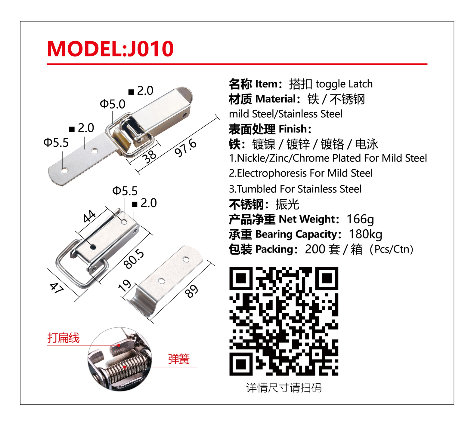 不锈钢搭扣紧固件工业设备搭扣不锈钢弹簧扣锁机械设备配件J010