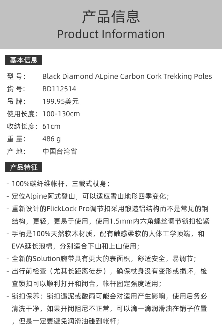 Black Diamond黑鑽BD登山杖超輕可伸縮外鎖碳素碳纖維鋁合金手杖