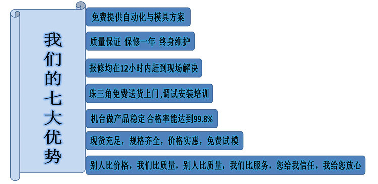 电控配件/液压配件采用国产名牌,精密耐用运转噪音低。锁模力15TON~35TON,有PLC编程电控电脑单比压控制或电脑全比例(比压比流)控制三种,可供客户选择。