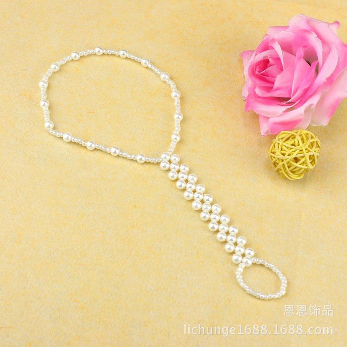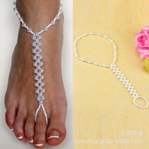 欧美时尚波浪形珍珠脚链异国情调百搭珍珠手工潮流脚饰