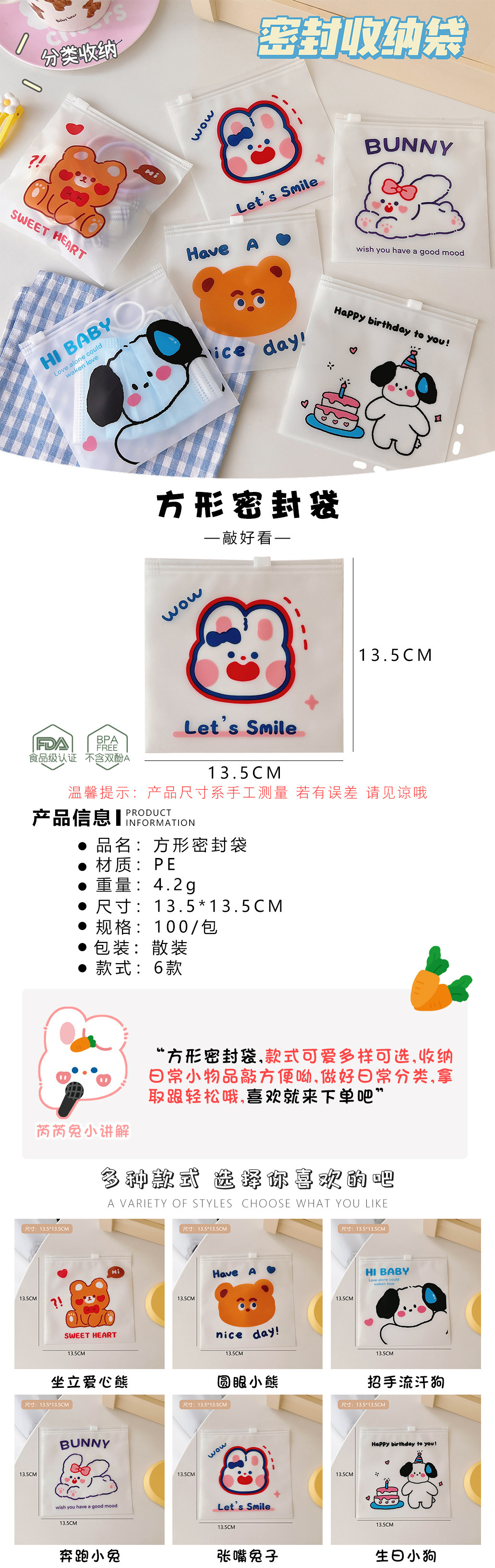 可爱卡通封口袋零食自封袋食品分装袋饼干糖果包装袋密封袋批发