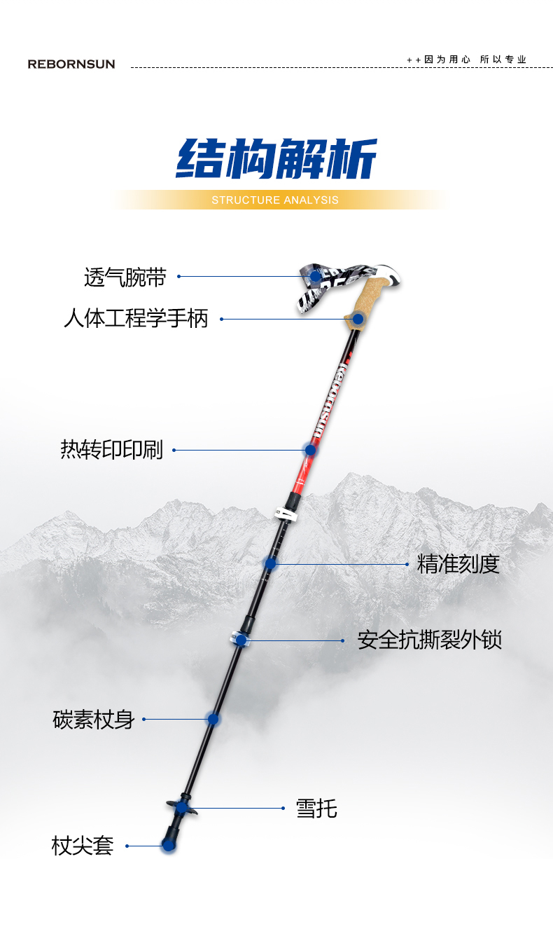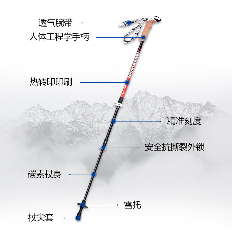 魯濱遜登山杖外鎖碳素超輕伸縮手杖碳纖維摺疊杖專業戶外徒步裝備