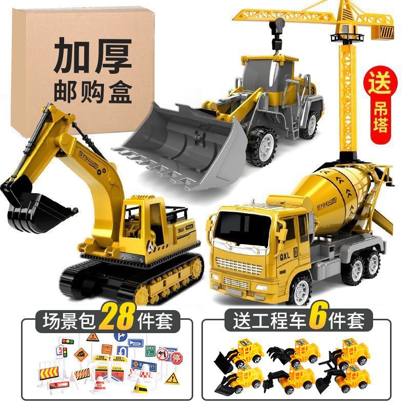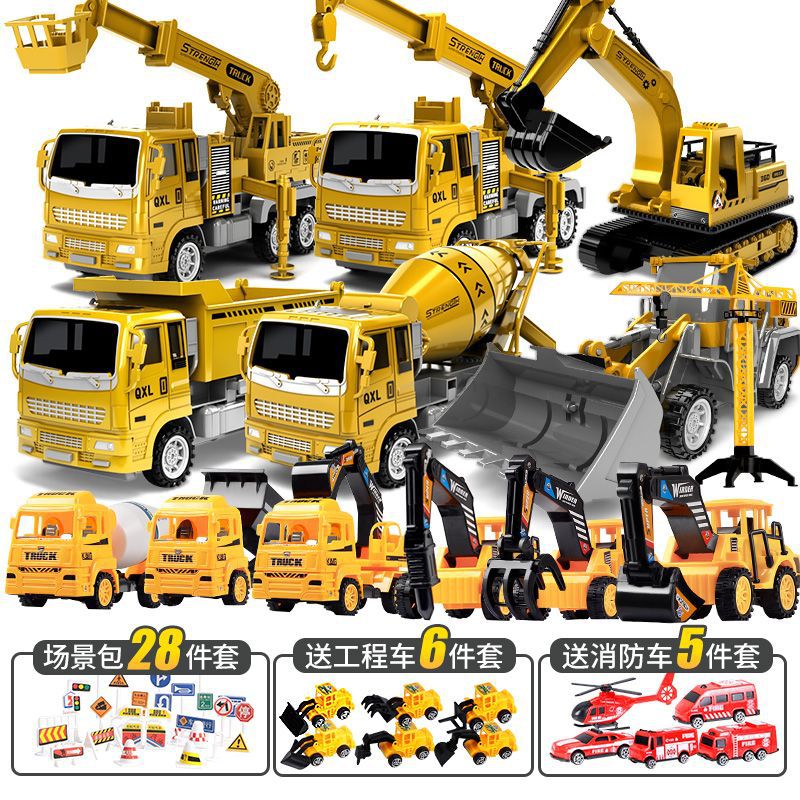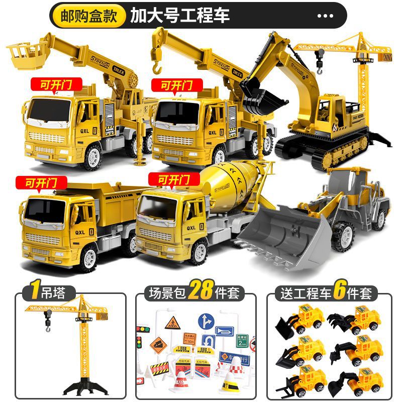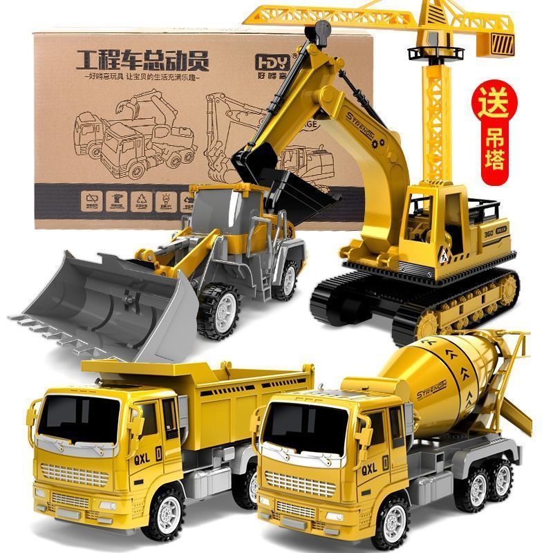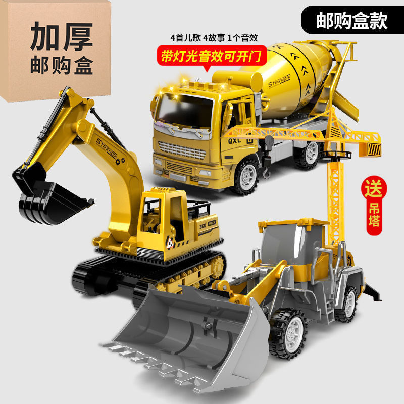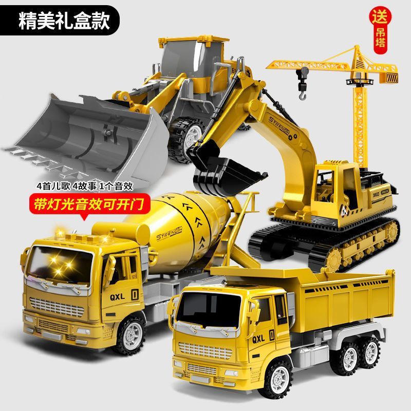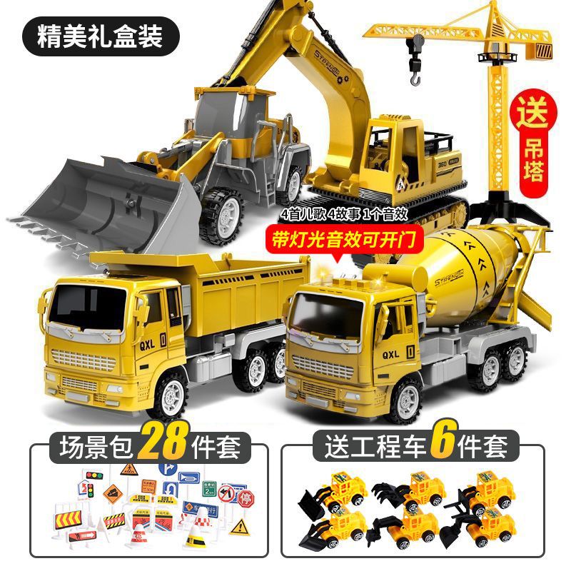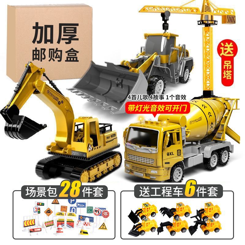 合金工程车大号玩具车模型儿童套装钩机挖掘机水泥搅拌车吊车男孩