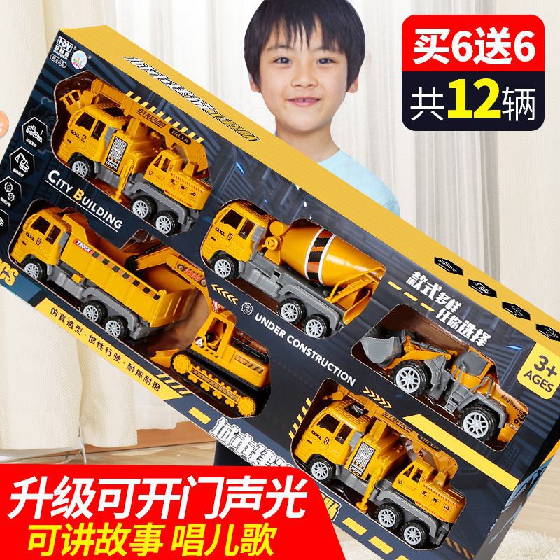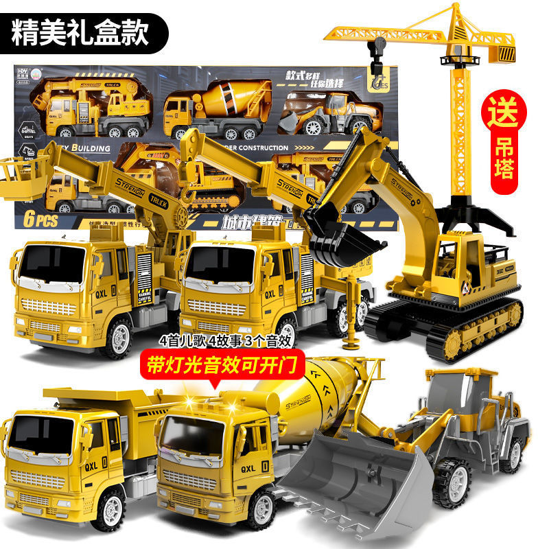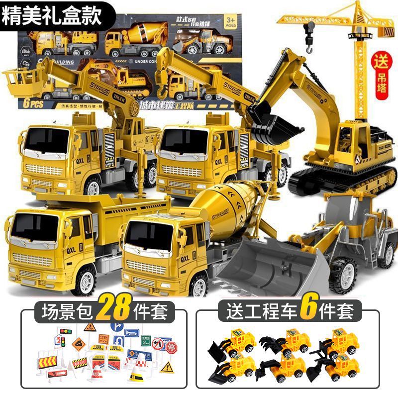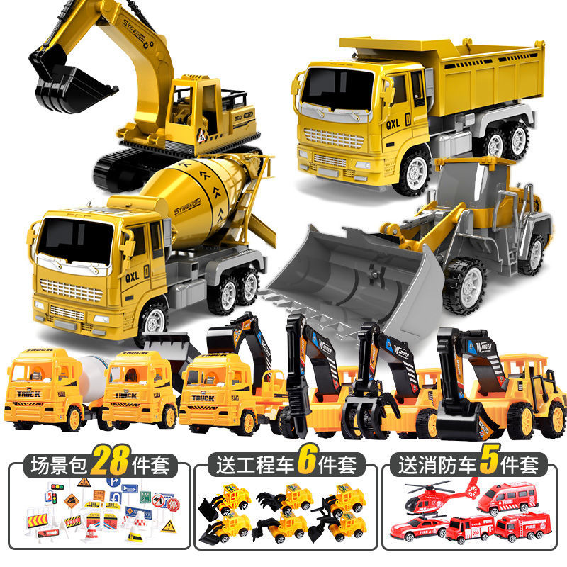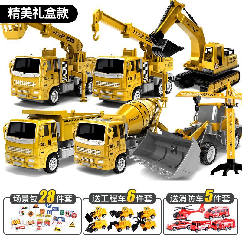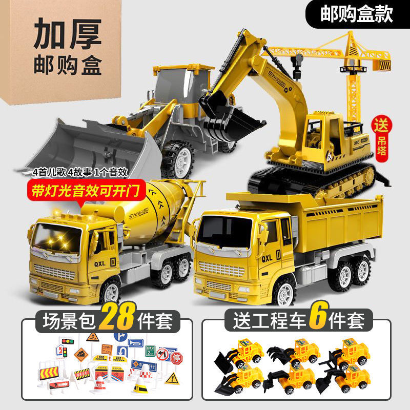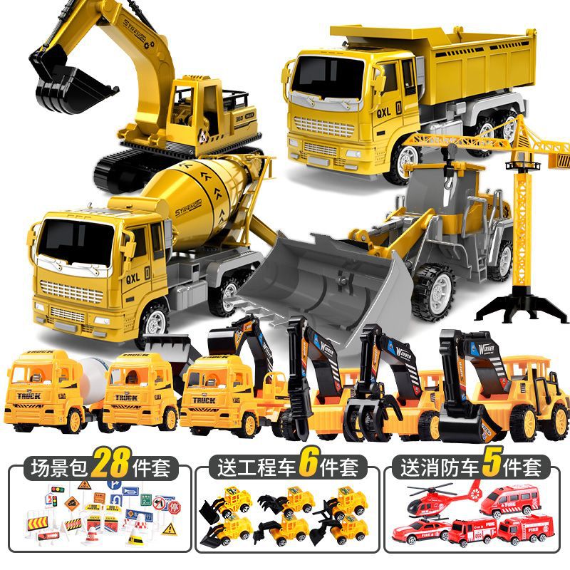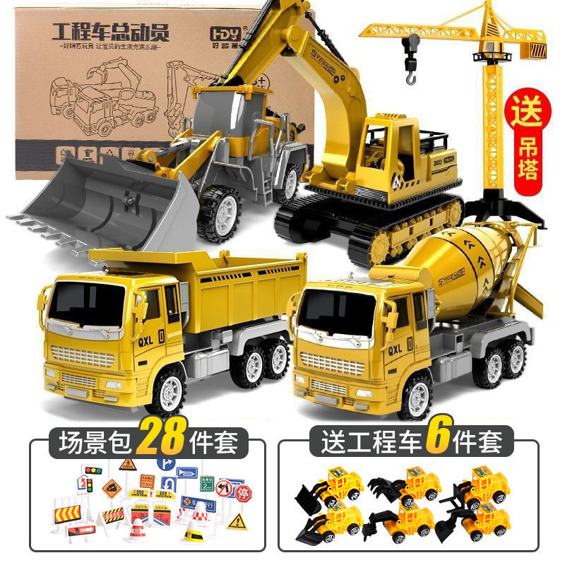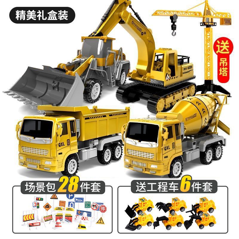 合金工程车大号玩具车模型儿童套装钩机挖掘机水泥搅拌车吊车男孩