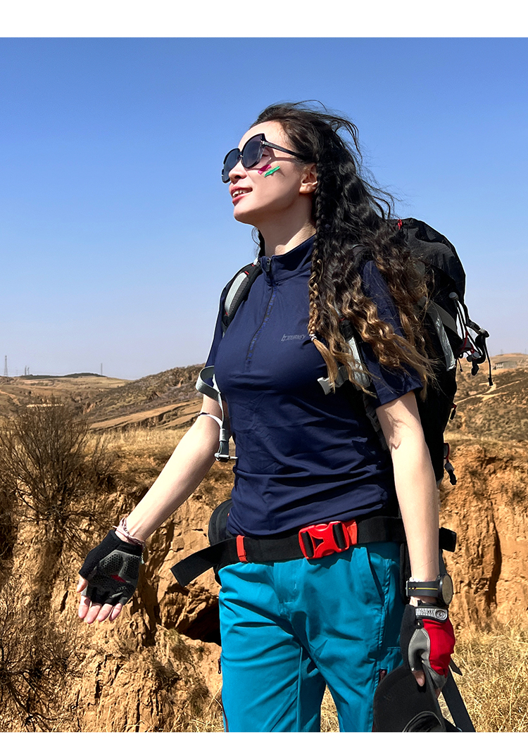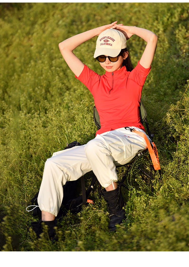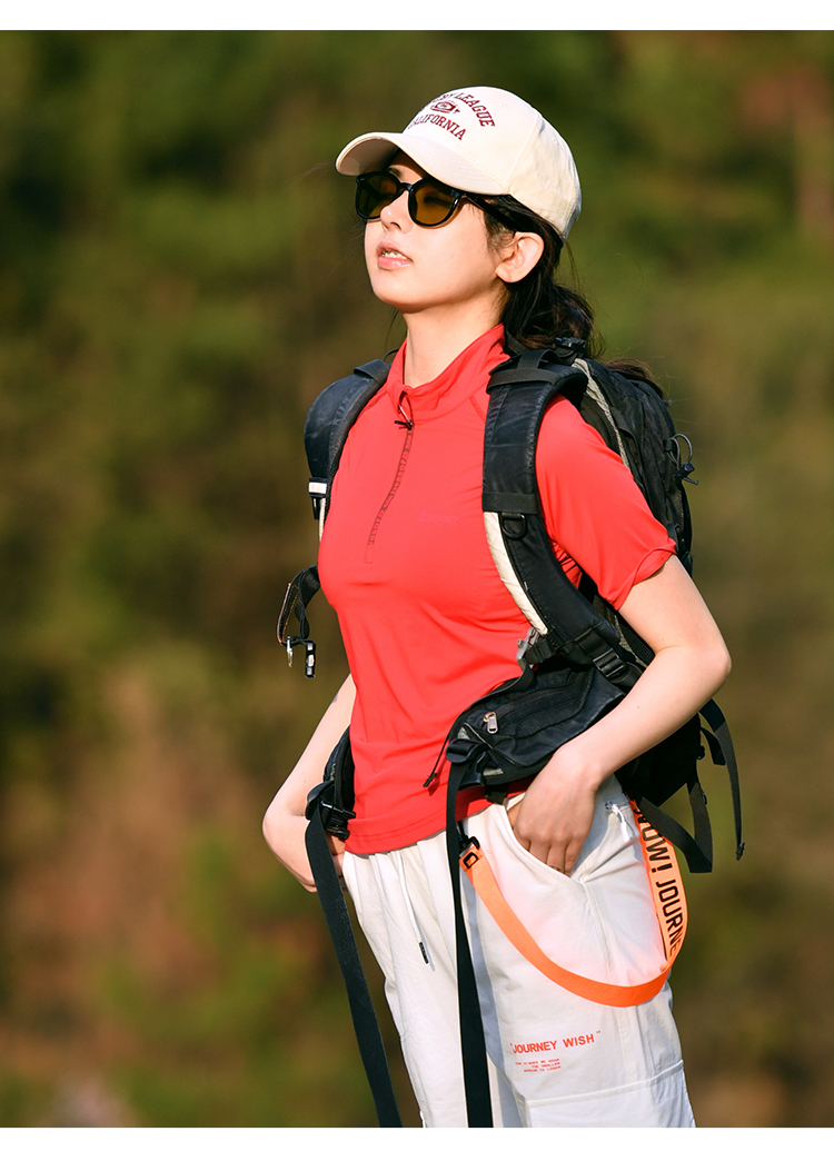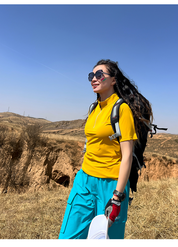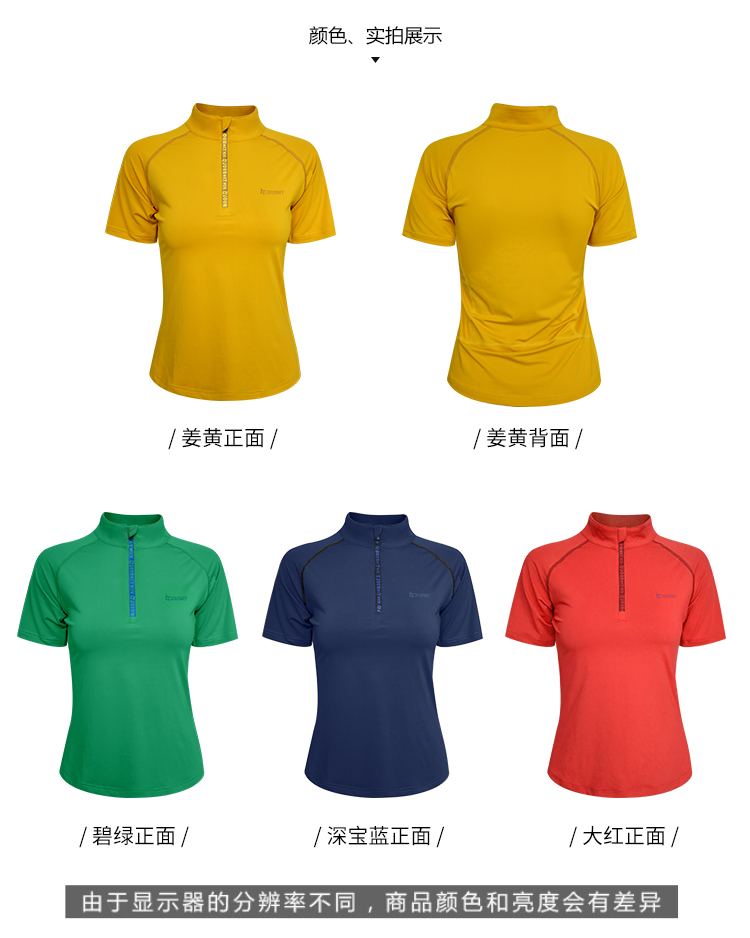 卓尼維斯戶外休閒旅行彈力透氣薄打底修身立領速乾衣短袖T恤女式