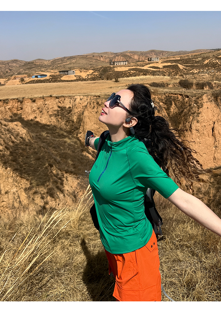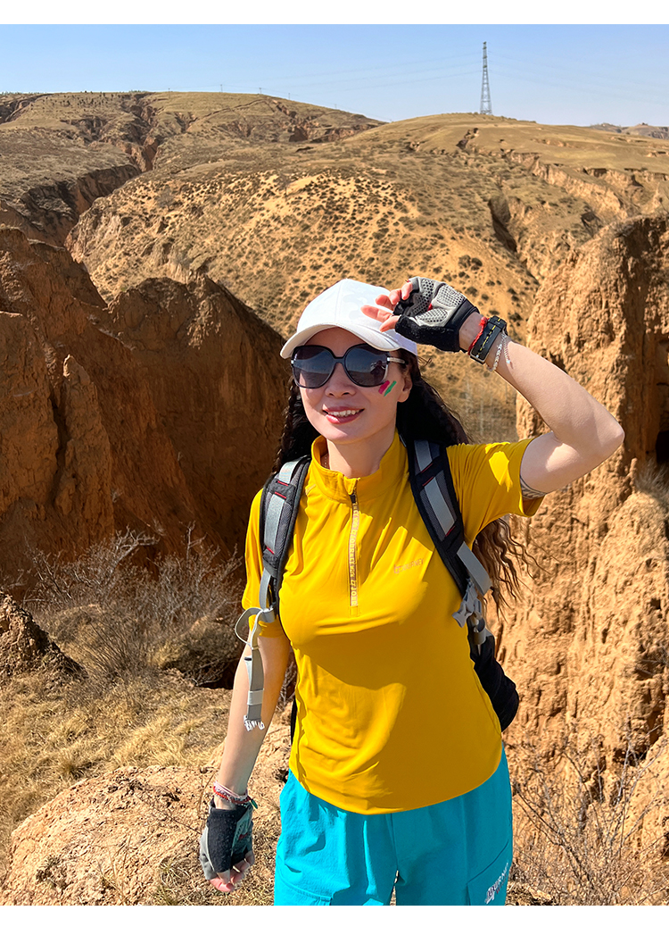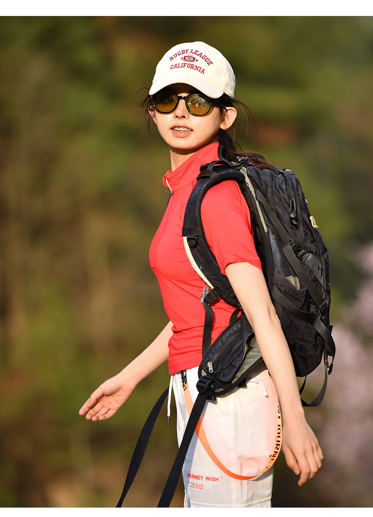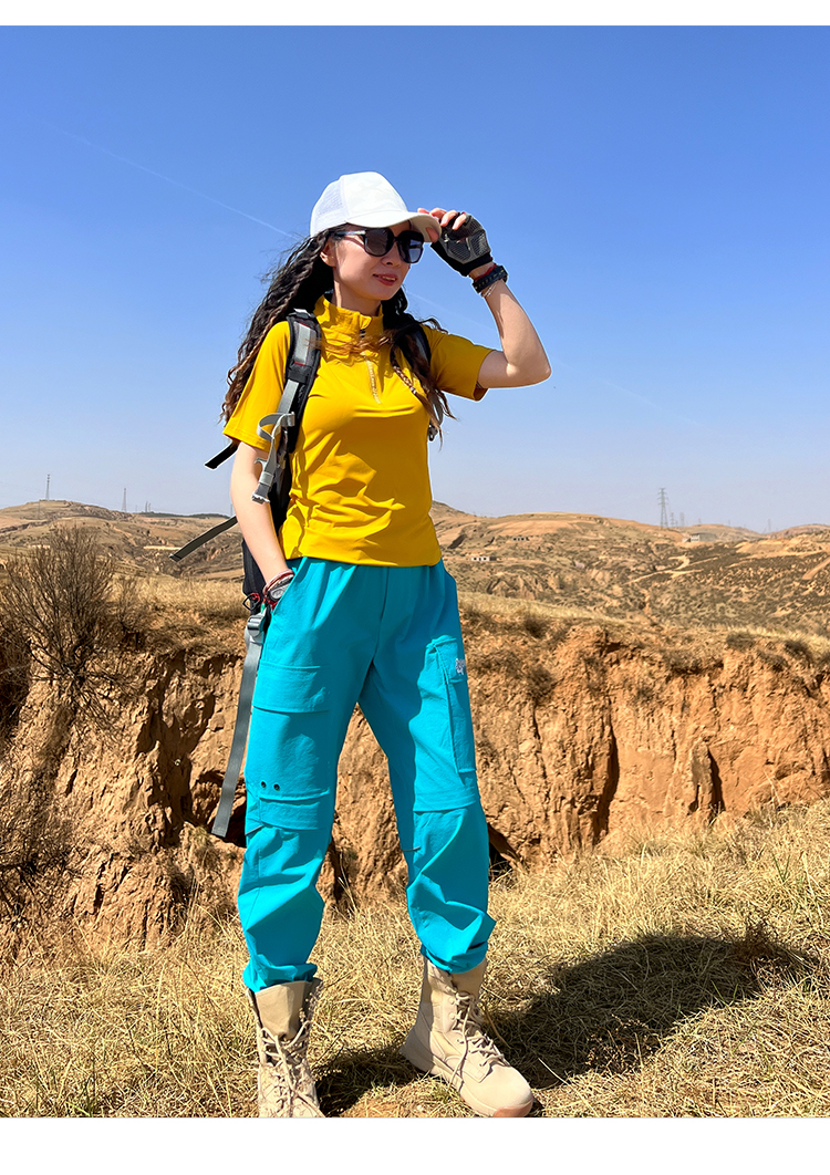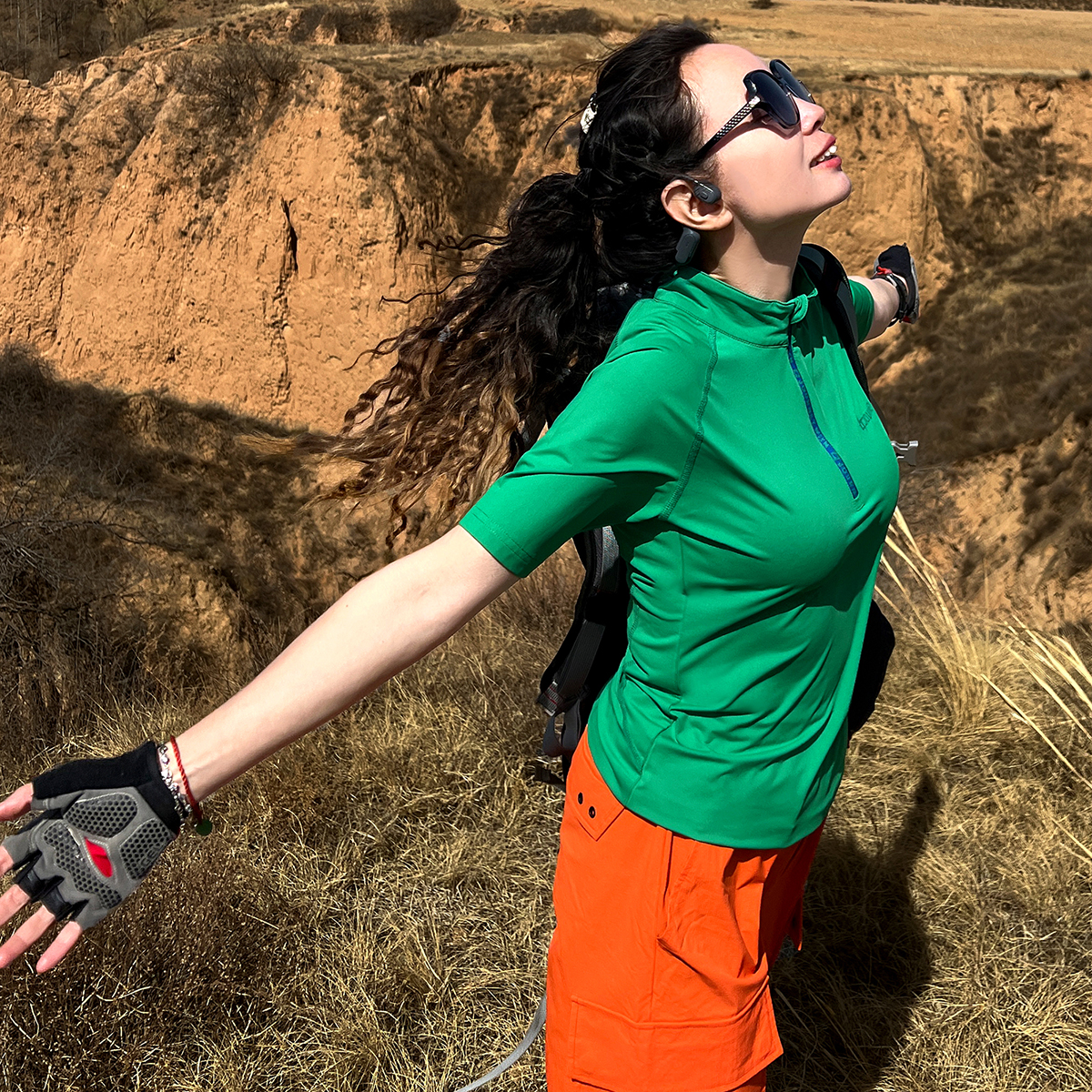 卓尼維斯戶外休閒旅行彈力透氣薄打底修身立領速乾衣短袖T恤女式