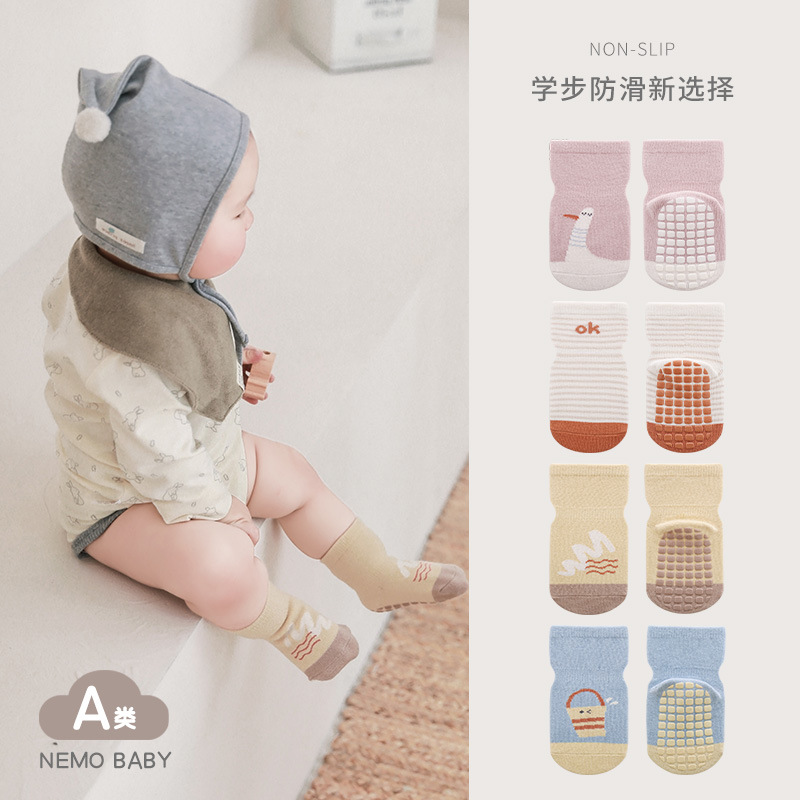 婴儿地板袜春秋可爱卡通宝宝学步袜子室内防滑隔凉儿童早教中筒袜