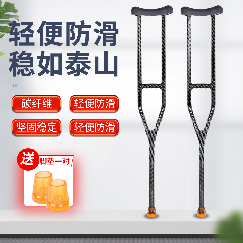 老年柺杖伸縮超輕黑色碳纖維拐小號調節柺棍橡膠 徒步骨折腋下拐
