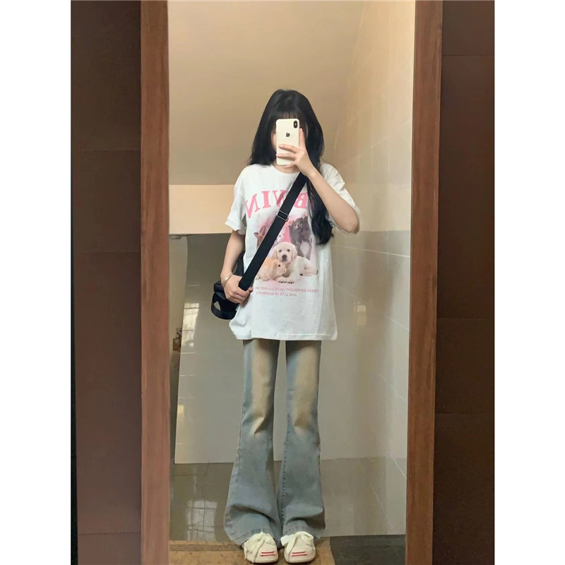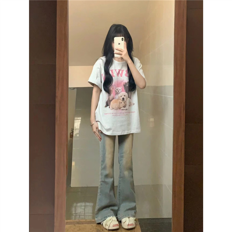 100%純棉美式小個子卡通短袖T恤女夏季寬鬆慵懶港味復古chic上衣