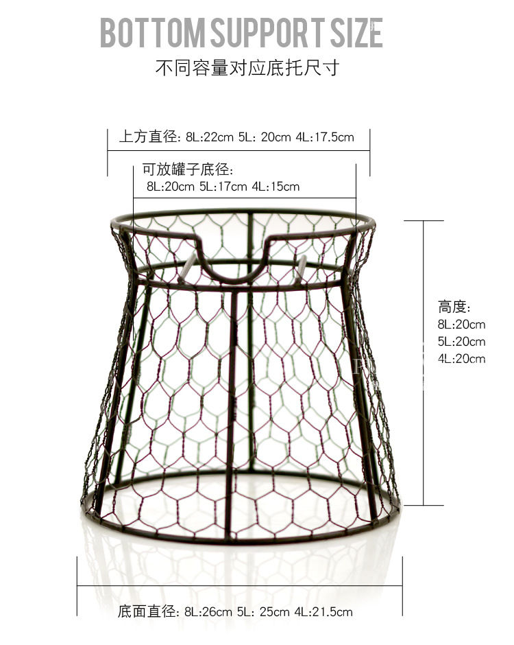 颜色 黑色细腿架(仅架子),金色细腿架(仅架子),12cm银圈架(仅架子),4L黑色网格架,5L黑色网格架,8L黑色网格架,4L金色网格架,5L金色网格架,8L金色网格架,5L银扁架,8L银扁架,鸟笼黑架(仅架子),鸟笼金架,12cm金圈架(仅架子),8升双银圈架,南瓜黑水滴架,南瓜金十字架,南瓜银十字架,8升双层黑色网格架,5L金扁架,8L金扁架,白色双瓶架子,黑色双瓶架子