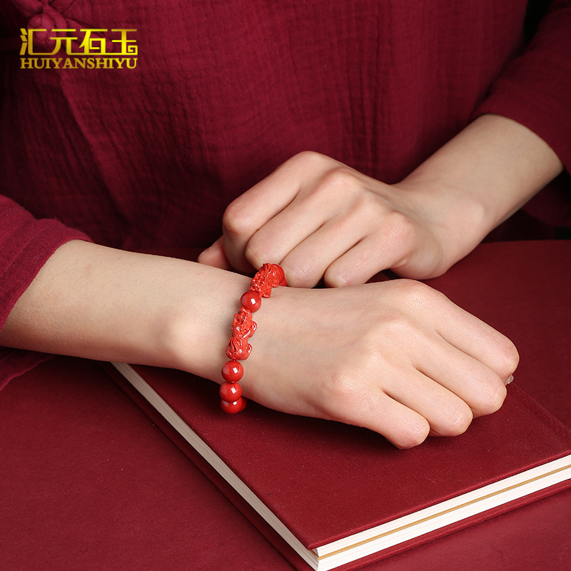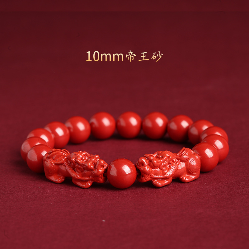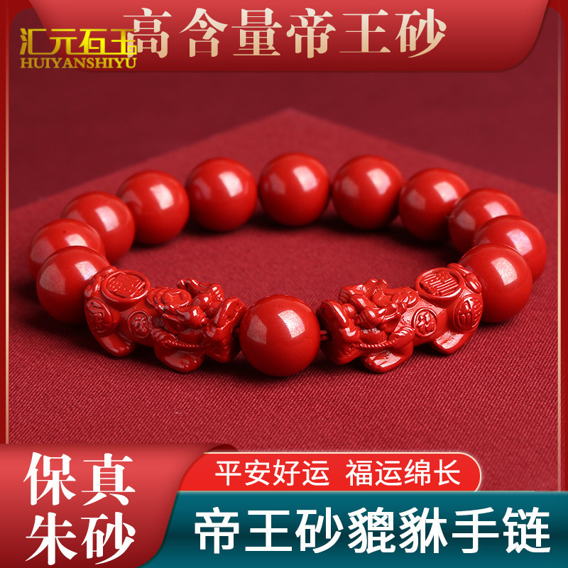 原矿天然朱砂貔貅手串男女生肖兔虎本命年转运帝王砂皮丘手链