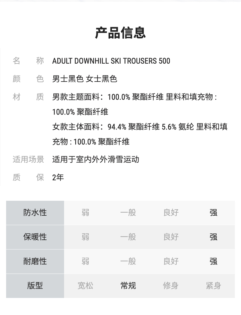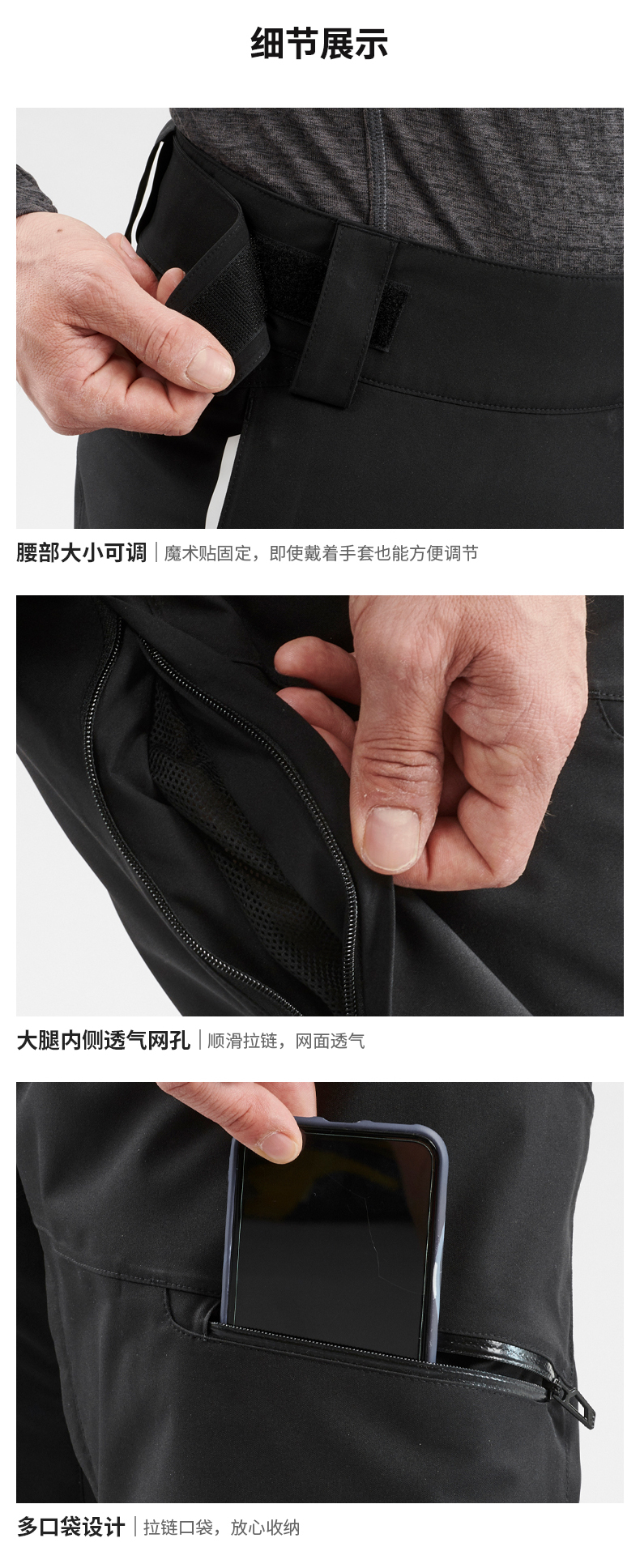 迪卡儂滑雪褲男戶外防風防水加厚保暖修身長褲 OVW3