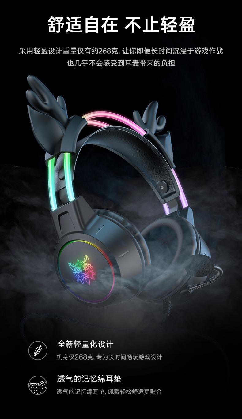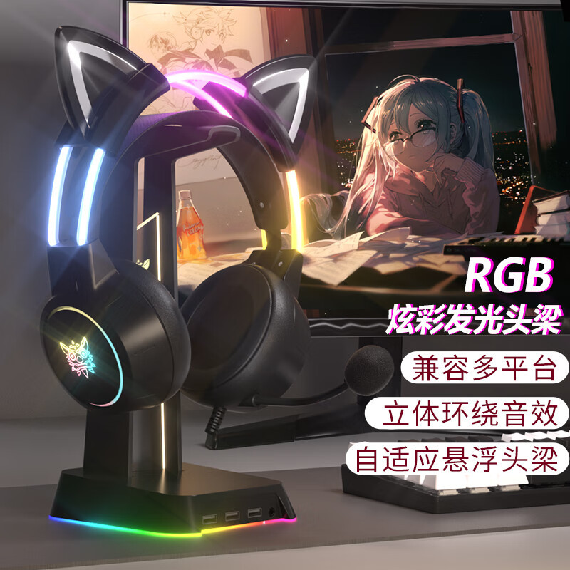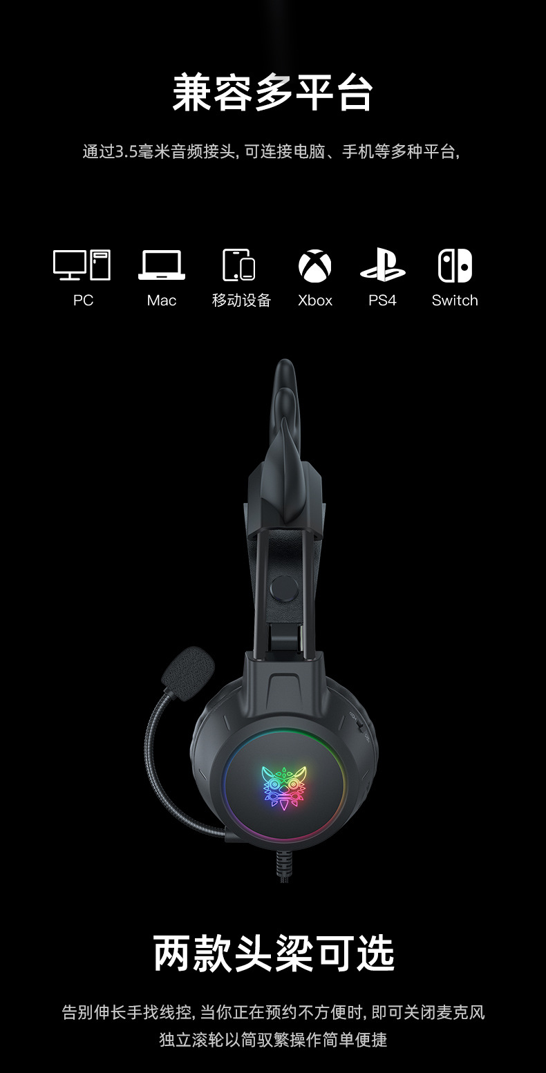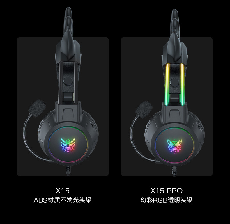 跨境爆款x15pro头戴式耳机发光头梁可爱猫耳电竞降噪电脑游戏耳机