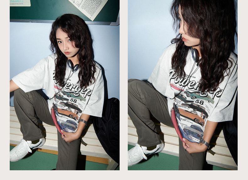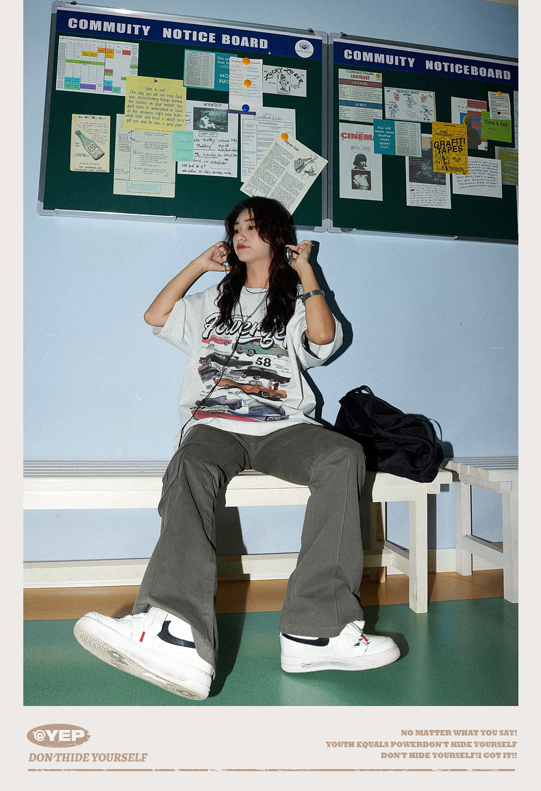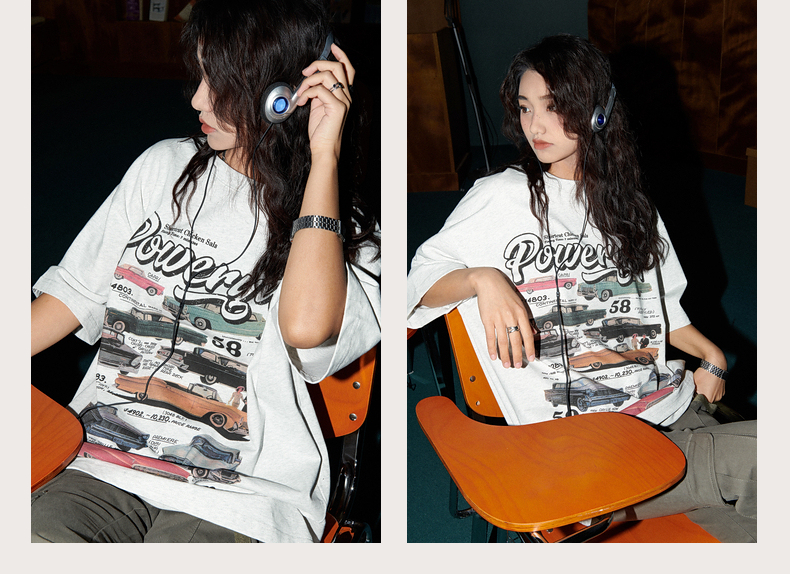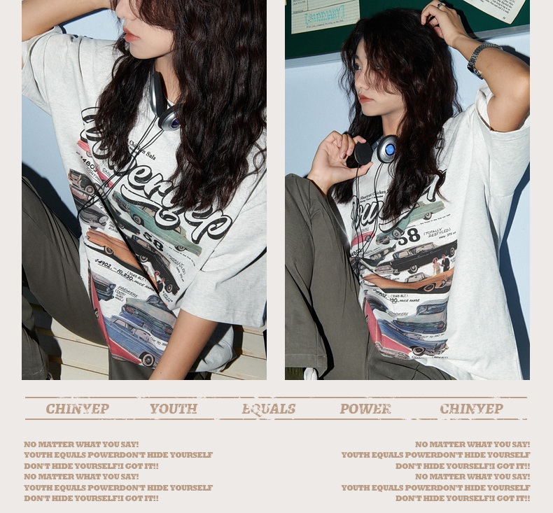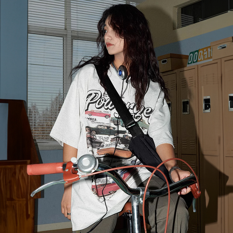 YEP美式復古汽車印花T恤女短袖ins潮設計感小眾夏季純棉半袖上衣