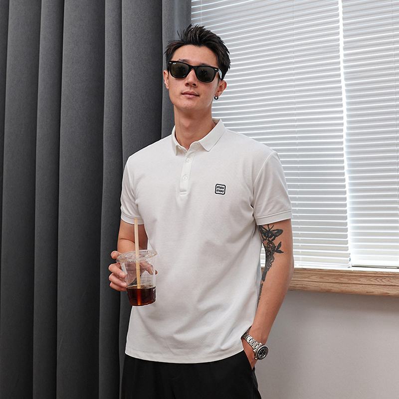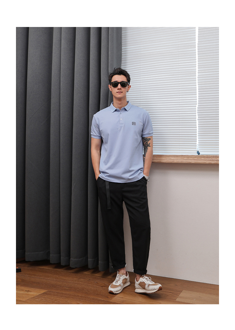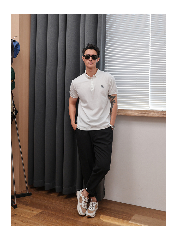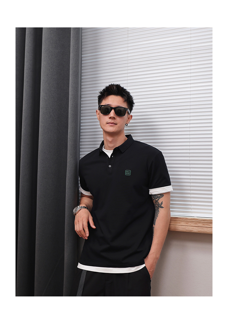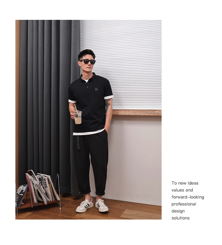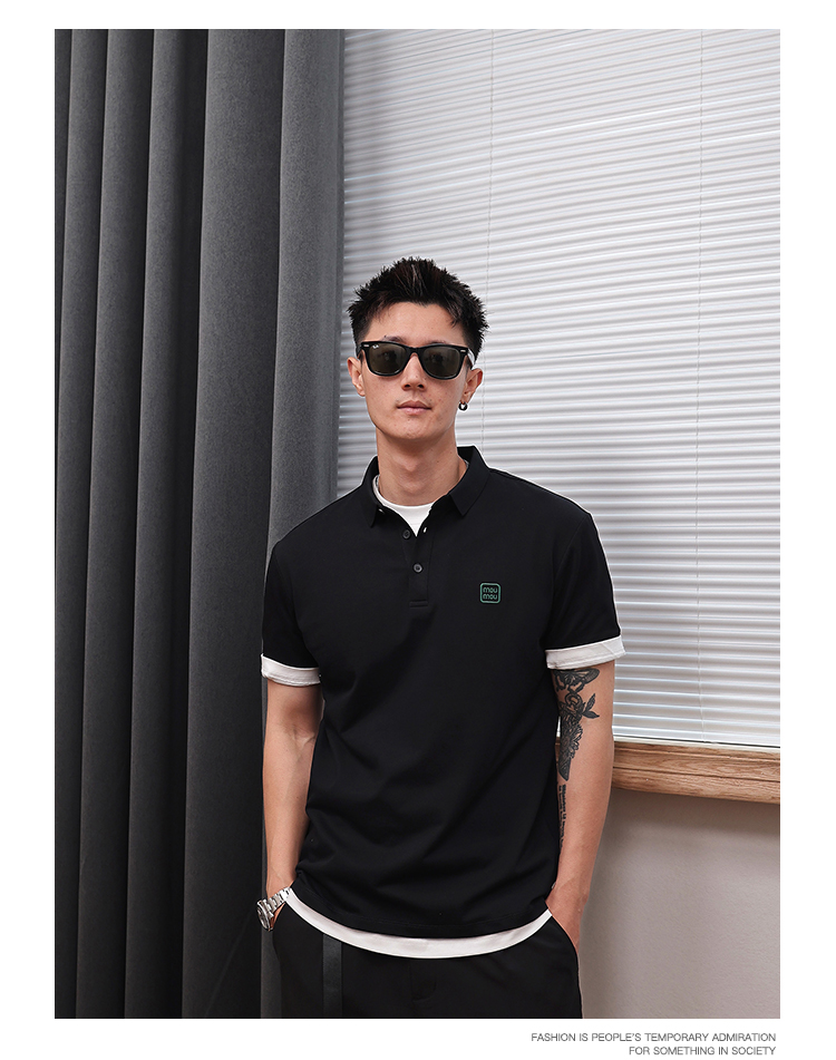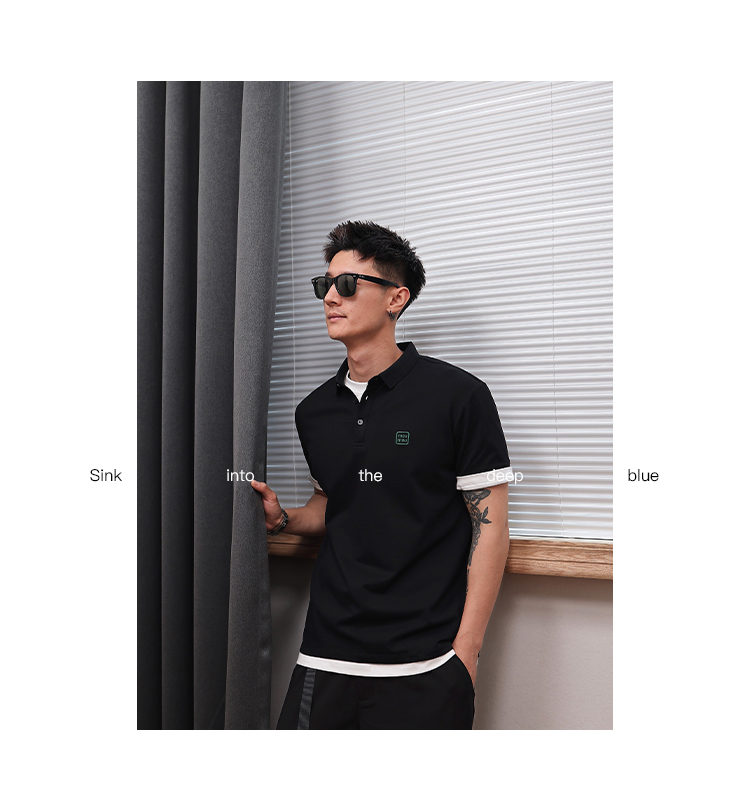 徐太浪高級感商務Polo衫男夏季潮牌美式休閒簡約純色有領T恤上衣