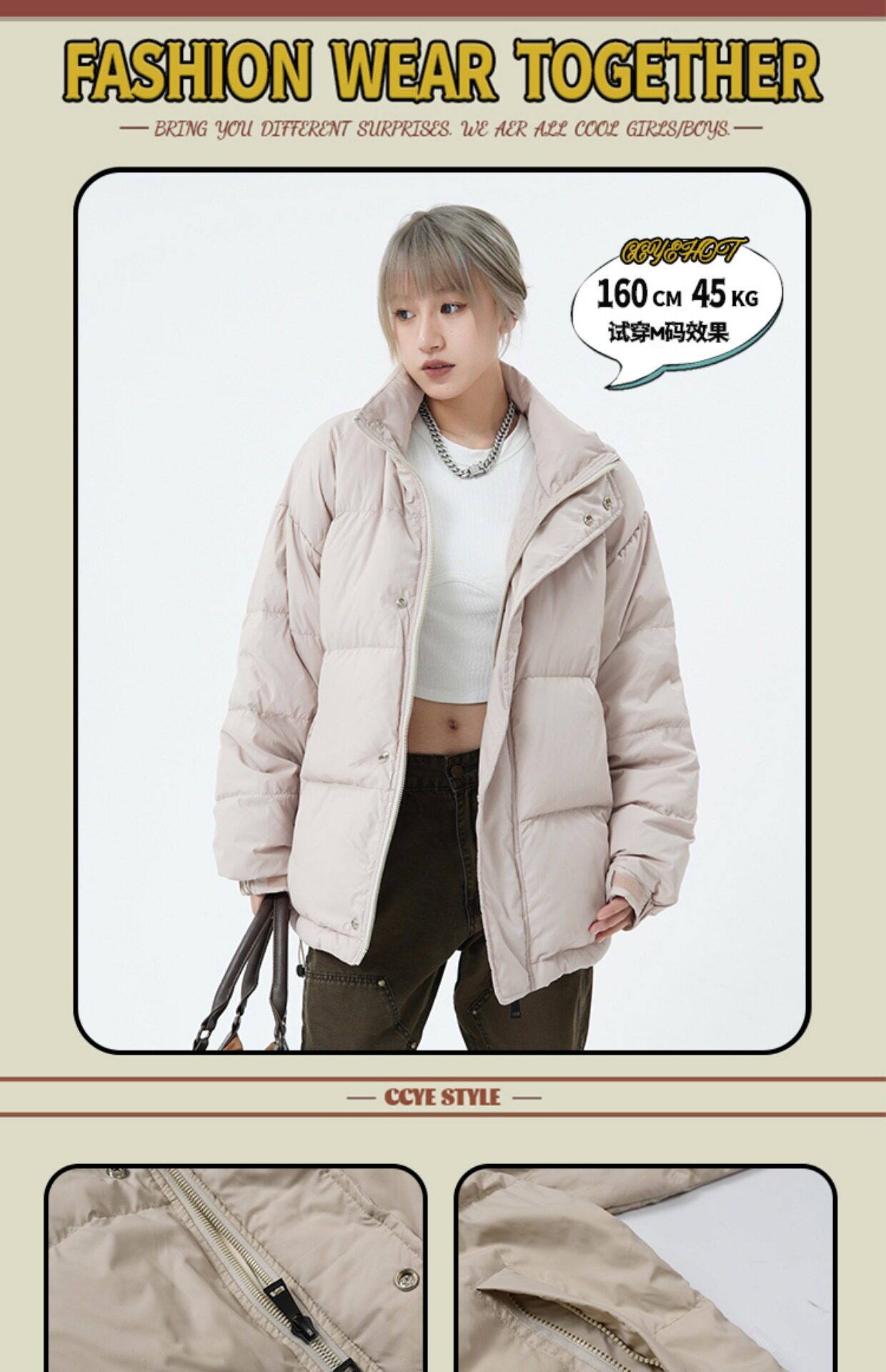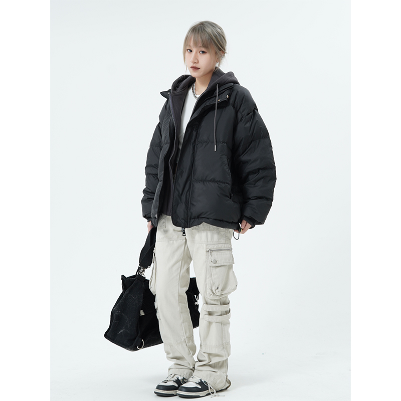 川川也家 原創設計感美式潮ins羽絨服男女寬鬆加厚棉服棉衣外套冬