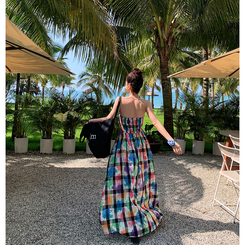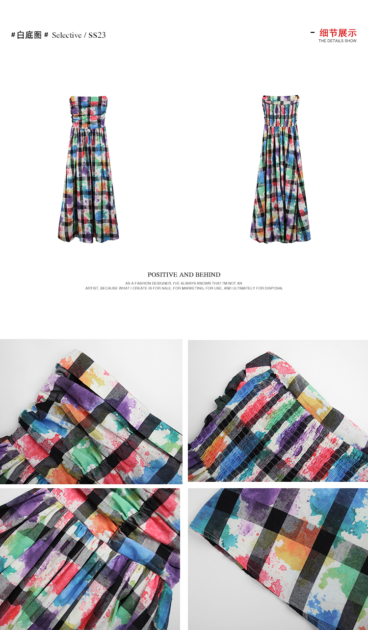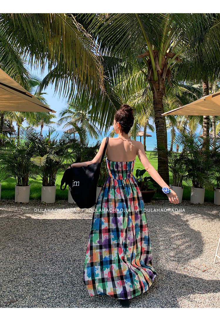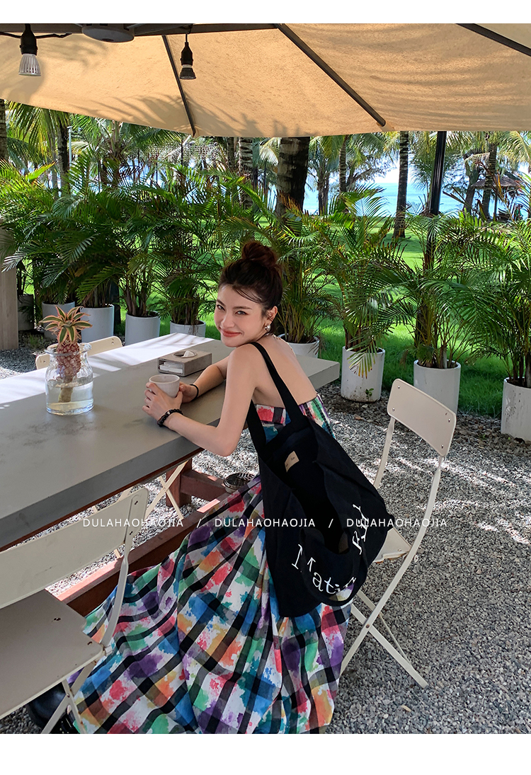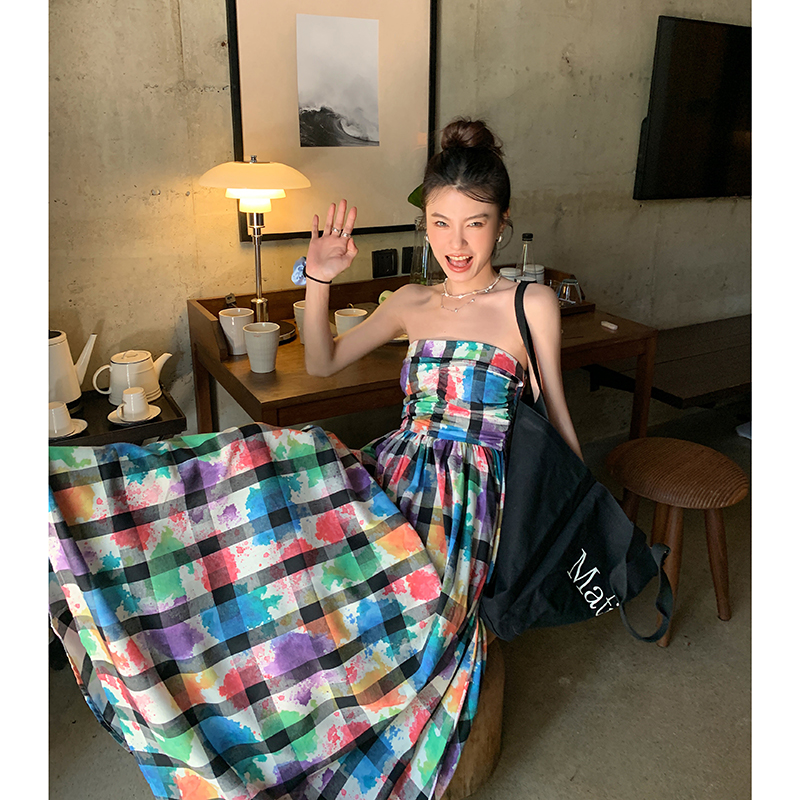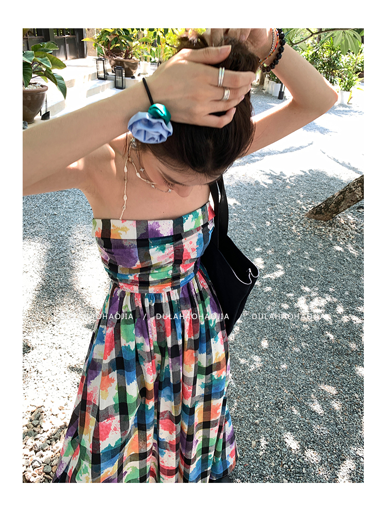 DULA好好家 塗鴉抹胸洋裝女2023年夏季新款法式高腰顯瘦長裙子