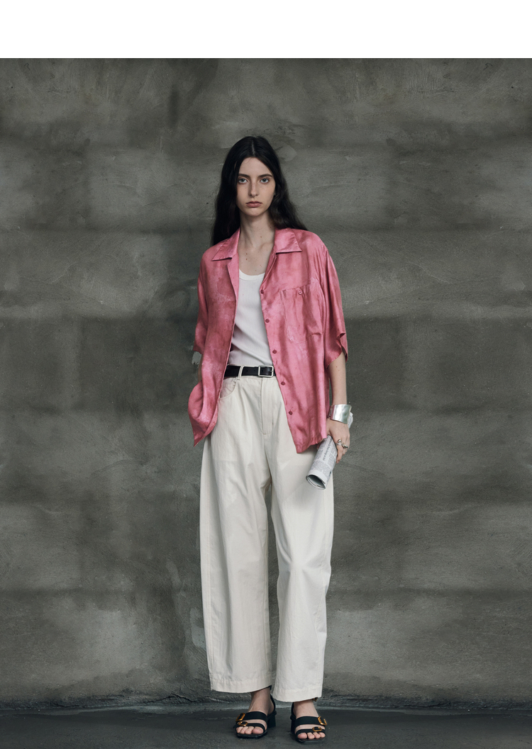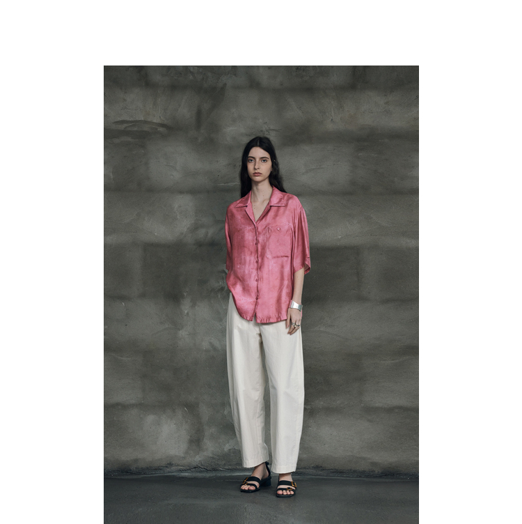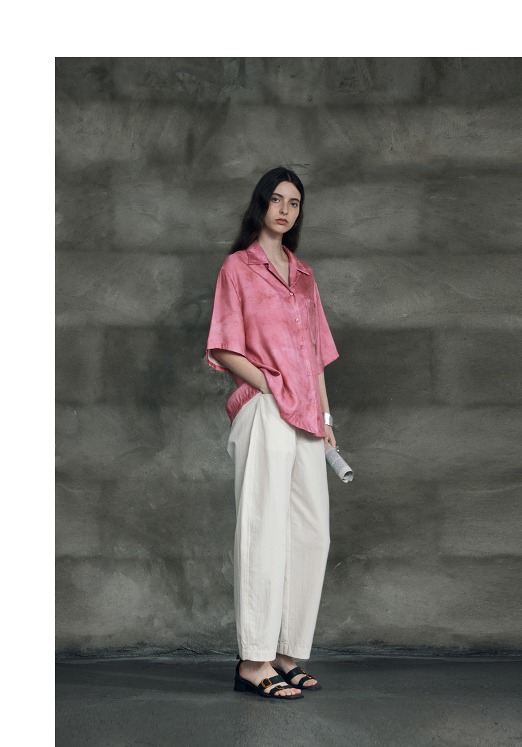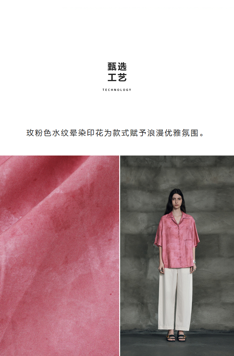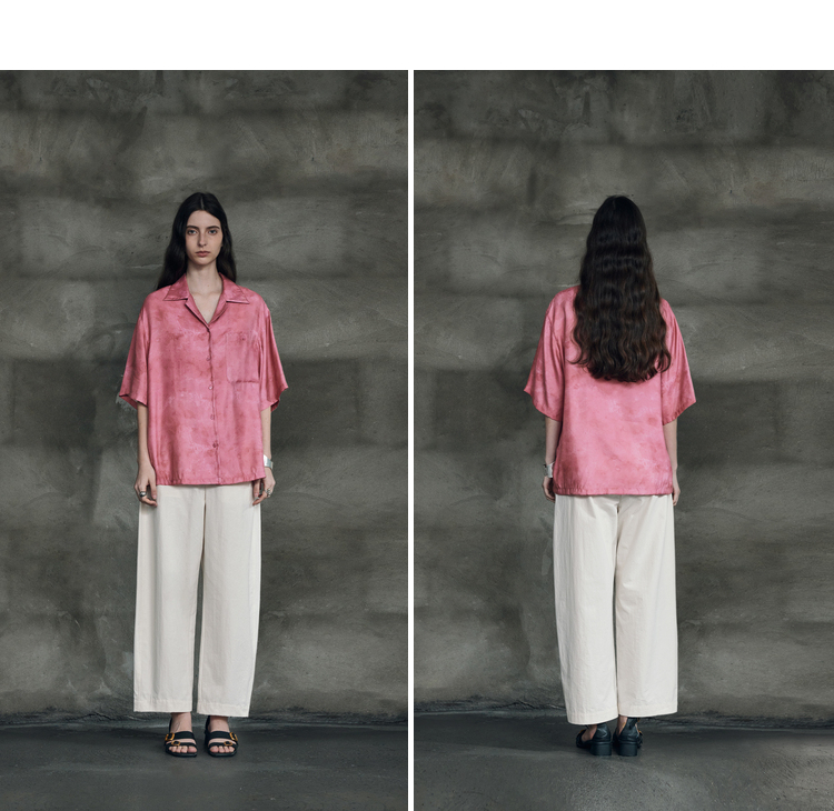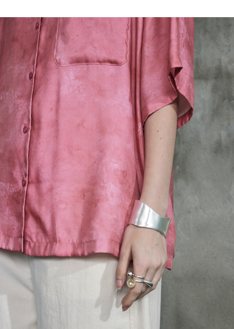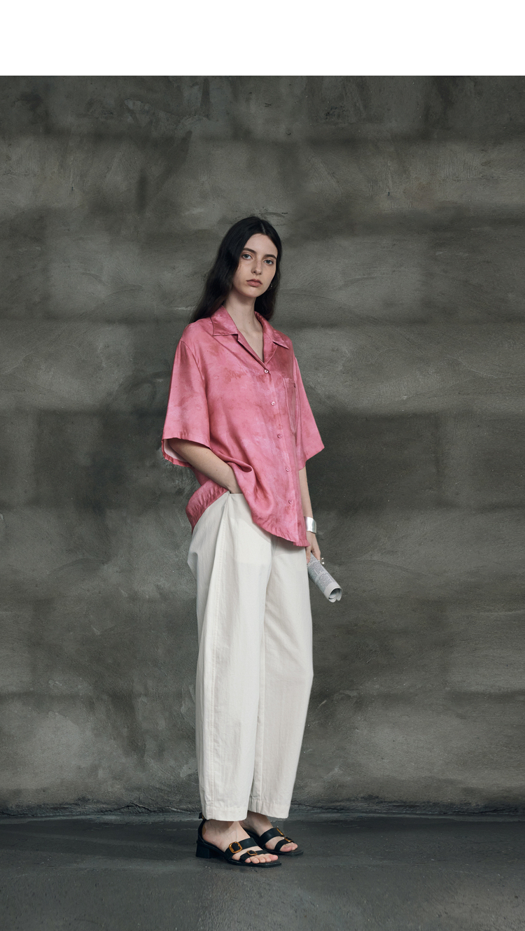 暈染工藝半圓原創設計2023夏季新款古巴領印花上衣寬鬆爽滑柔軟