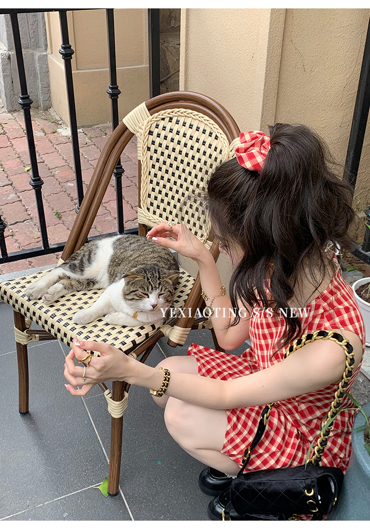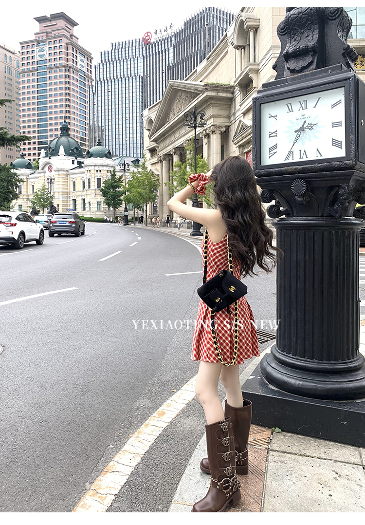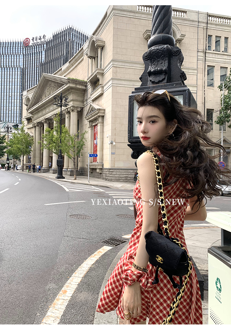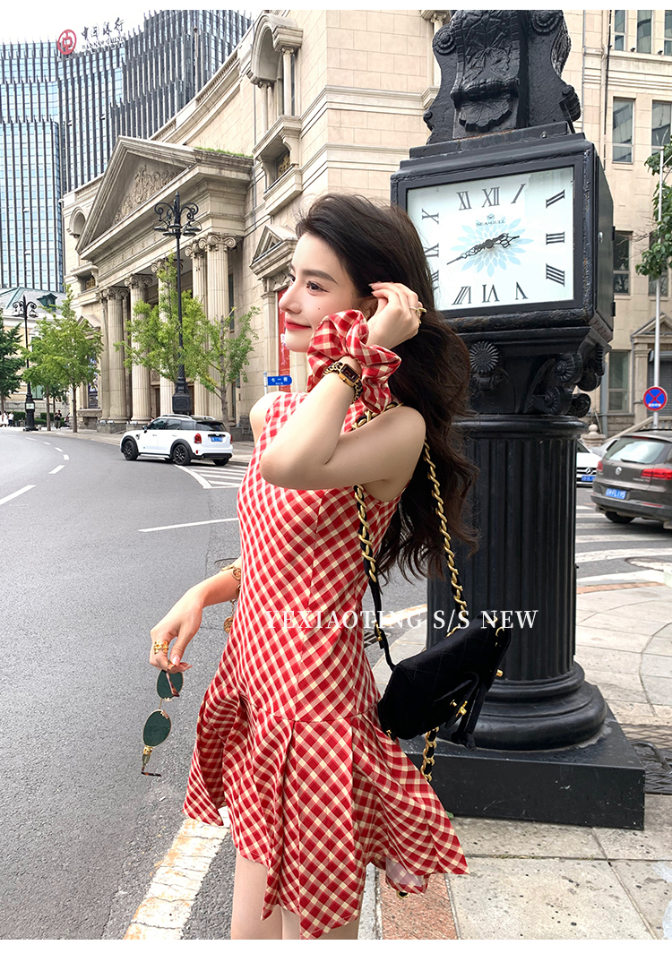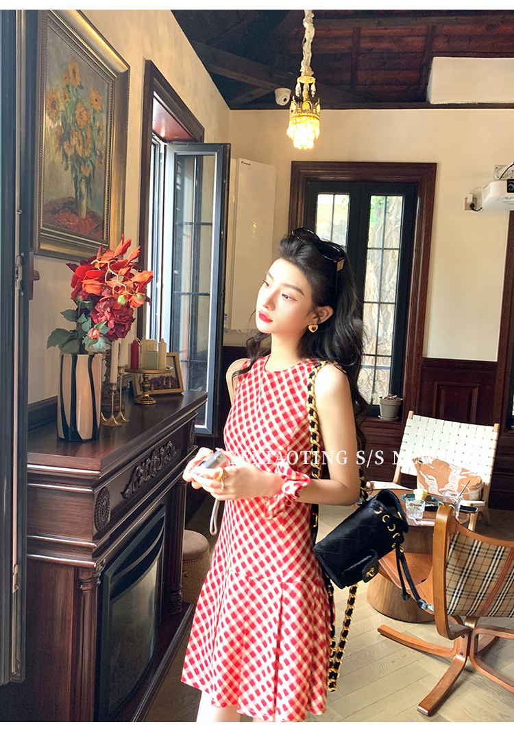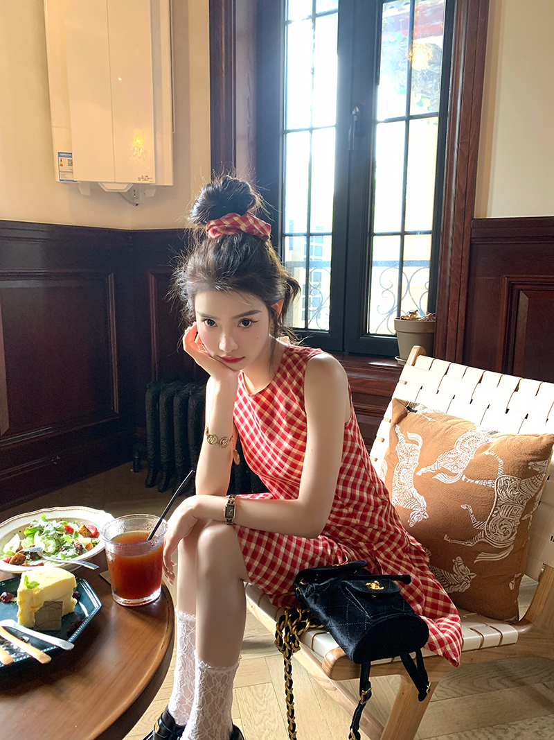 YEXIAOTING葉小婷 聽見玫瑰低語 草莓紅白格紋裙無袖洋裝女夏