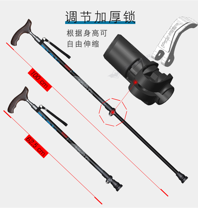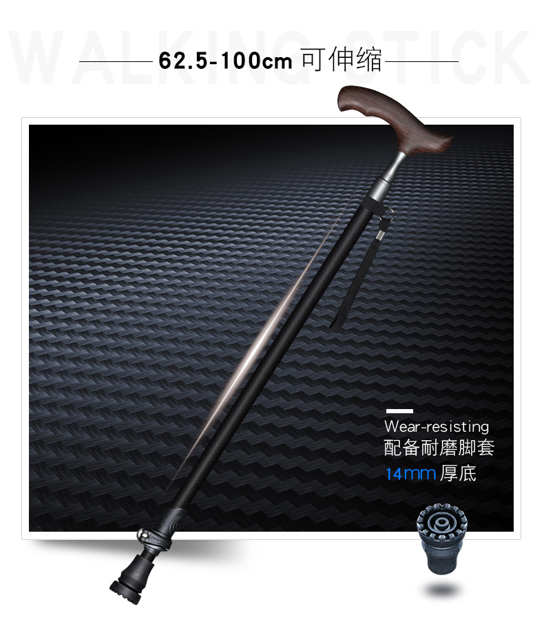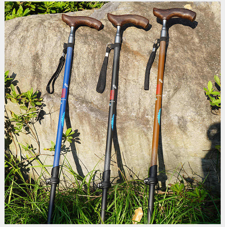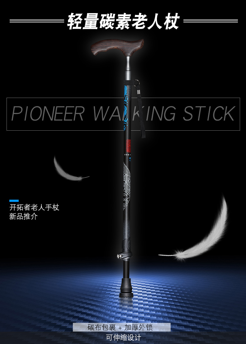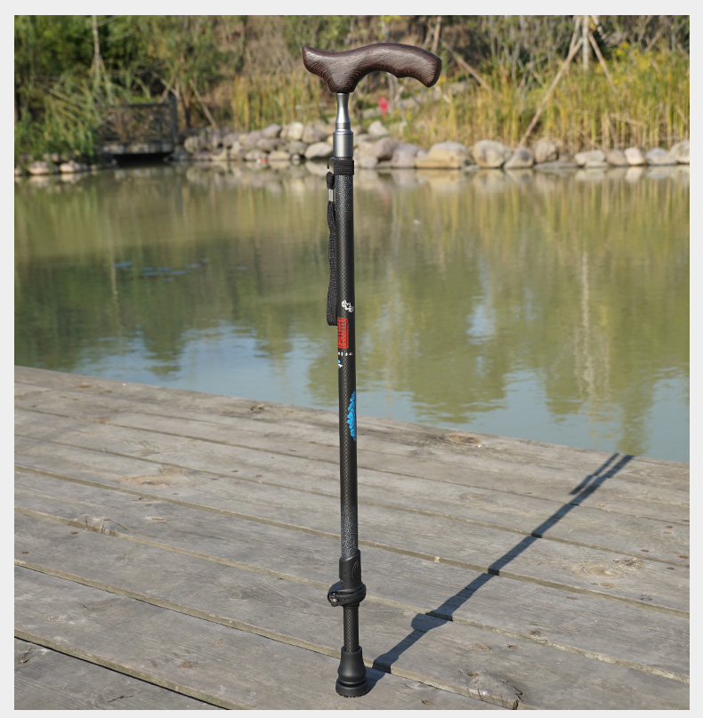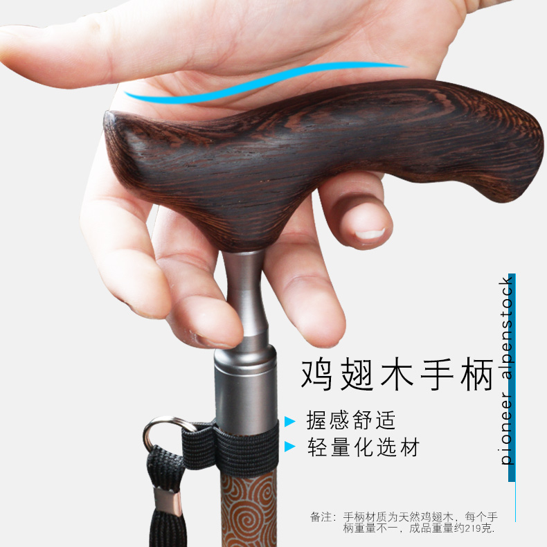 開拓者碳纖維手杖 老年人柺杖實木手柄 輕便碳素高檔柺棍老人防滑