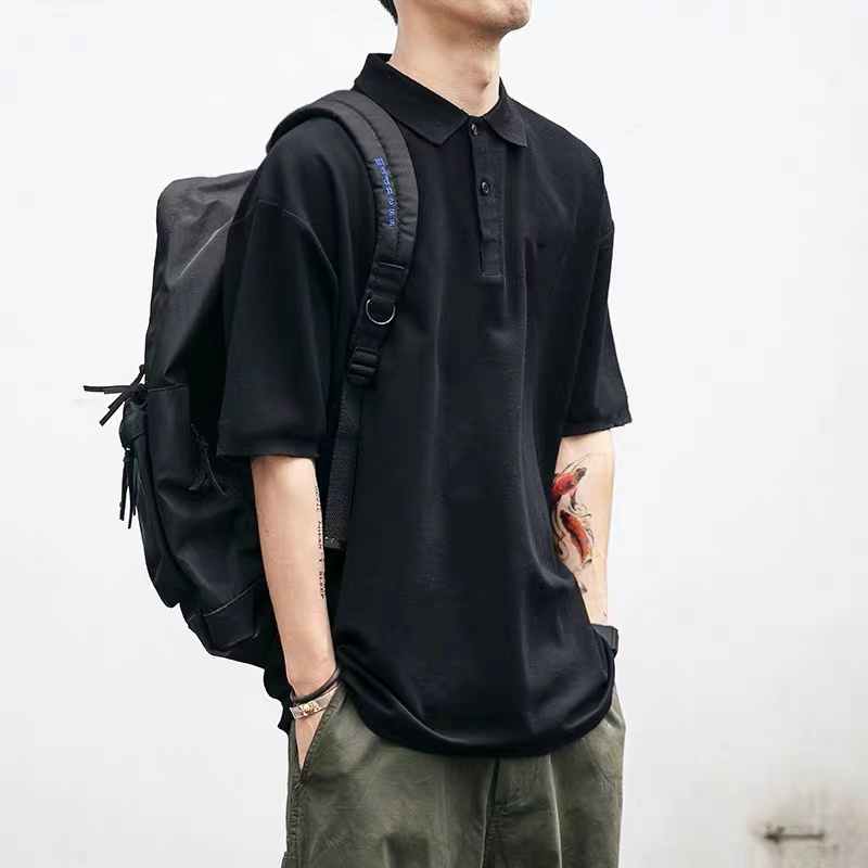 美式工裝夏季polo衫男港風潮牌日系復古翻領上衣休閒寬鬆短袖T恤