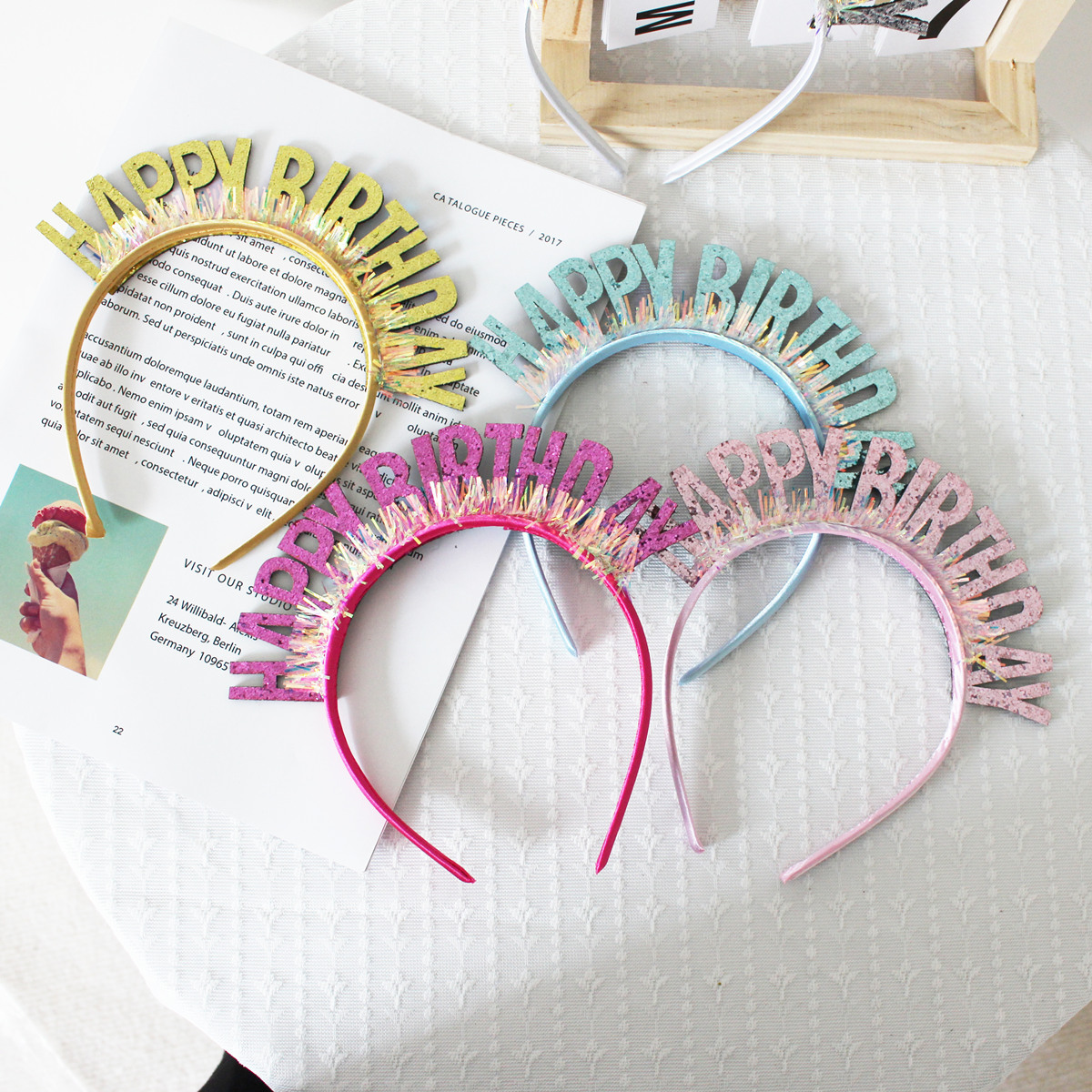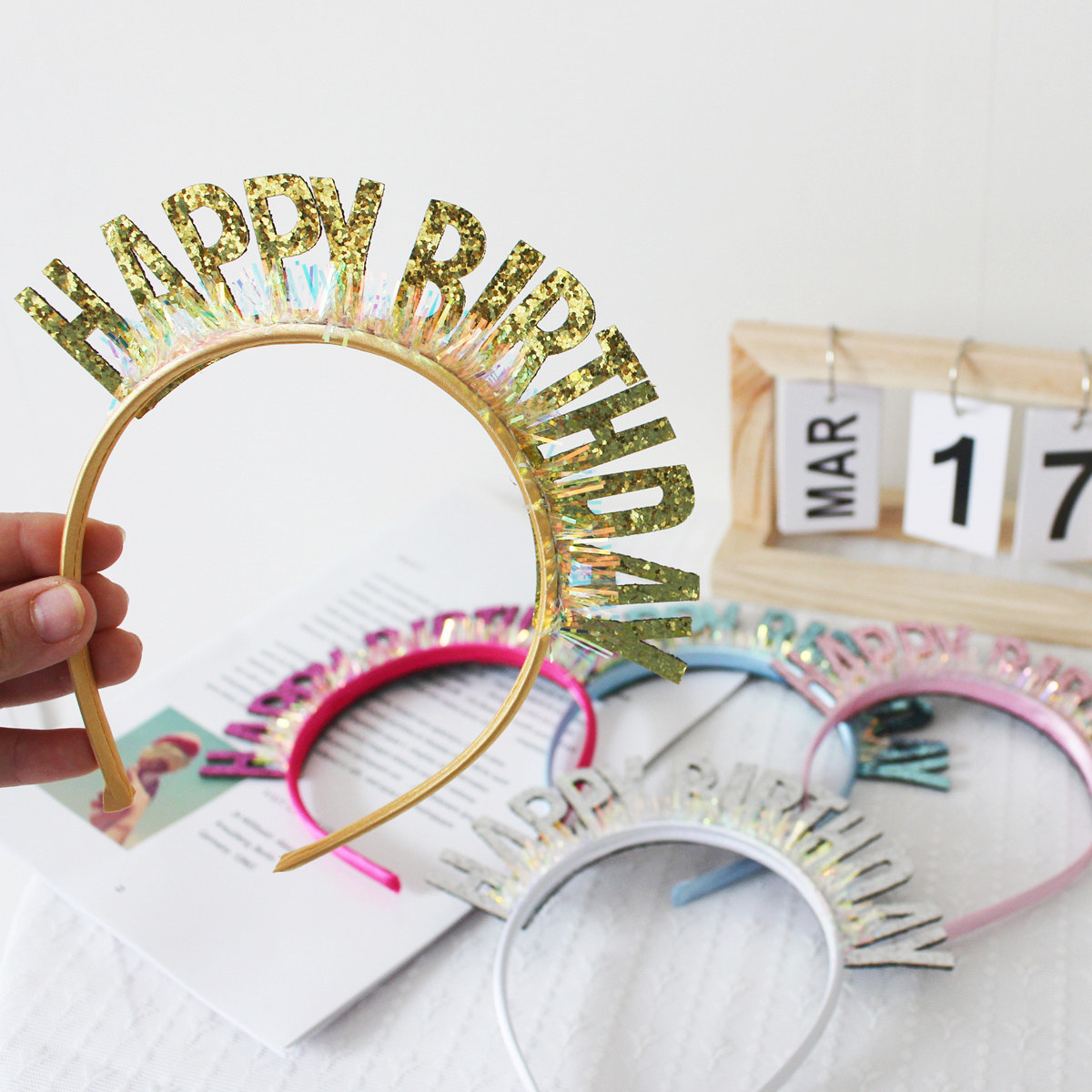 蛋糕装饰生日派对气氛女神成人儿童镭射闪亮生日字母发箍生日帽