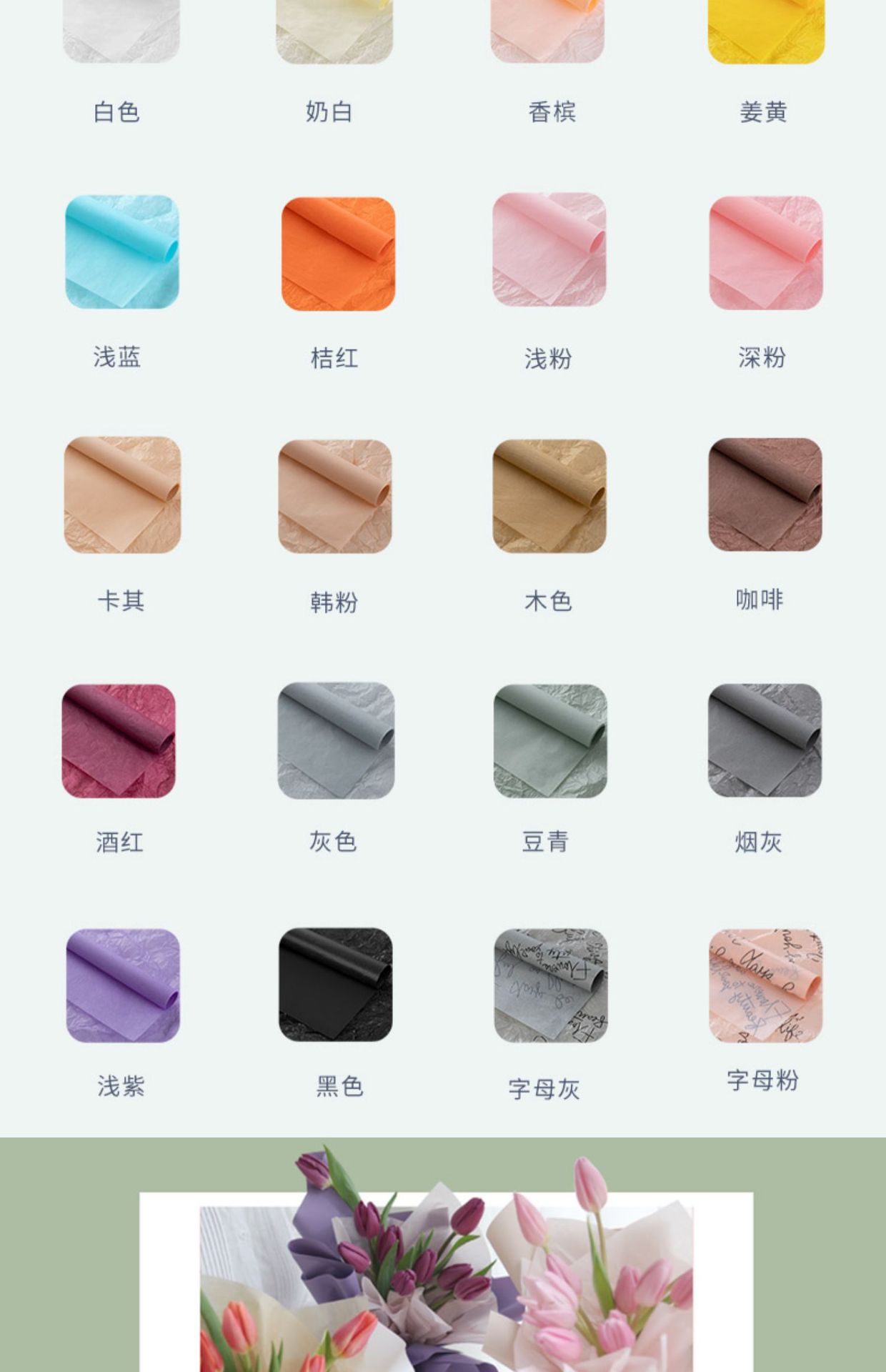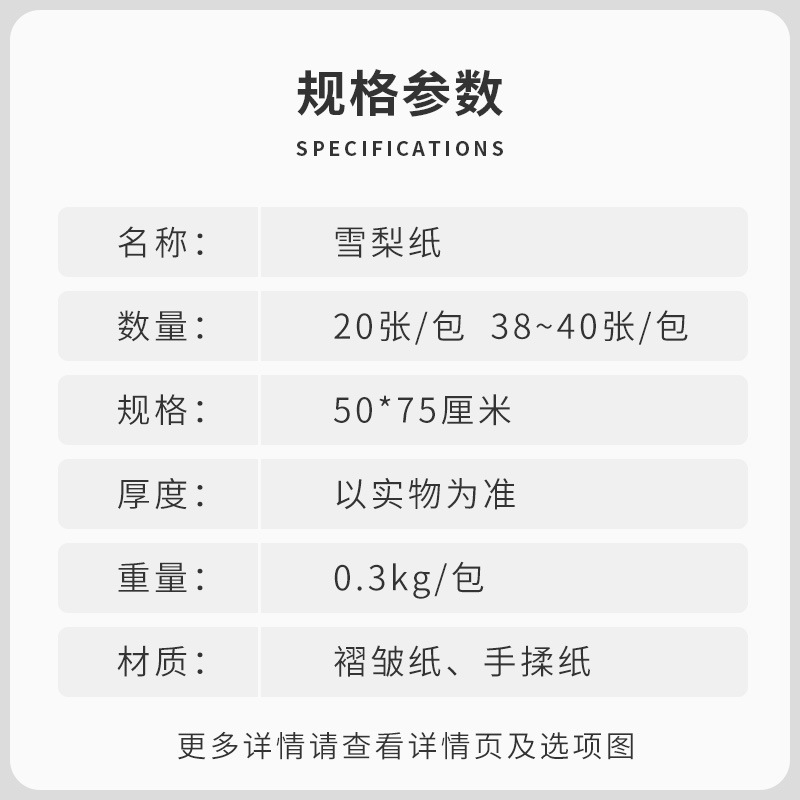 颜色 黑色【40张】50*70cm,灰色【40张】50*70cm,奶白【40张】50*70cm,奶油米【50*70cm】20张/包,樱花粉【50*70cm】20张/包,奶茶棕【50*70cm】20张/包,香槟粉【50*70cm】20张/包,碧水蓝【50*70cm】20张/包,青柠绿【50*70cm】20张/包,樱花粉【50cm*10m/卷】,香槟粉【50cm*10m/卷】,青柠绿【50cm*10m/卷】,碧水蓝【50cm*10m/卷】,风铃紫【50cm*10m/卷】,蜜瓜橙【50cm*10m/卷】,抽取式【白色】25*30cm50张,抽取式【米白】25*30cm50张,抽取式【香槟】25*30cm50张,风铃紫【50*70cm】20张/包,玫瑰金【50*70cm】20张/包,抽取式【白色】50*45cm50张,抽取式【粉色】50*45cm50张,天空蓝【50*70cm】20张/包,奶油粉【50*70cm】20张/包,英文【灰色20张】50*75cm50张,【白底金字20张】加厚款50*70,【白底黑字20张】加厚款50*70,英文【白色20张】50*75cm50张,英文【粉色20张】50*75cm50张,【白底灰字20张】加厚款50*70,英文【黑色20张】50*75cm50张,描绘树-白色圣诞雪梨纸,淡粉【40张】50*70cm,白色【40张】50*70cm,白色【20张】50*70cm,深粉【40张】50*70cm,咖啡【40张】50*70cm,晨雾灰【40张】50*70cm,香槟【40张】50*70cmm,奶茶色【40张】50*70cmm,豆绿【40张】50*70cm,木色【40张】50*70cmcm,酒红【40张】50*70cmm,浅粉【40张】50*70cmcm,淡蓝【40张】50*70cm