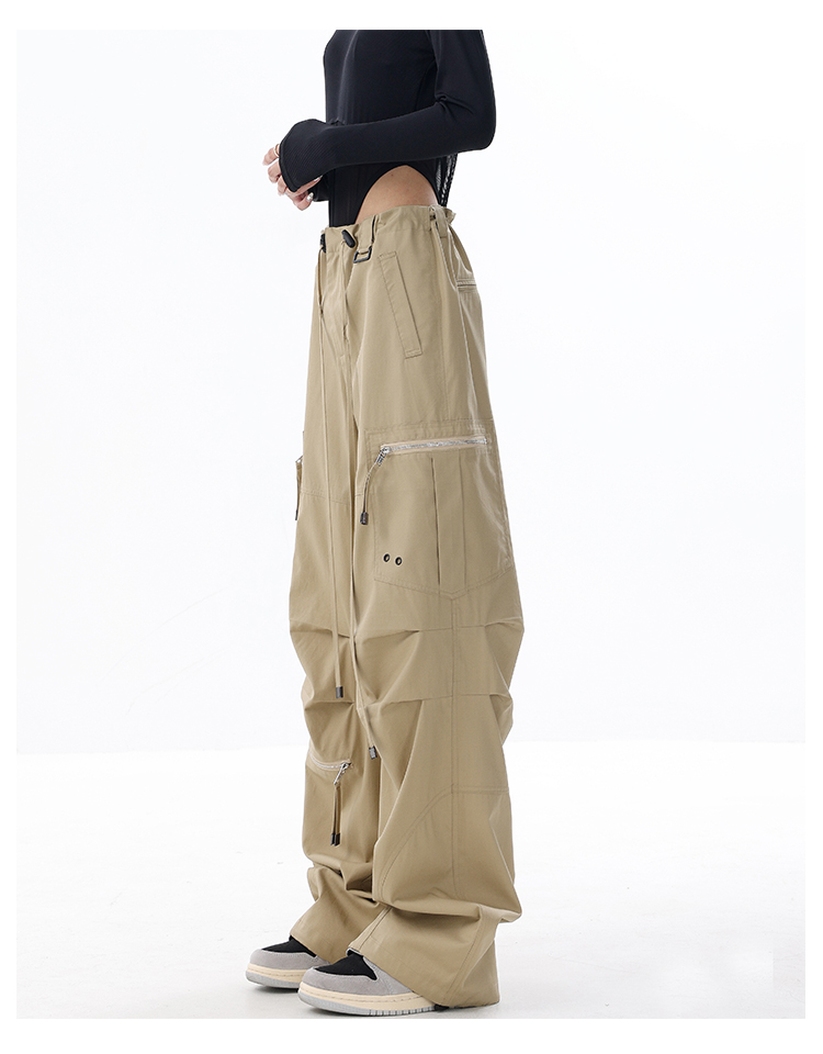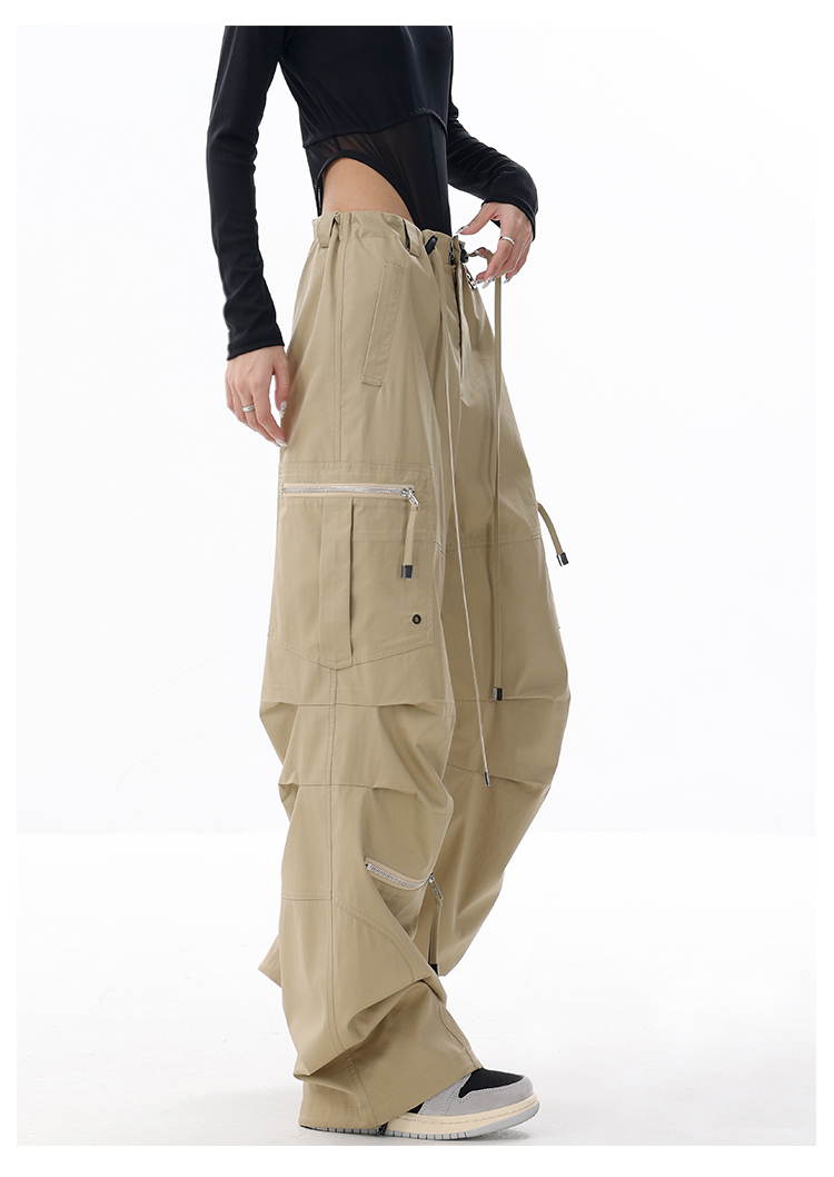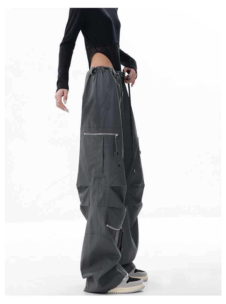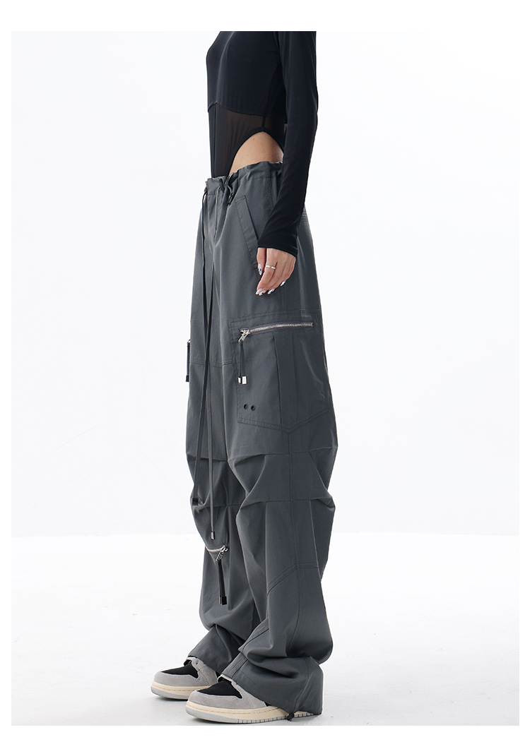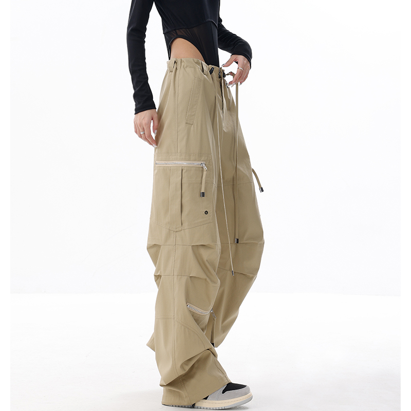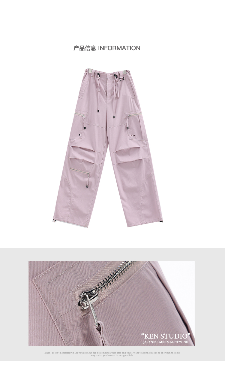 KEN STUDIO2023早秋新款闊腿工裝褲女大口袋設計感寬鬆束口褲褲子