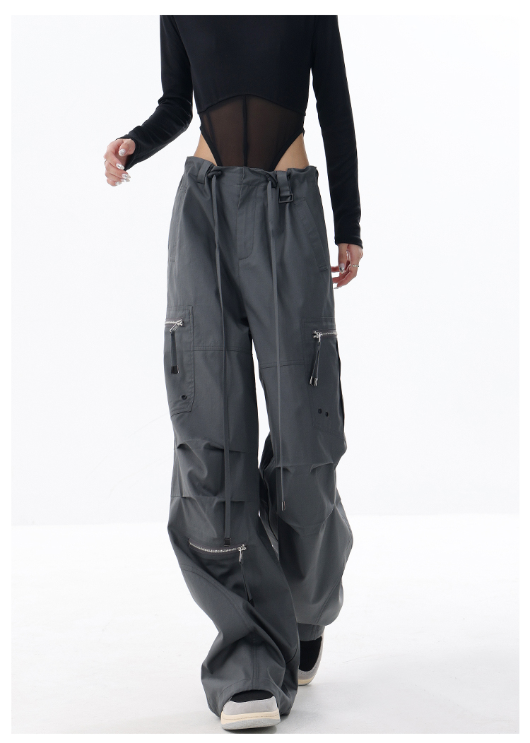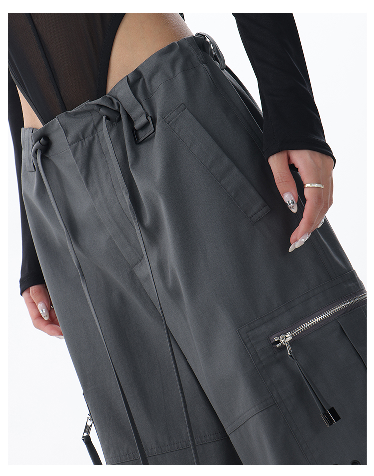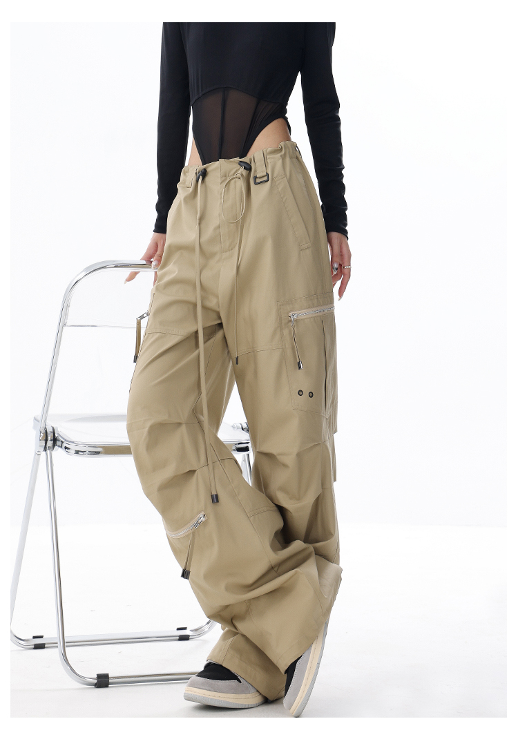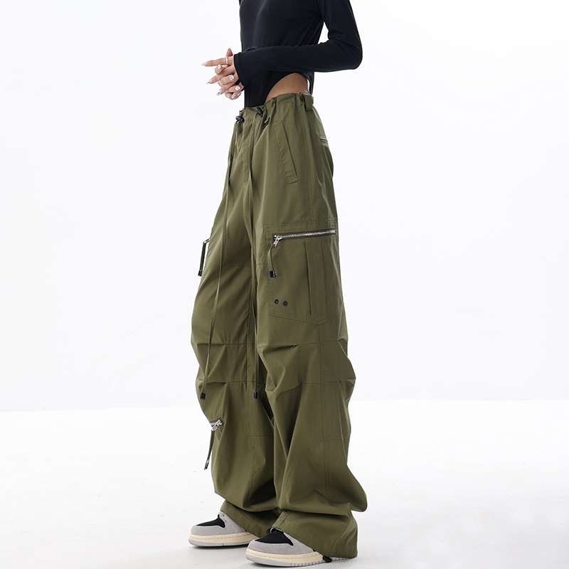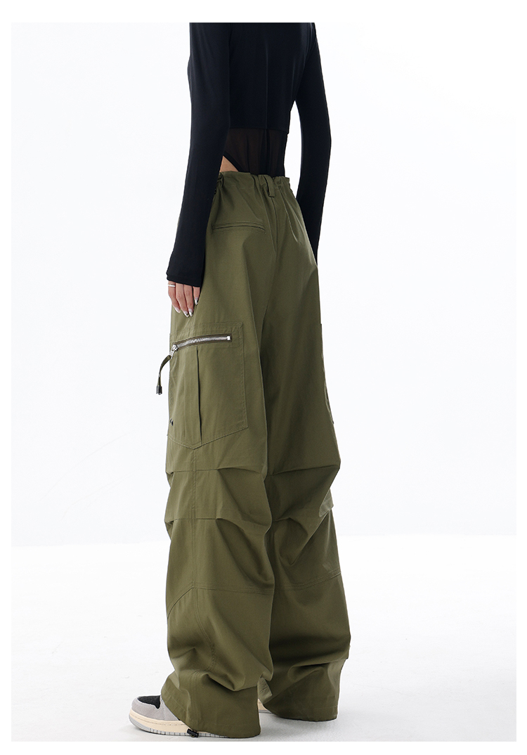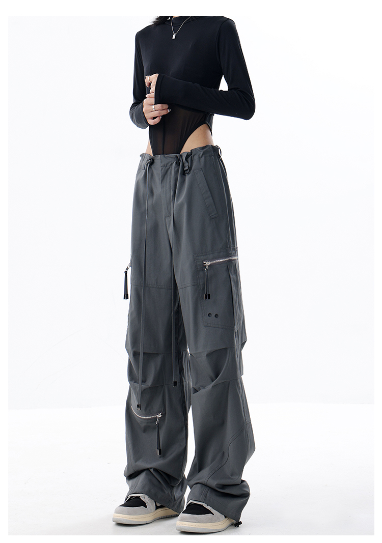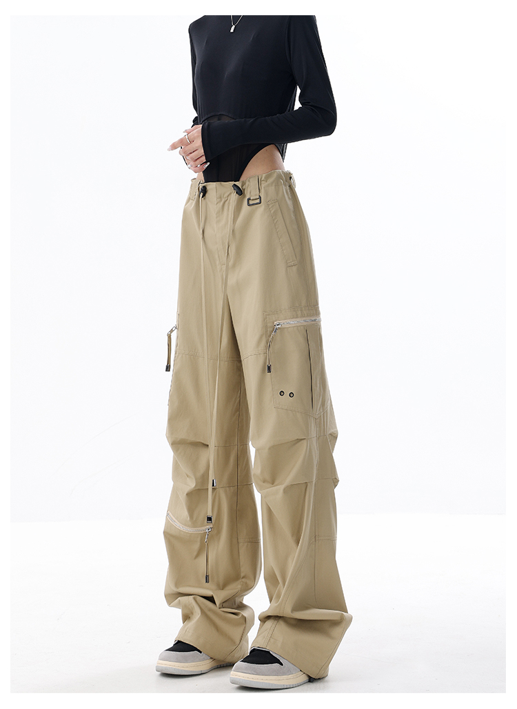 KEN STUDIO2023早秋新款闊腿工裝褲女大口袋設計感寬鬆束口褲褲子