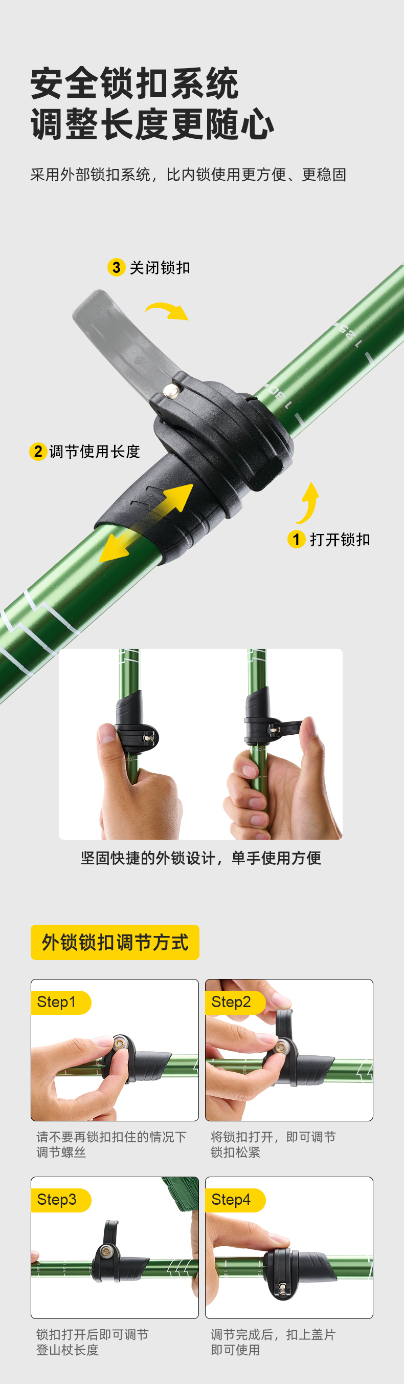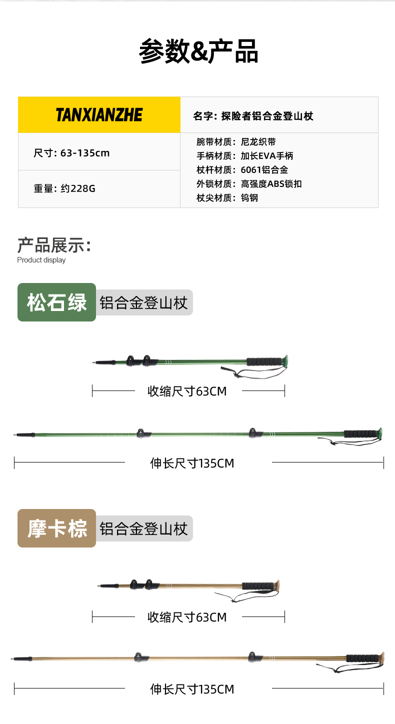 顏色分類 【購前必看】如何選擇適合自己的登山杖高度 【男女通用】摩卡棕(63-135cm) 【男女通用】鬆石綠(63-135cm) 【男女通用】漆鏡黑【彈簧減震80%】 【男女通用】霞光紅【彈簧減震80%】 【男女通用】炫逸藍【彈簧減震80%】 【兒童款】慄棕色(53-115cm) 【兒童款】鬆綠色(53-115cm) 【雙杖套餐】摩卡棕【直柄】 【雙杖套餐】鬆石綠【直柄】 【雙杖套餐】炫逸藍【T型手柄】 【雙杖套餐】漆鏡黑【T型手柄】 【雙杖套餐】霞光紅【T型手柄】