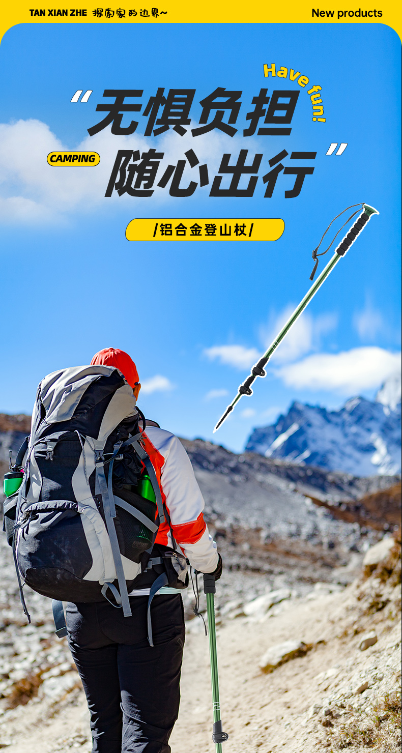 探險者登山杖手杖戶外兒童伸縮爬山杖鋁合金多功能柺棍超輕柺杖