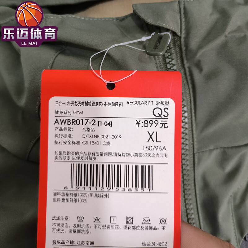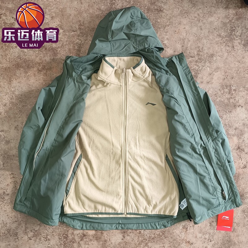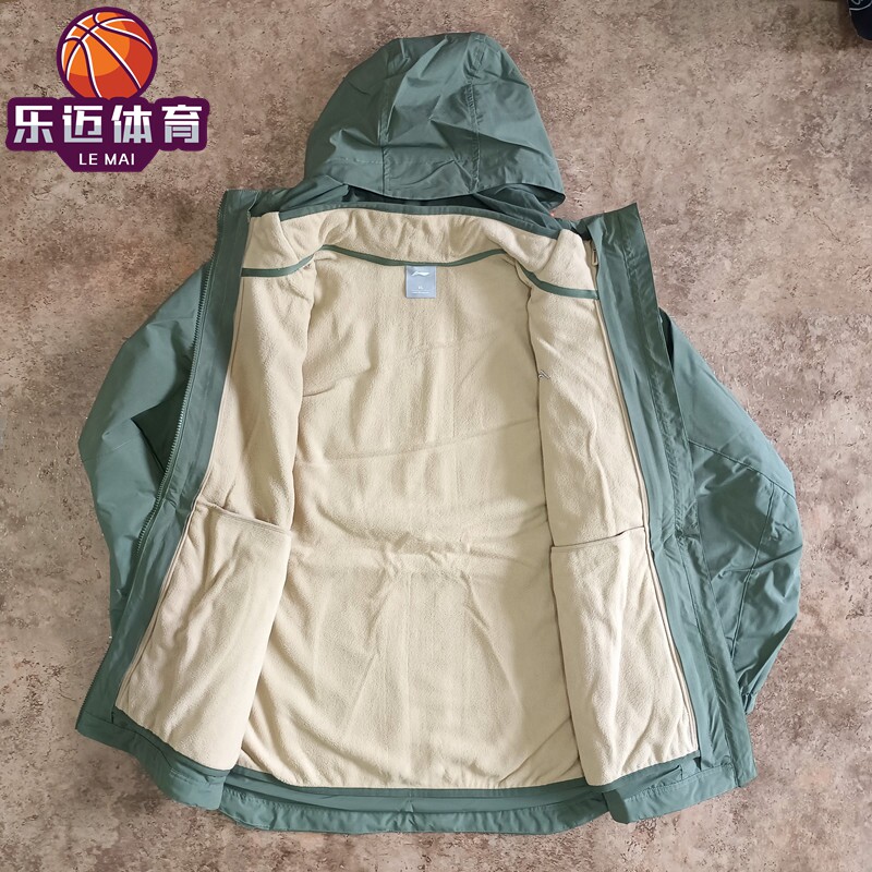 李寧秋冬三合一衝鋒衣男保暖搖粒絨防風外套AWBR017