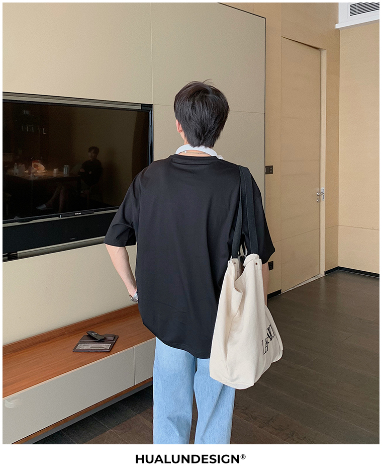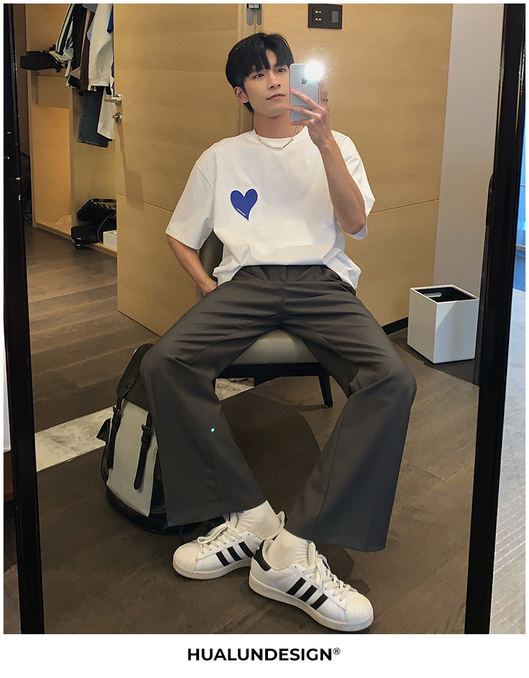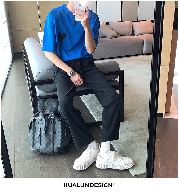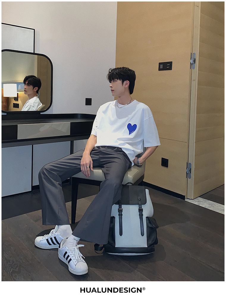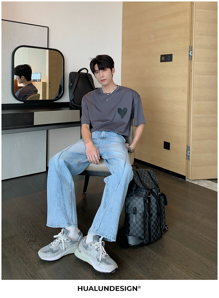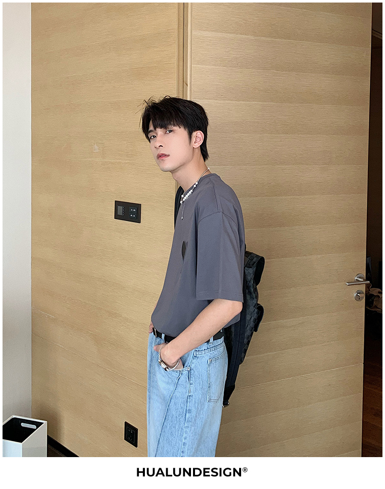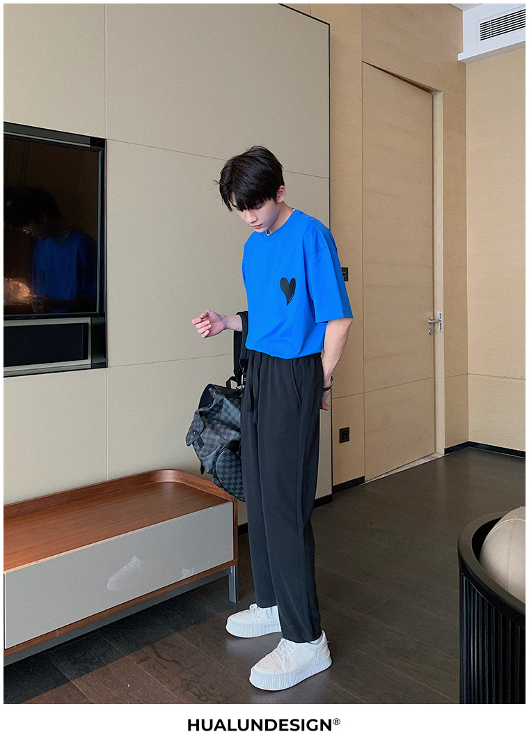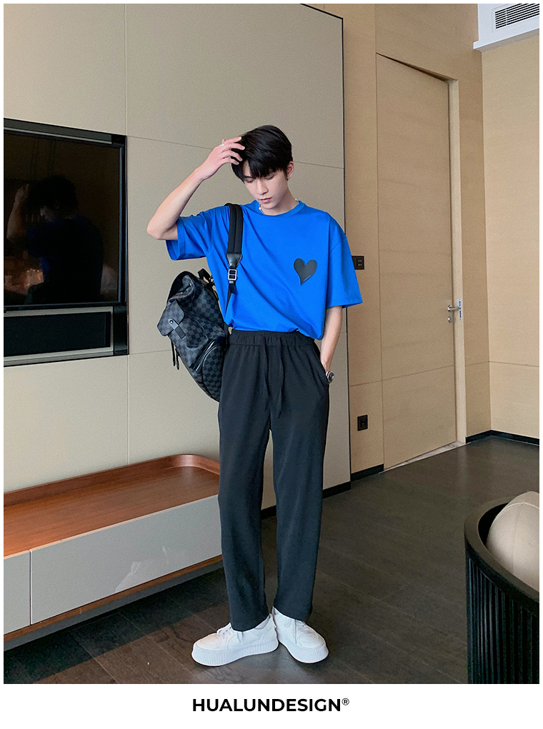 Hualun夏季愛心情侶T恤男韓版寬鬆圓領短袖T恤日系百搭潮ins上衣