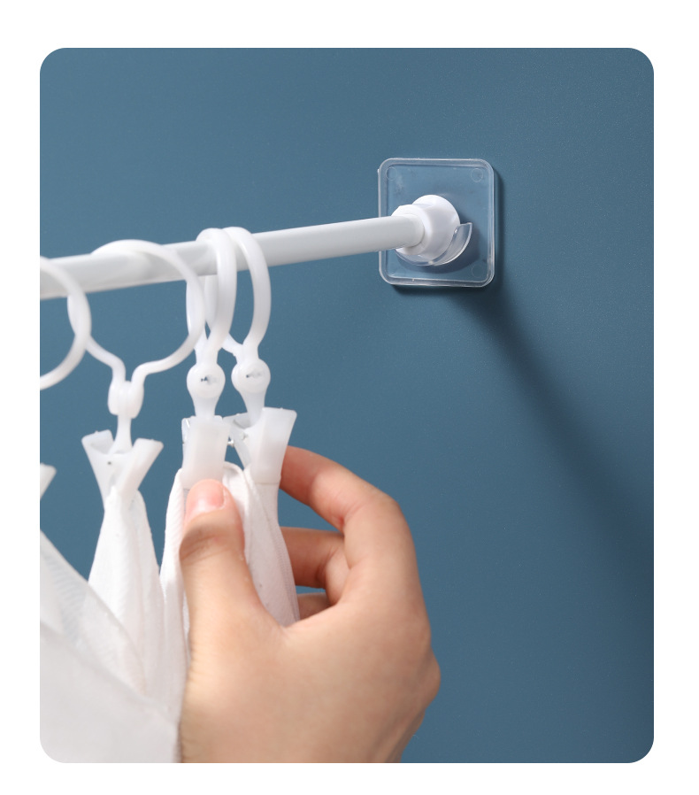 4520.免打孔强力杆托 衣柜挂杆支撑架伸缩杆透明固定器浴帘杆架