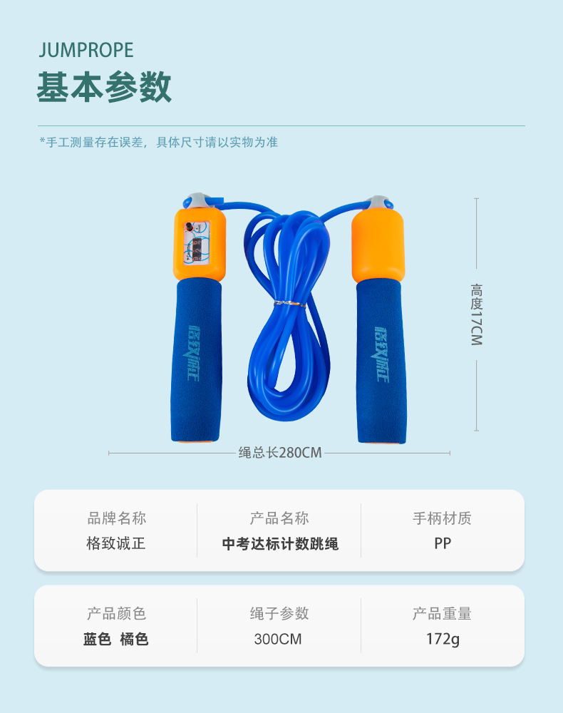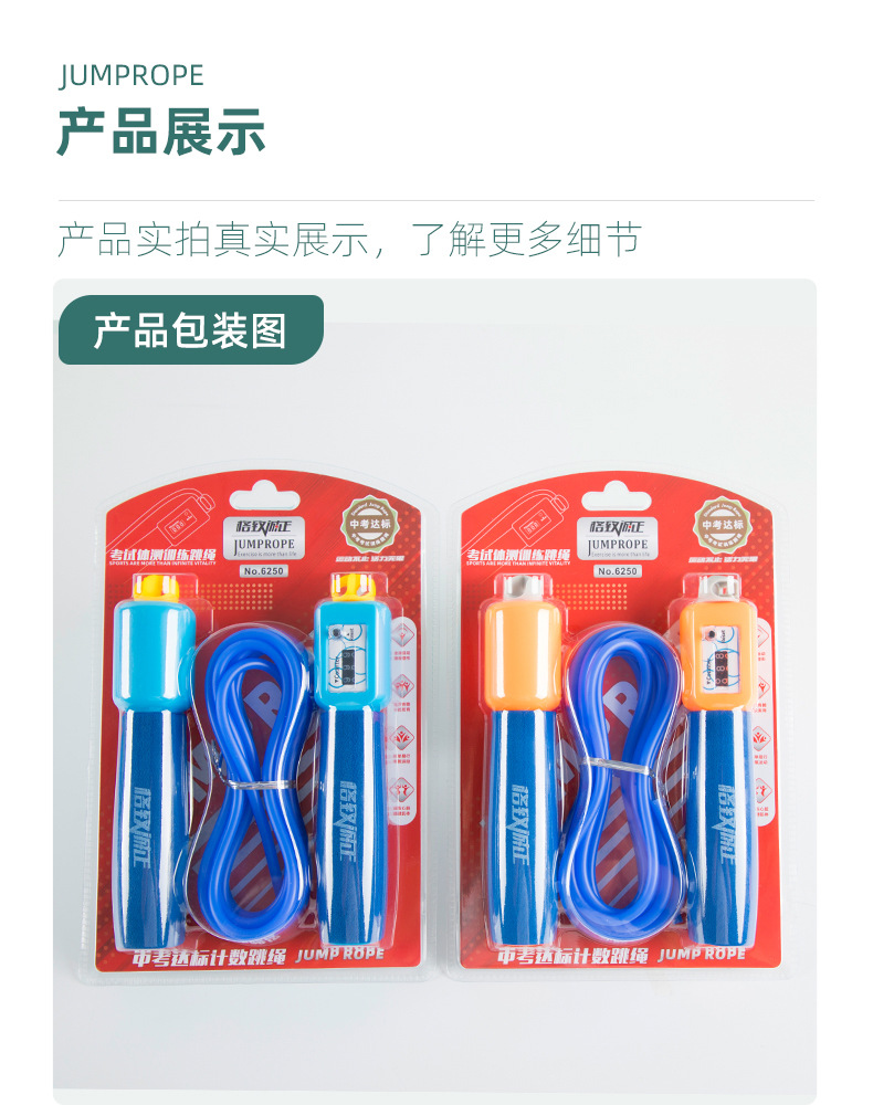 6250中考计数跳绳学生体育考试训练跳绳哑光磨砂绳海绵手柄跳绳