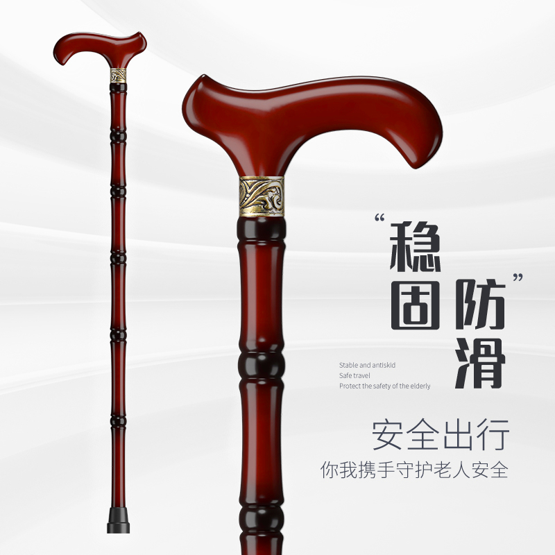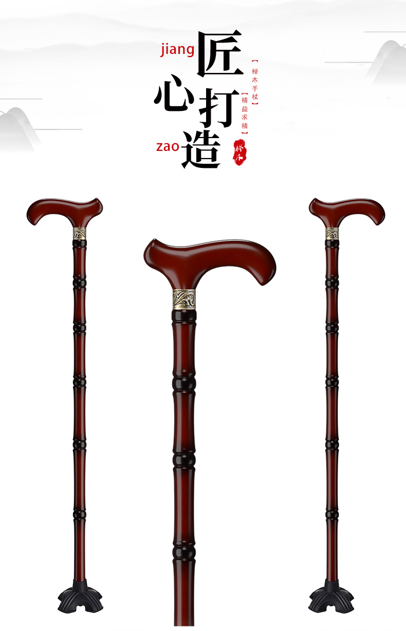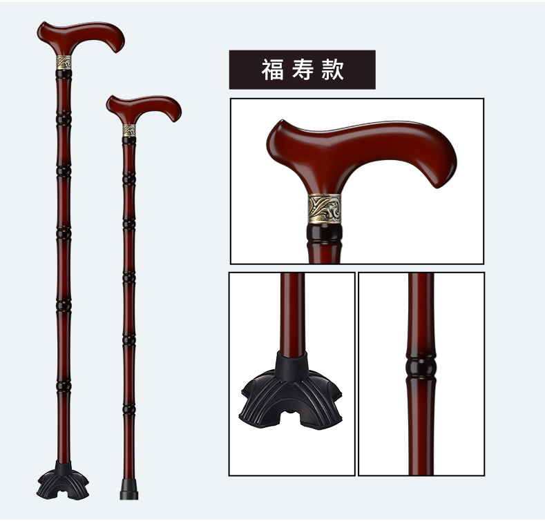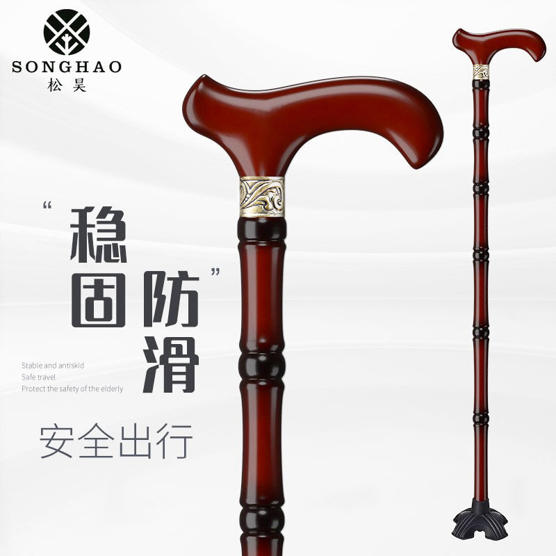 鬆昊老人柺杖實木柺棍四腳防滑木製老年人扶手杖木質捌杖輕便拐扙