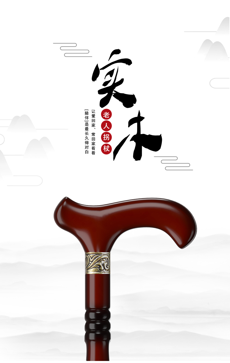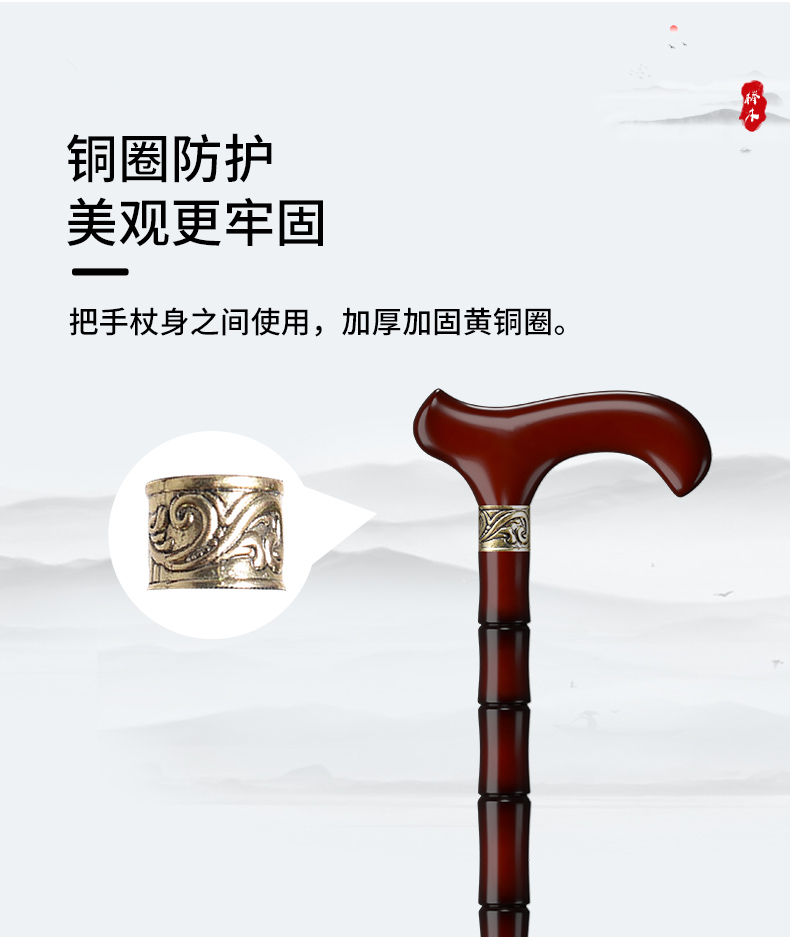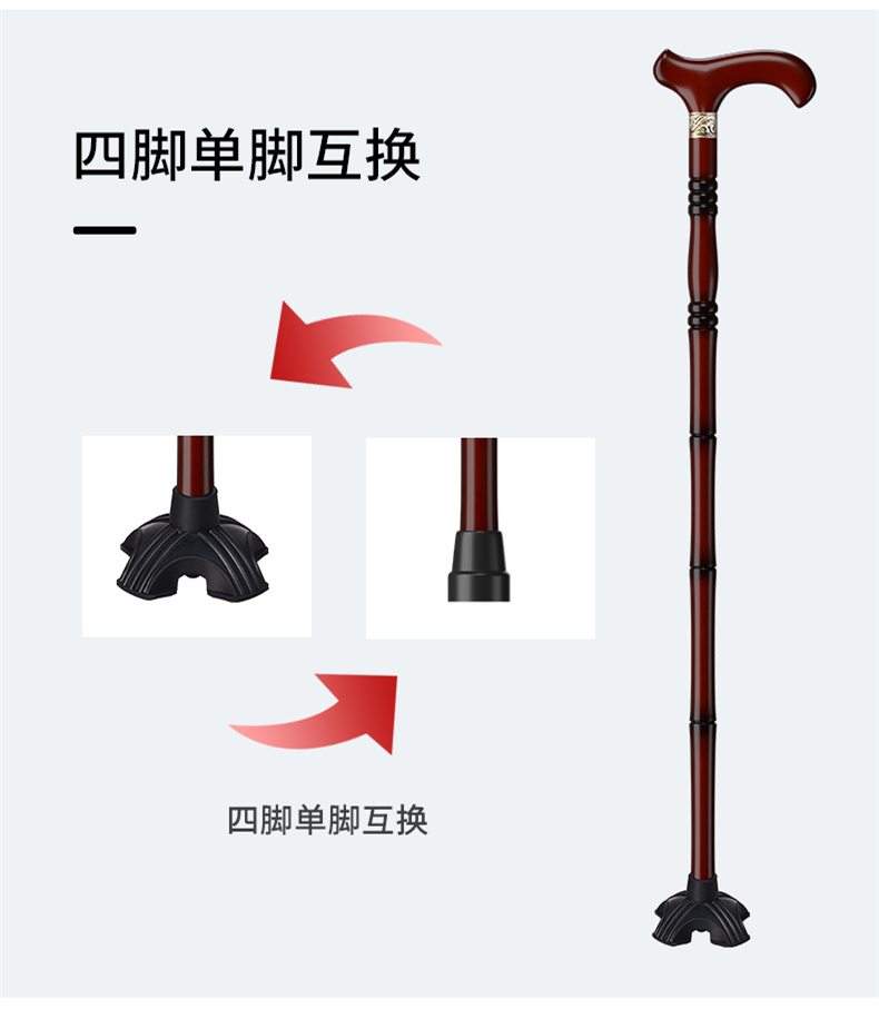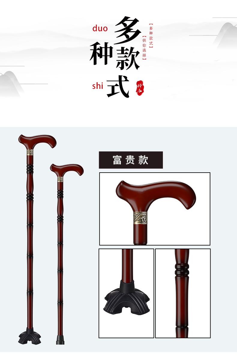 鬆昊老人柺杖實木柺棍四腳防滑木製老年人扶手杖木質捌杖輕便拐扙