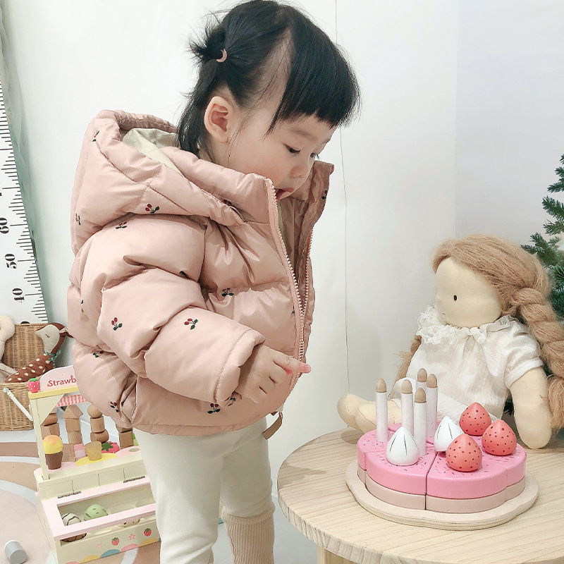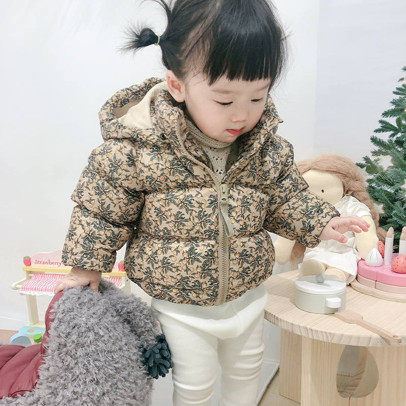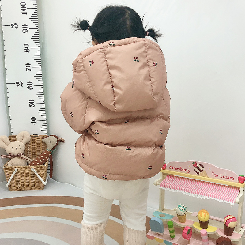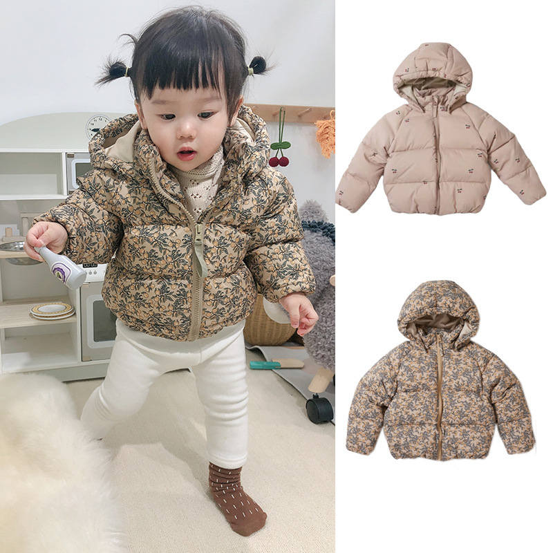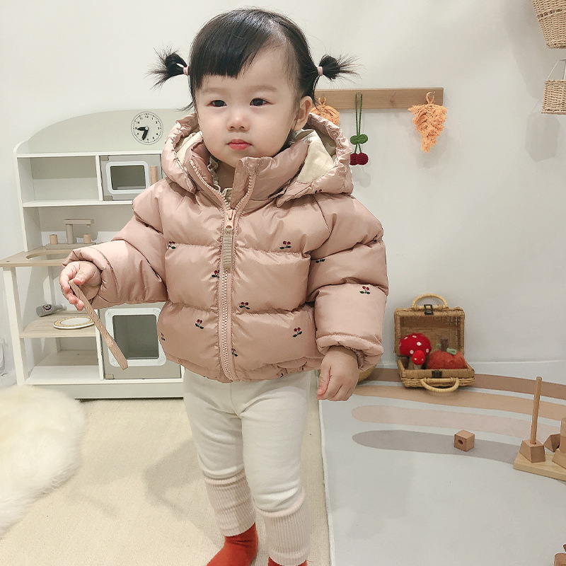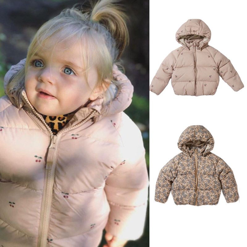 现货卡通儿童棉服带帽子konges女童外套秋冬保暖婴儿加厚羽绒服棉