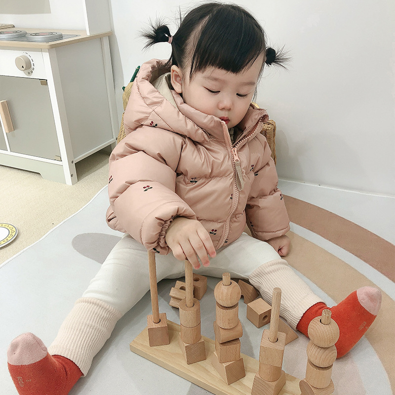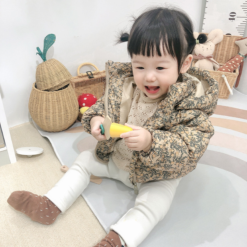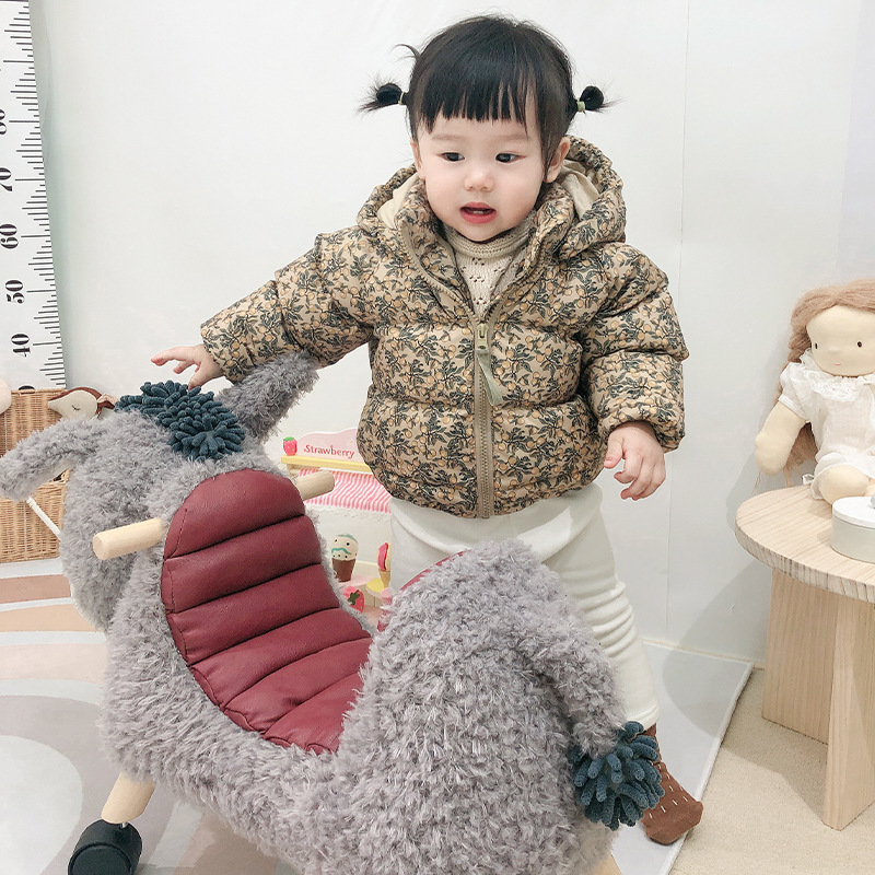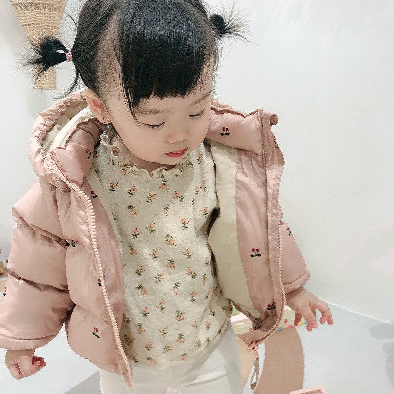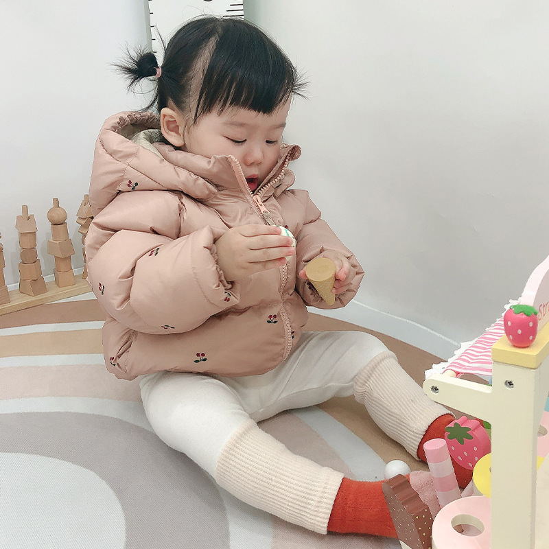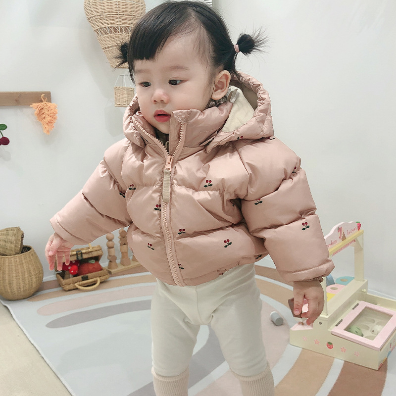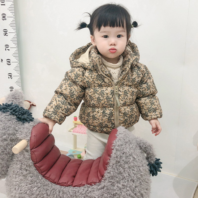 现货卡通儿童棉服带帽子konges女童外套秋冬保暖婴儿加厚羽绒服棉