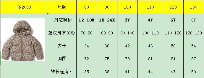 适合身高 6Y(120码),12-18M(80码),18-24M(90码),3Y(100码),4Y(110码),7Y(130码)
